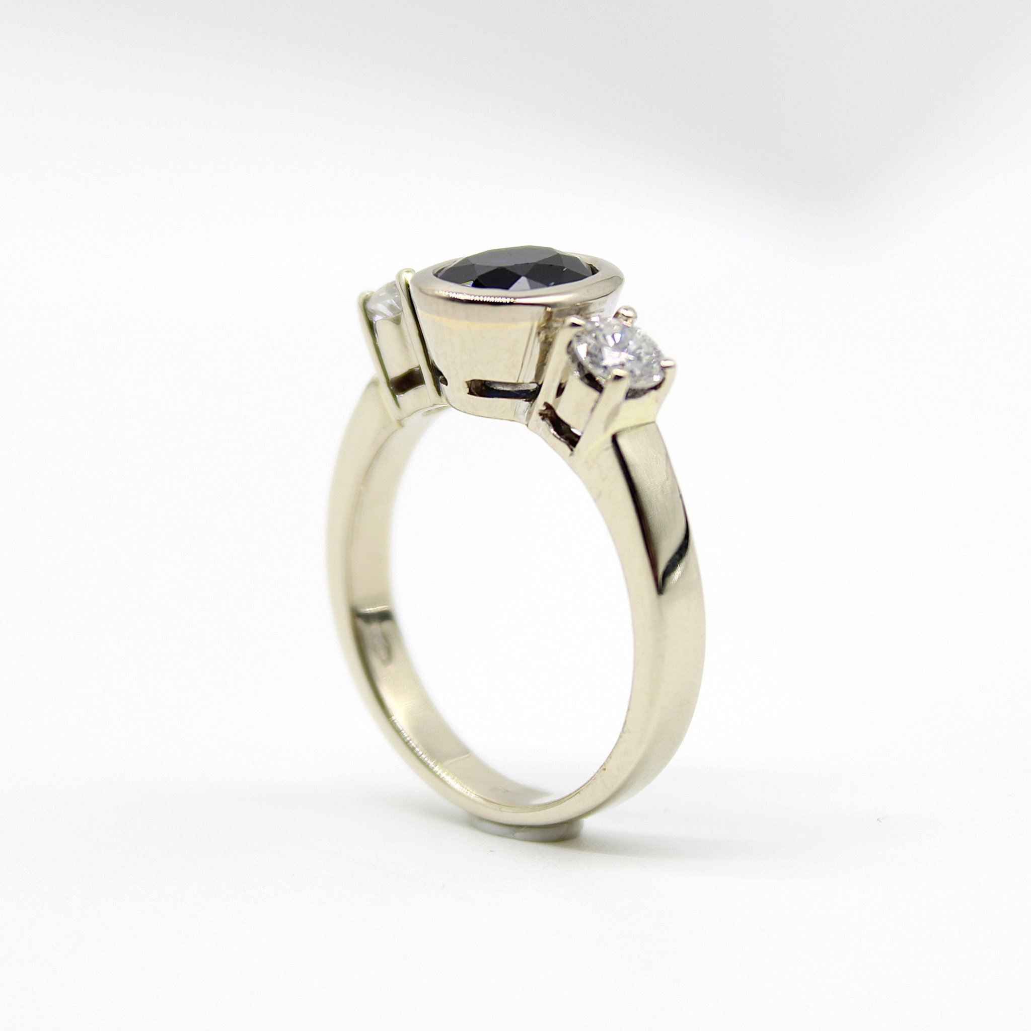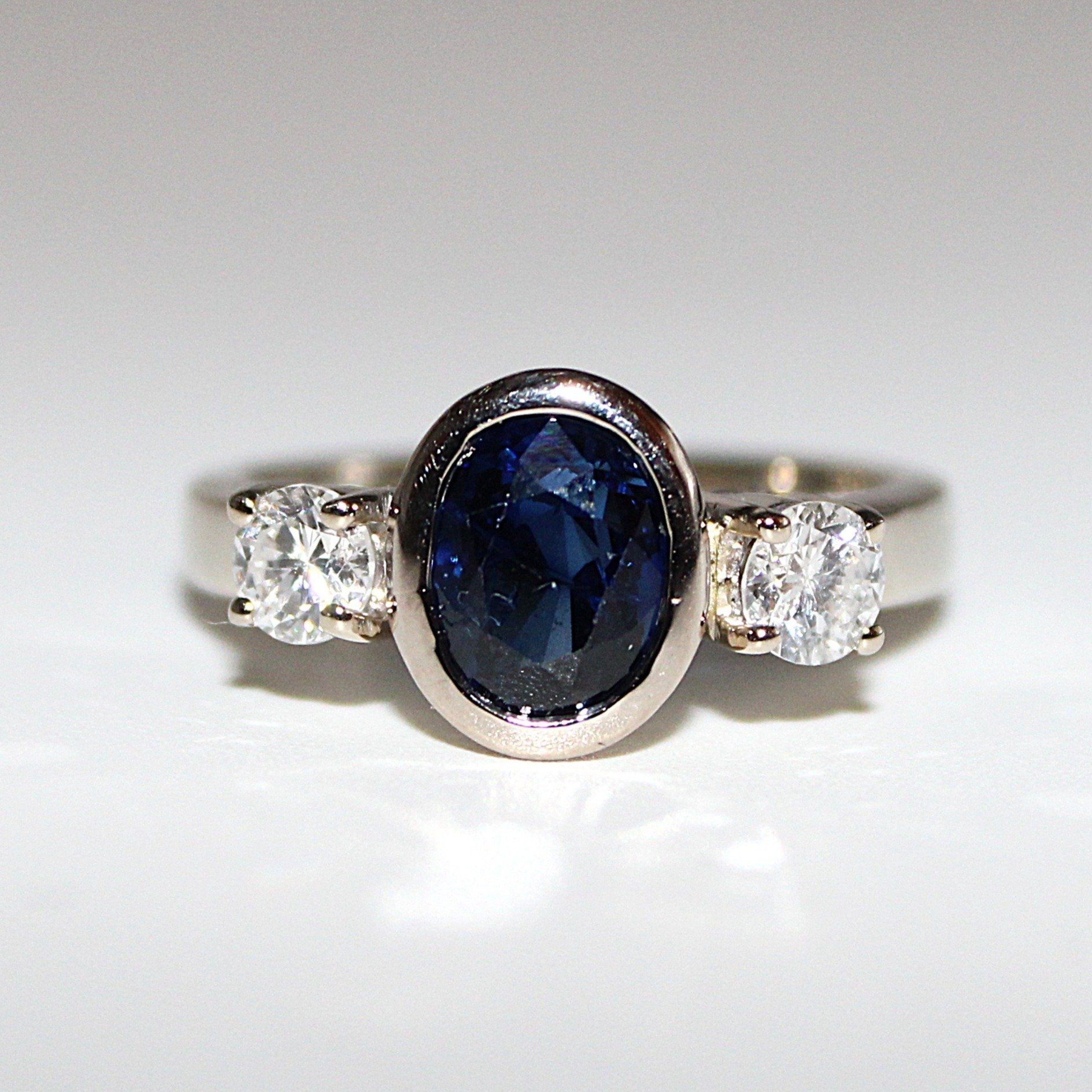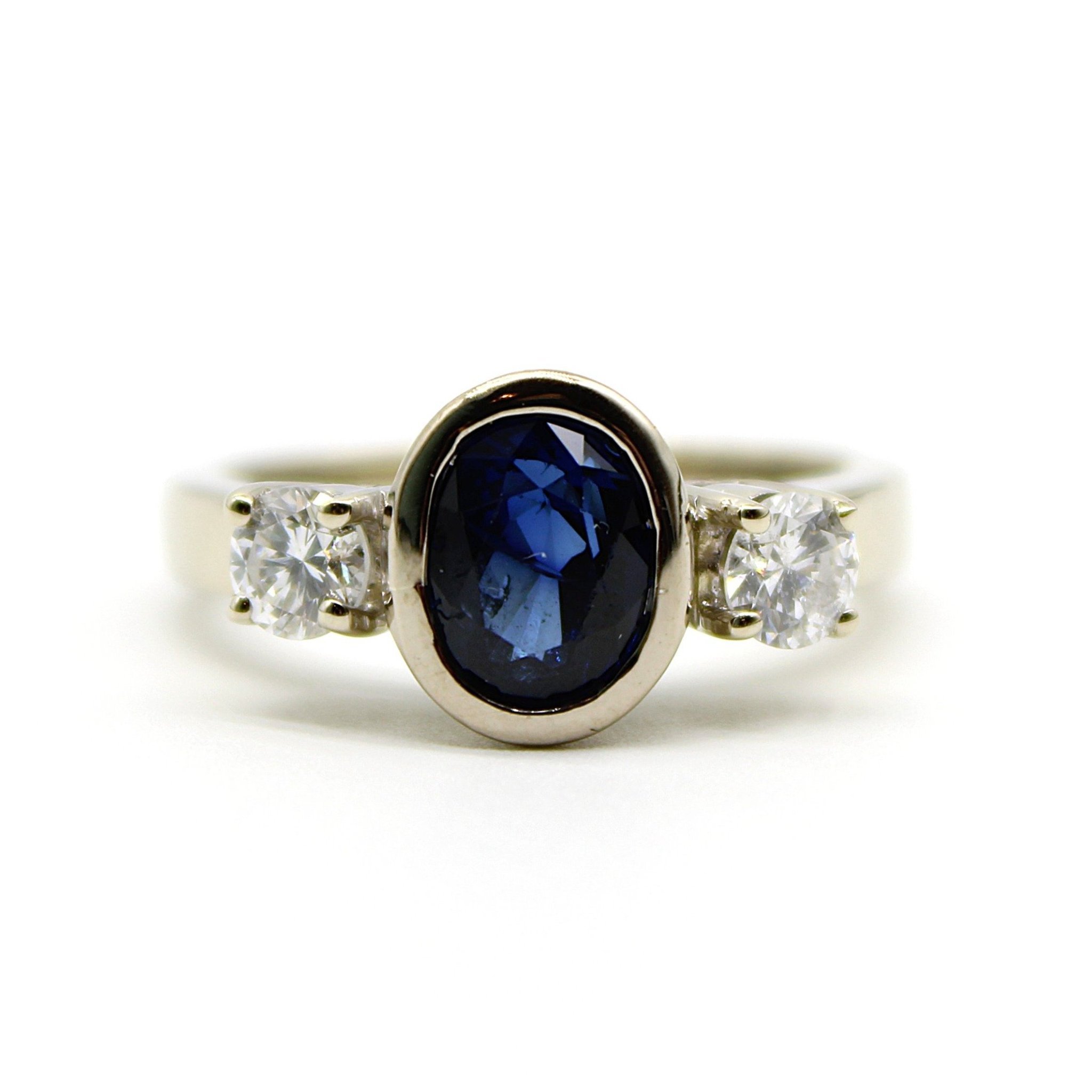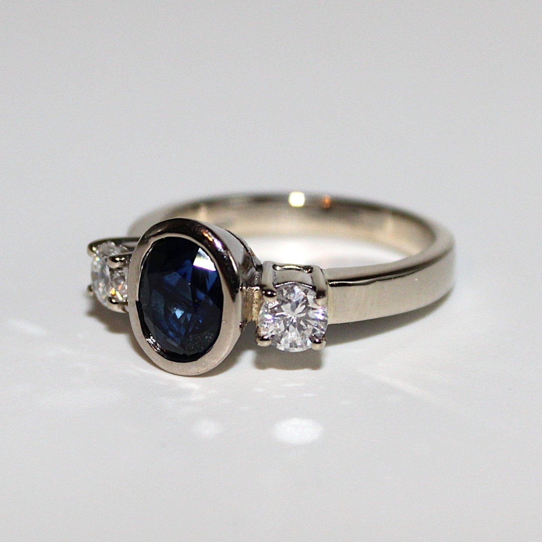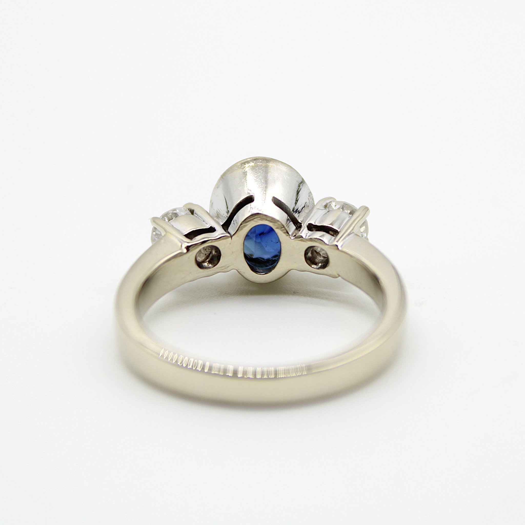 Äkta 3-stens diamant- och safirring i 18K vitguld (1,5ctv, stl 17,6mm)