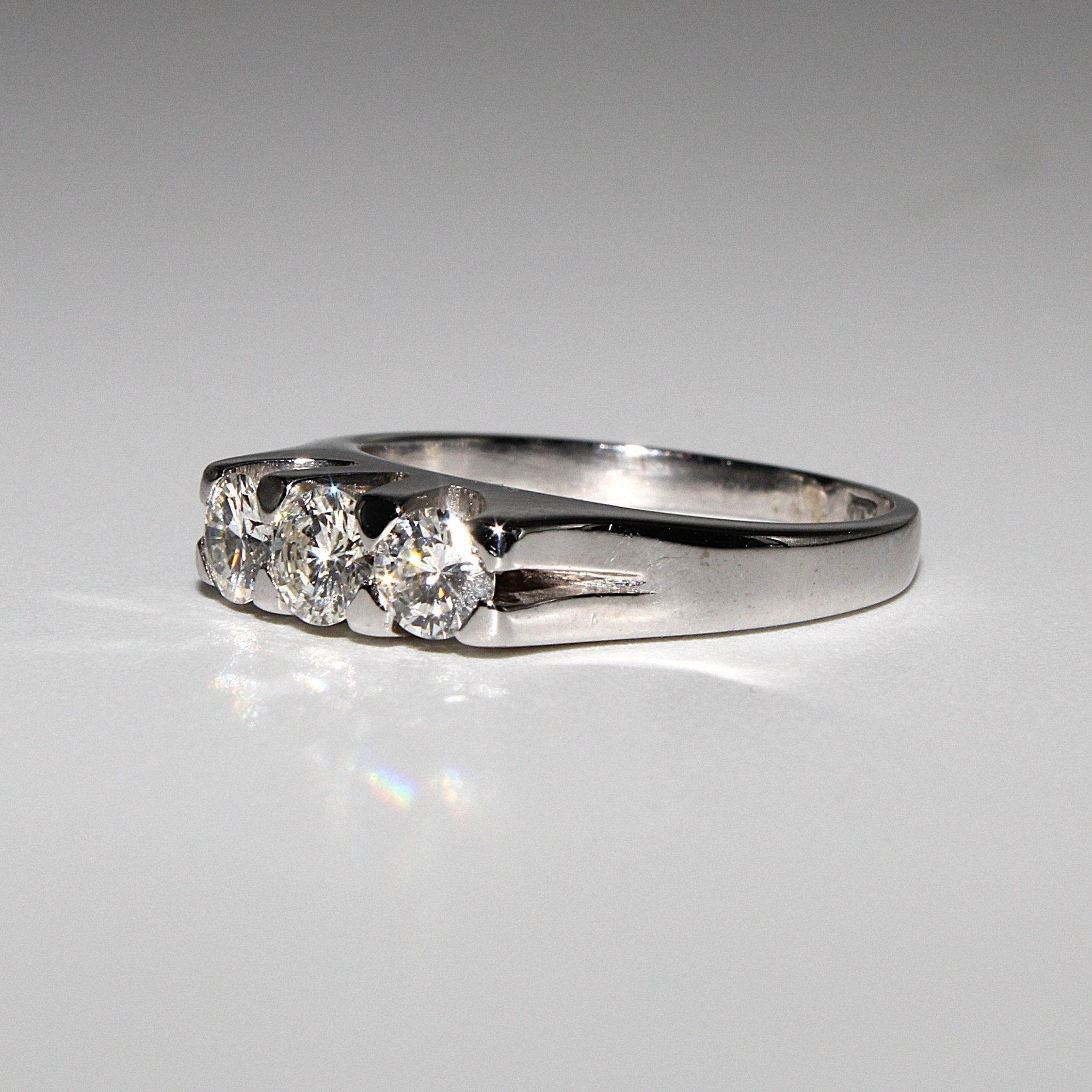 Äkta 3-stens diamantring i 18K vitguld (0,58ctv, stl 15,5mm)