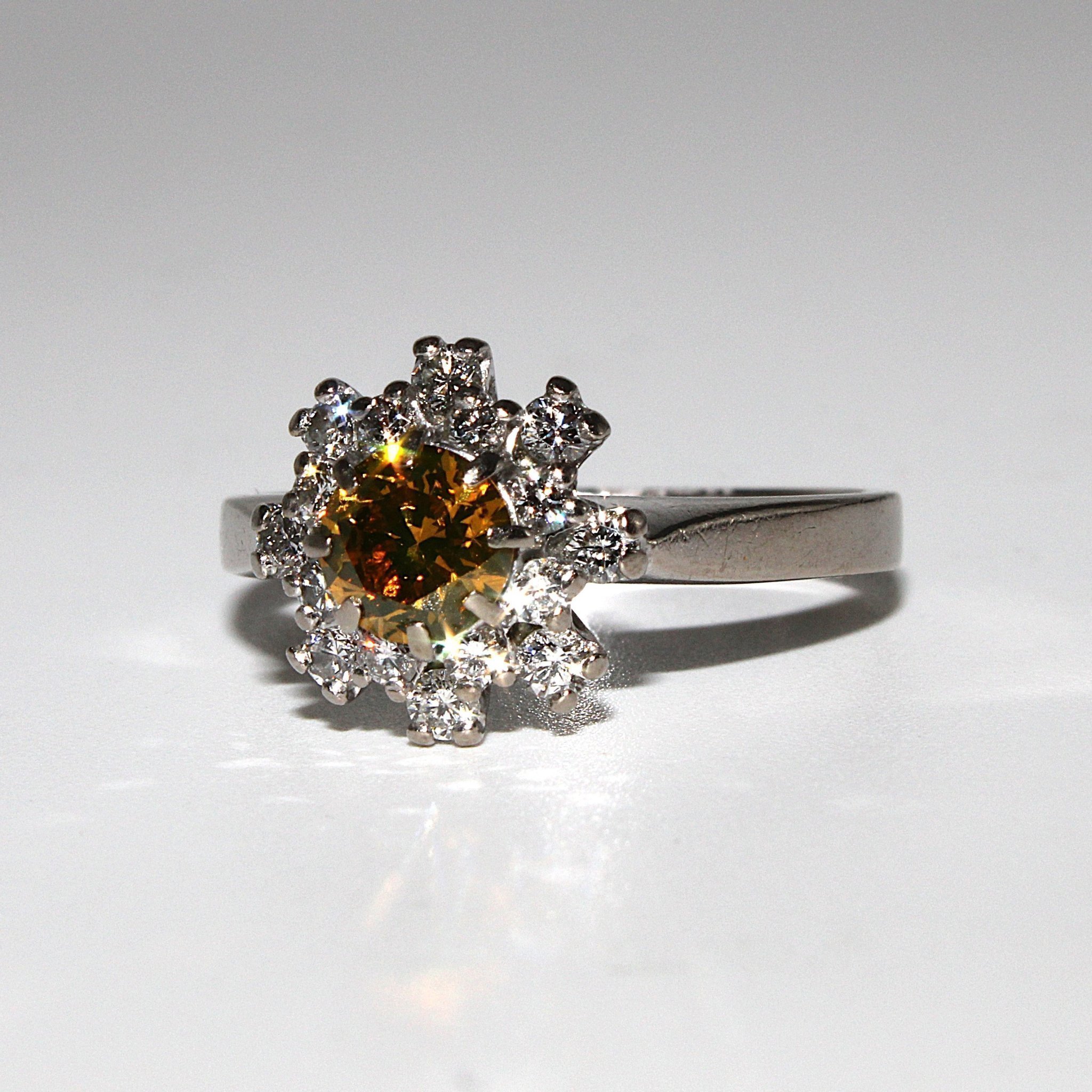 Carmoséring i 18K vitguld med vita diamanter och en fancy-brun diamant (1,02ctv)