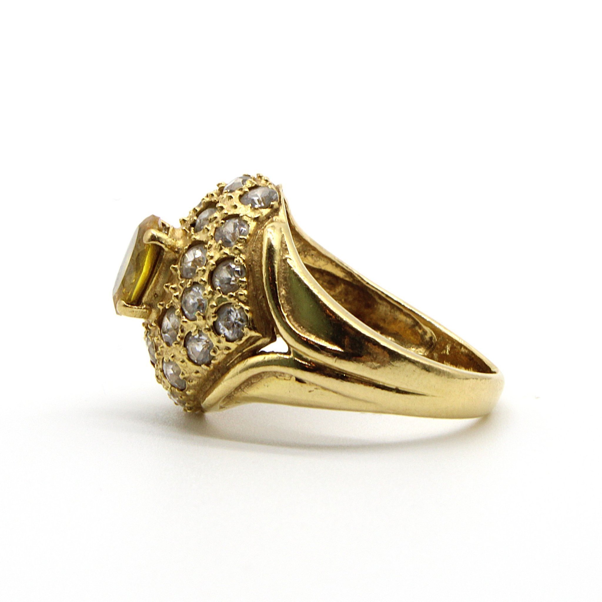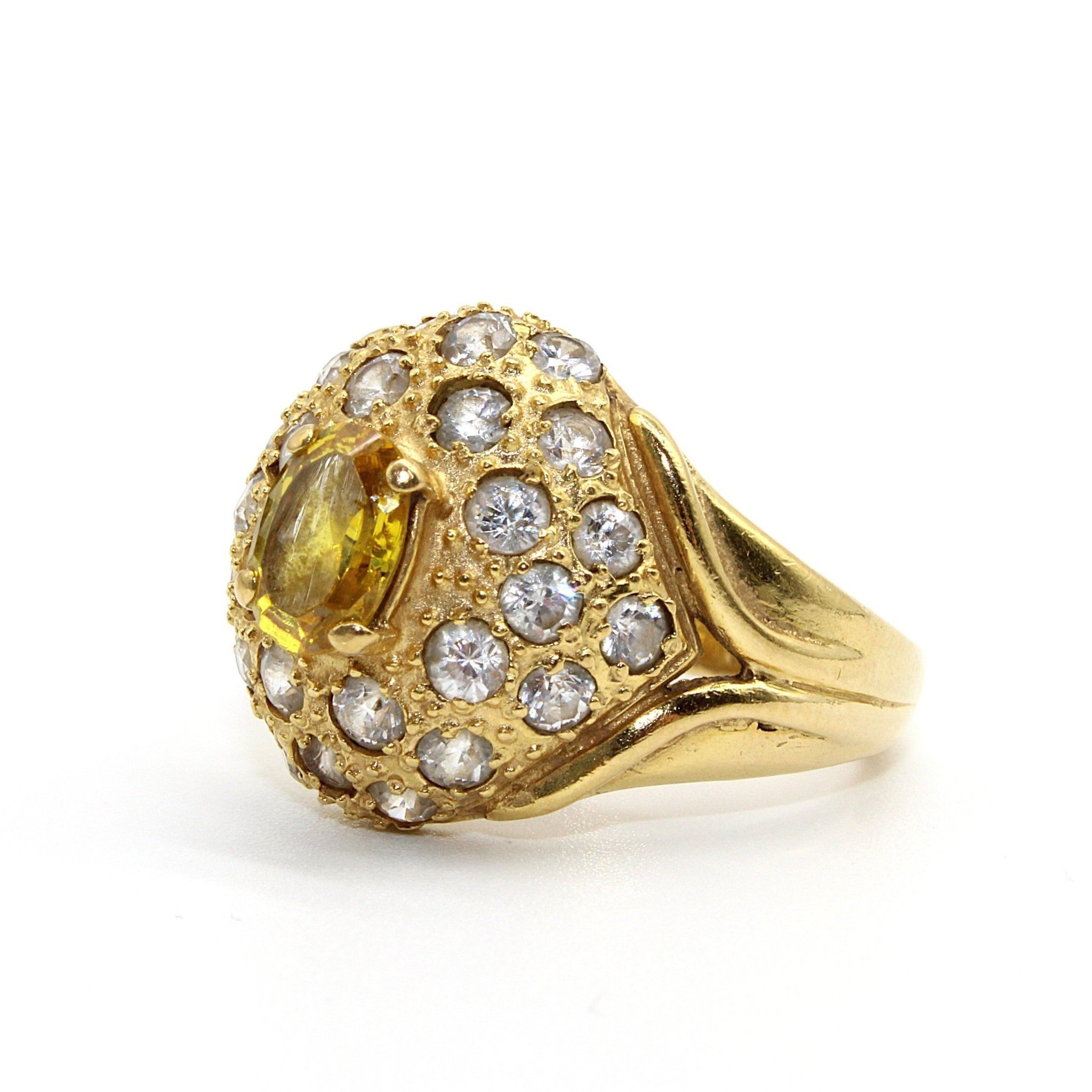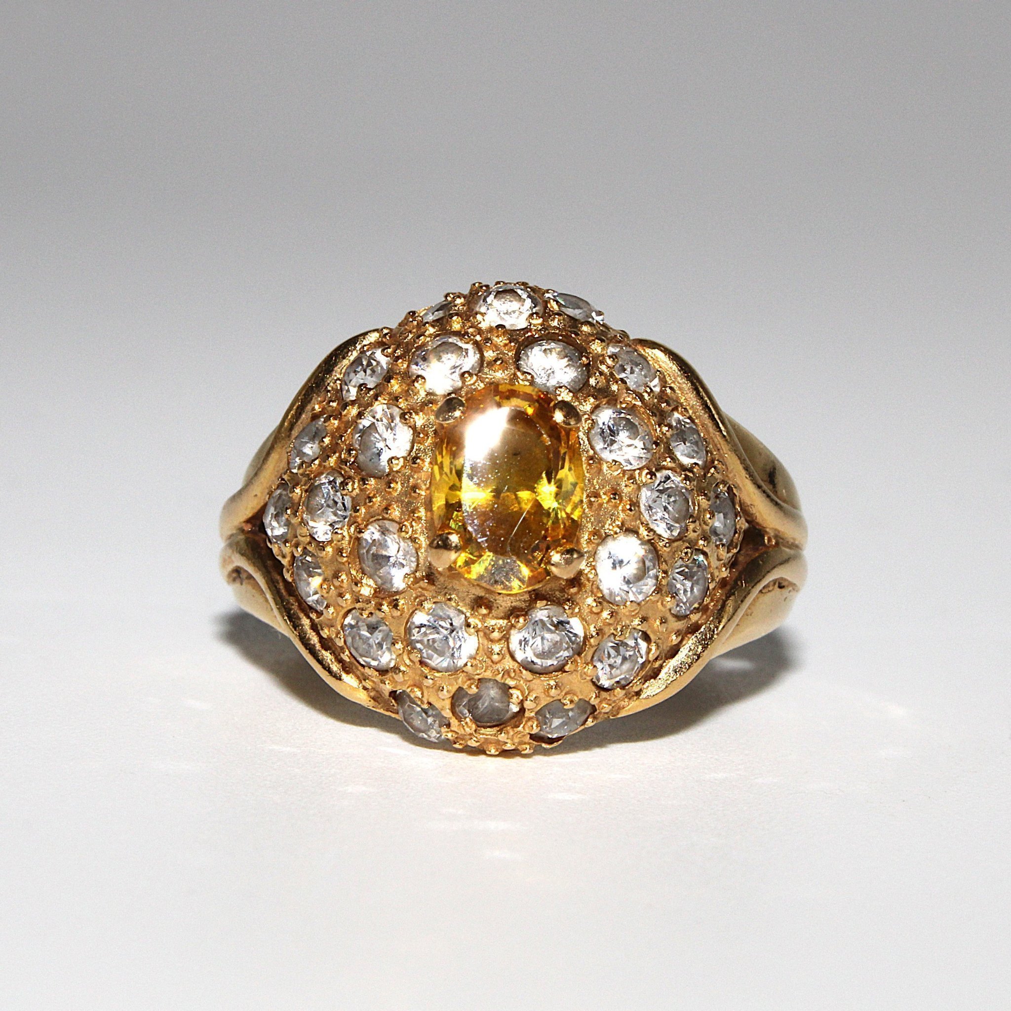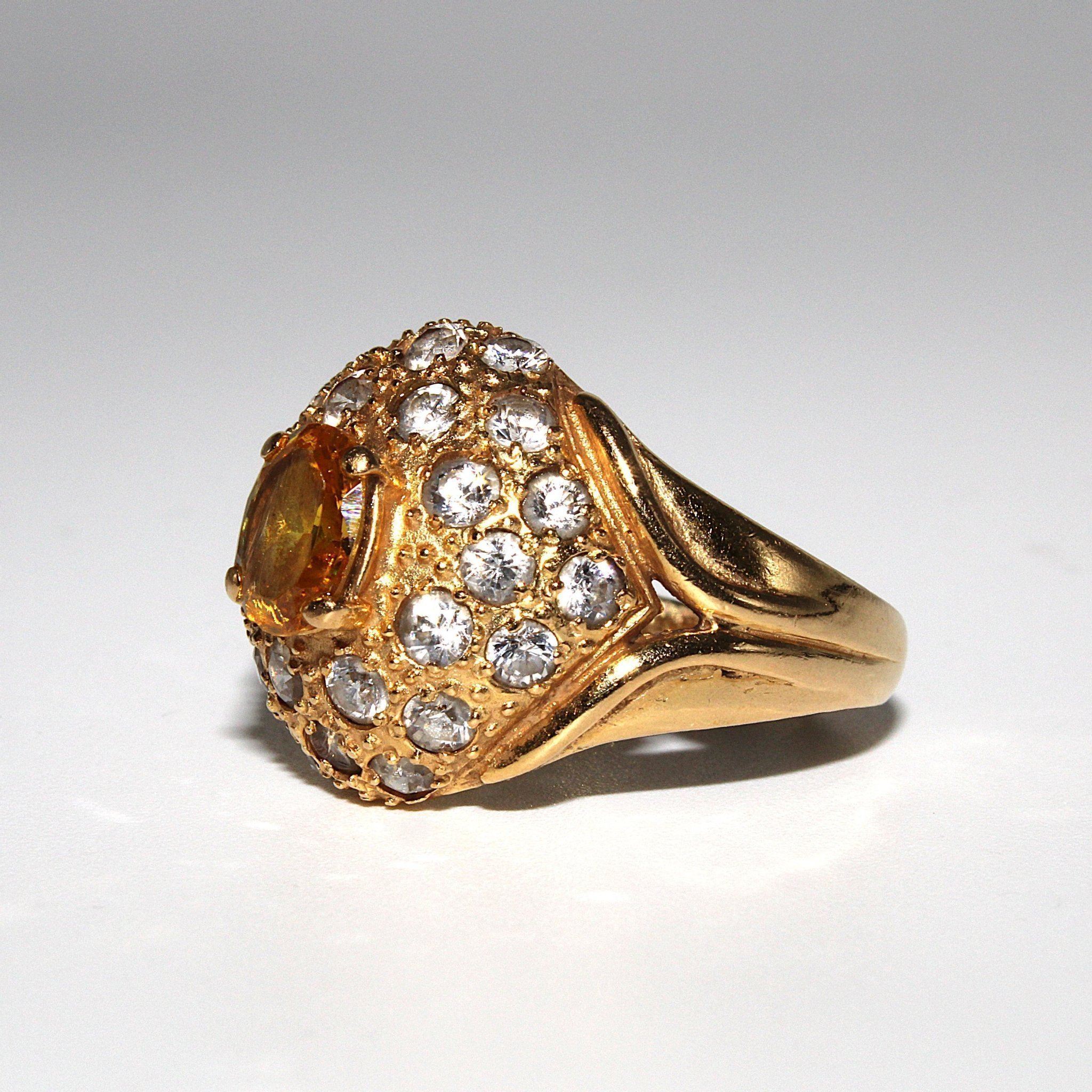 Cocktail ring i äkta 21K guld med gul sten och kubisk zirkonia (stl 17,4mm) Till auktionen på Tradera →