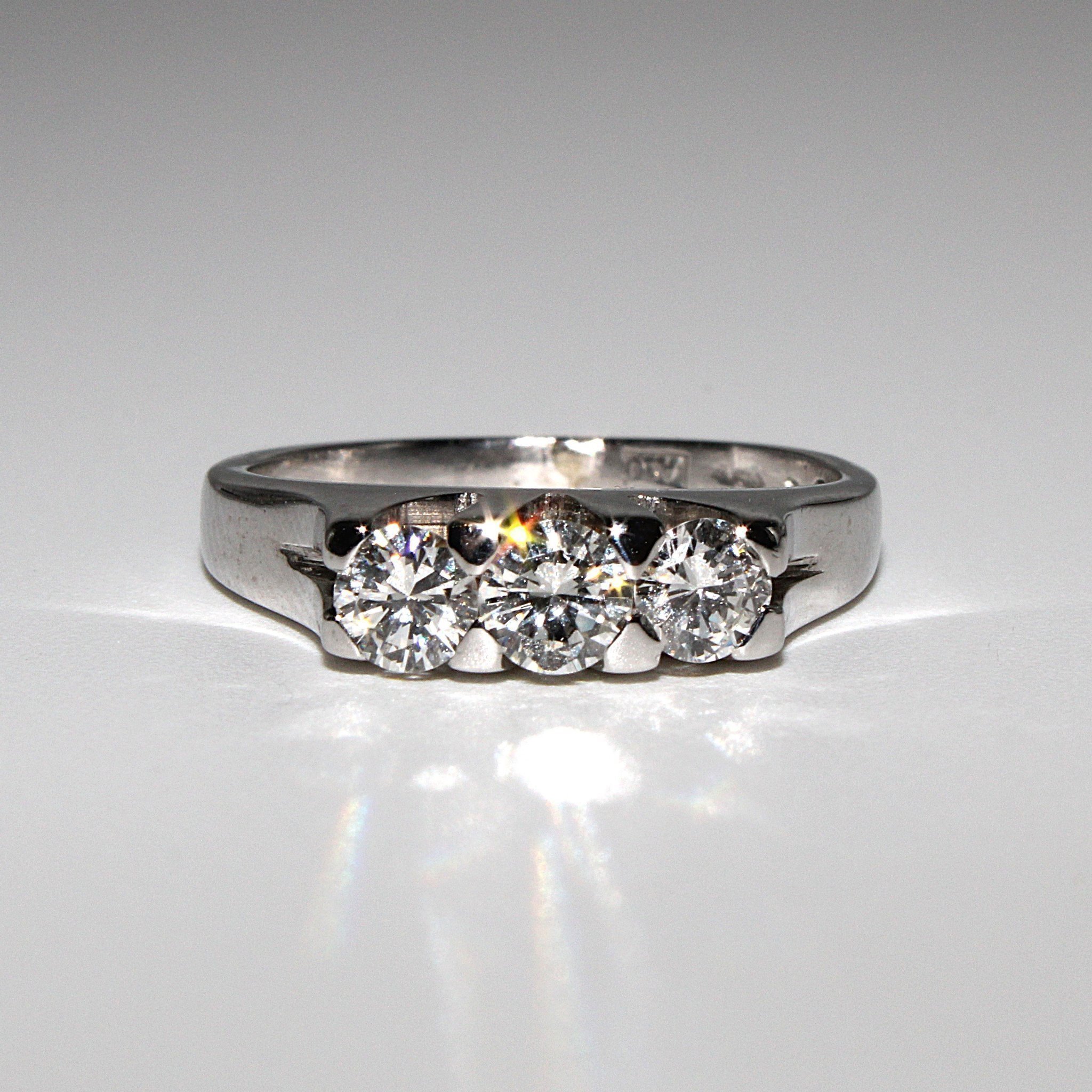 Fin 3-stens diamantring i äkta 18K vitguld (0,58ctv, stl 15,5mm)
