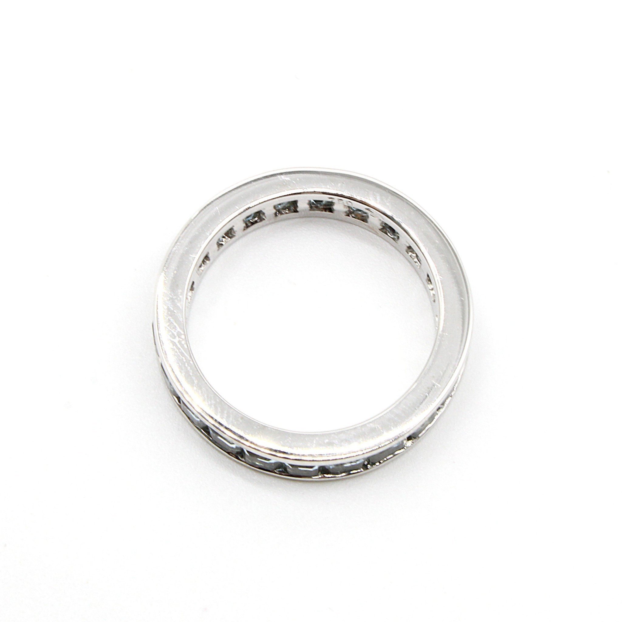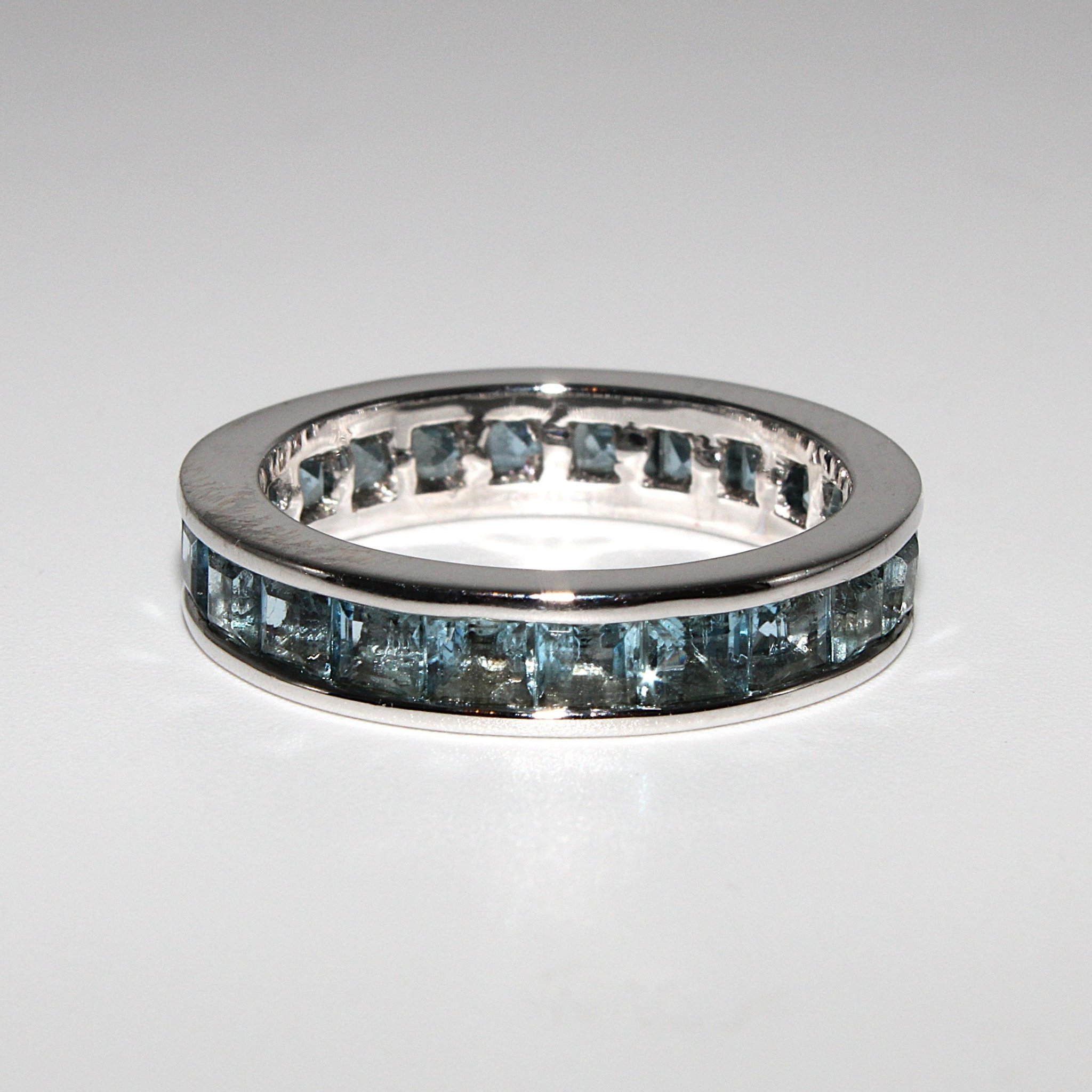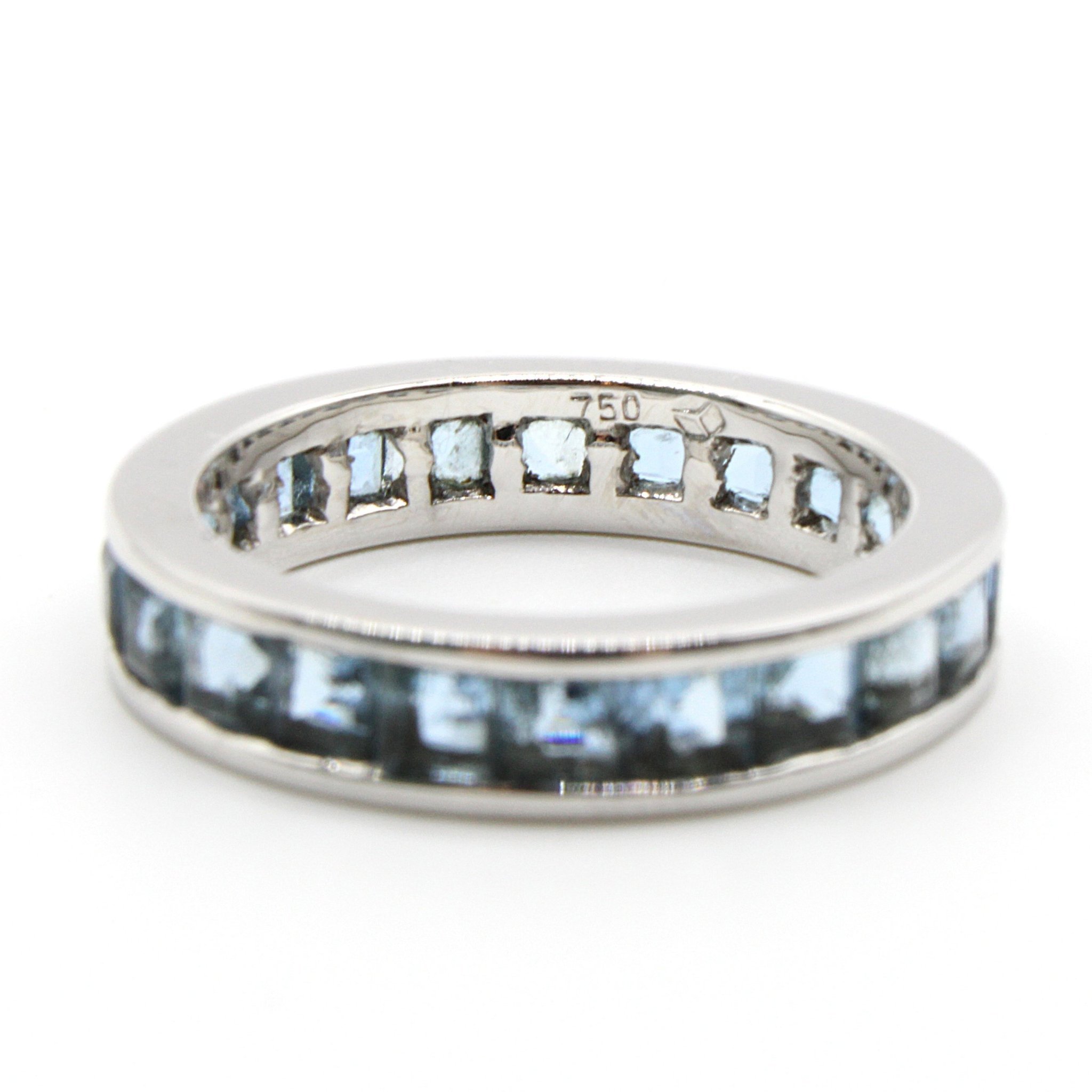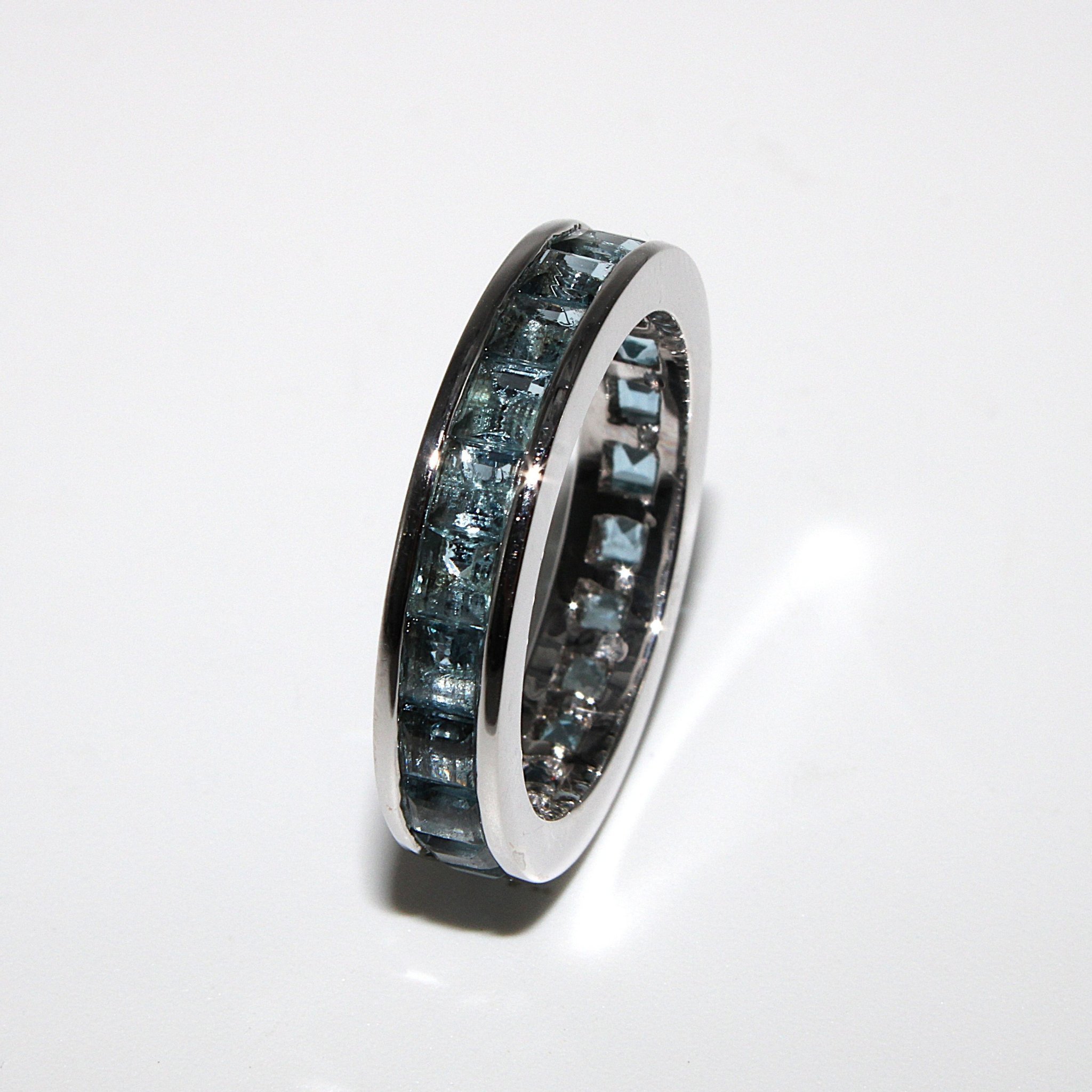 Fin alliansring i 18K vitguld med blå stenar (3,96ctv, stl 17,15mm)