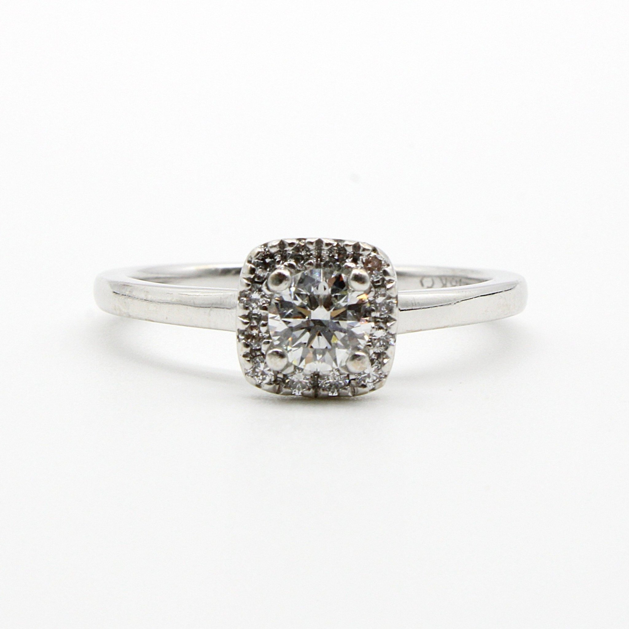 Halo äkta diamantring i 18K vitguld (0,34ctv, stl 16,65mm)
