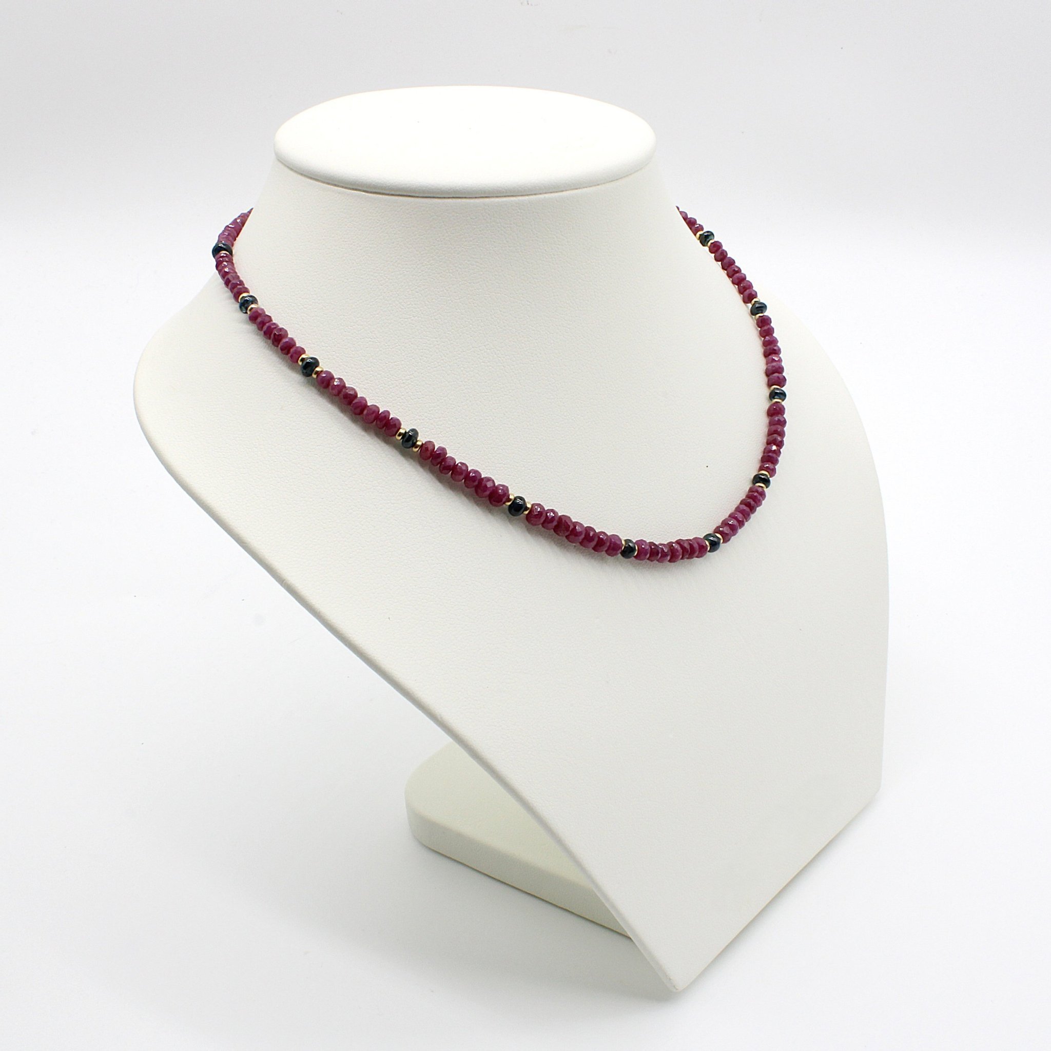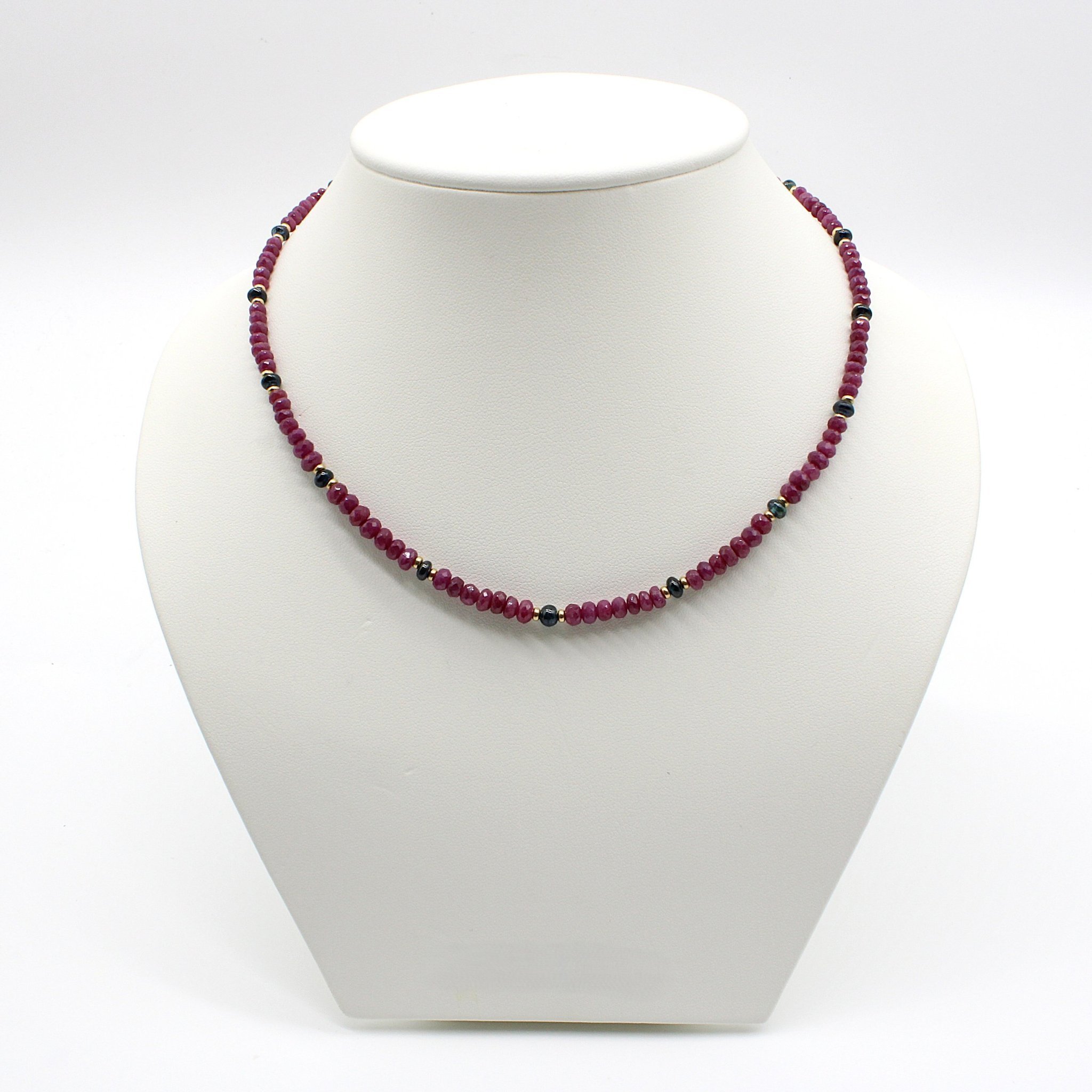 Halsband med rubiner och safirer, samt detaljer i 18K guld