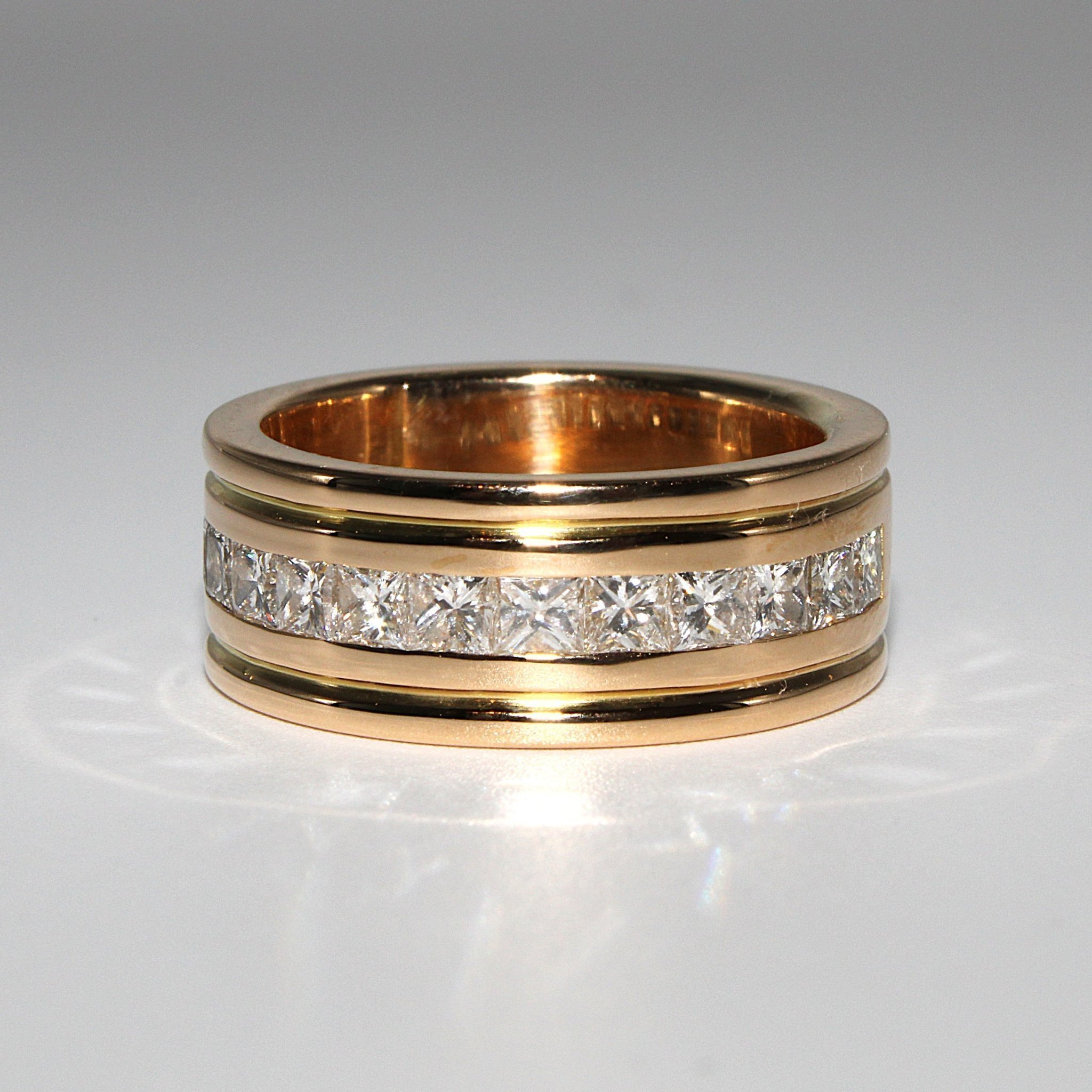 Halvalliansring i 18K guld med äkta diamanter (1,6ctv, stl 17,6mm)
