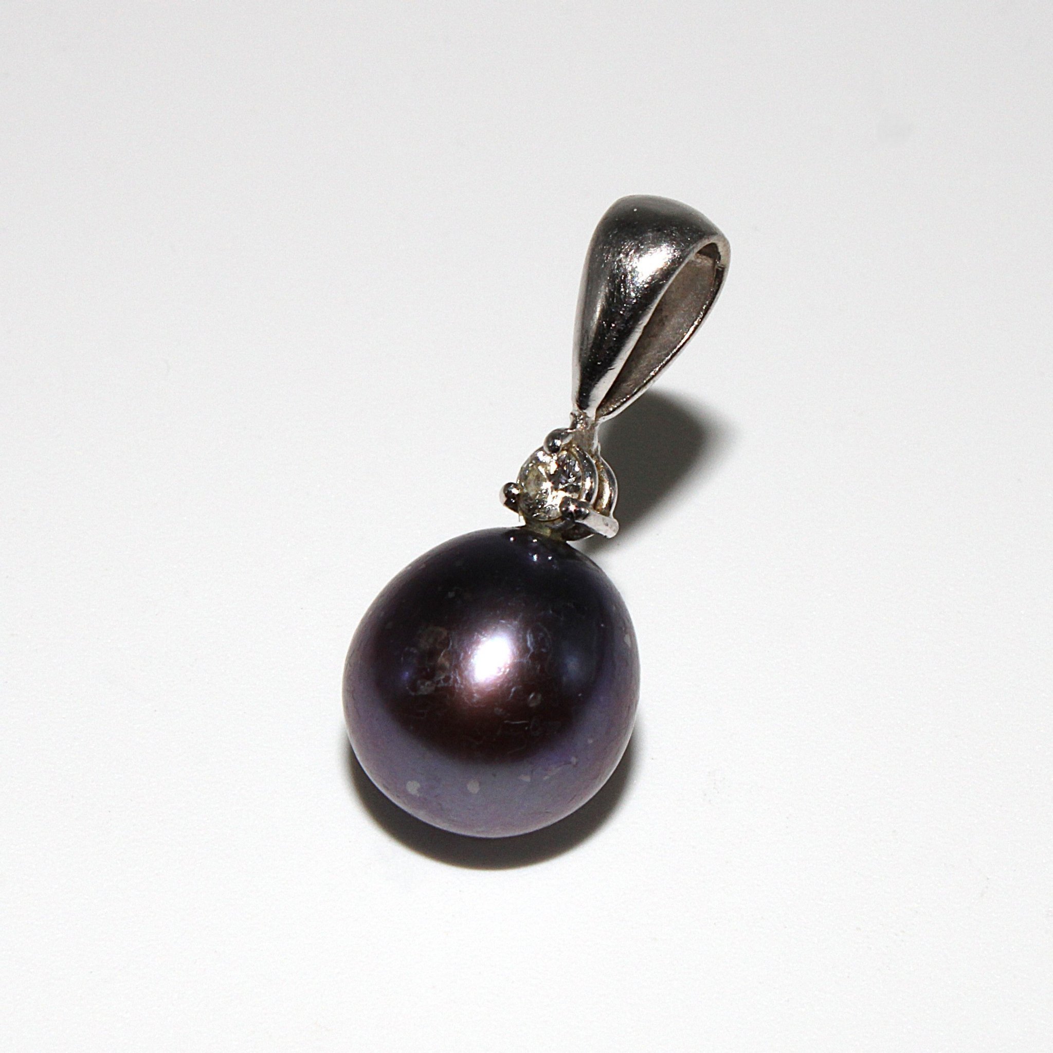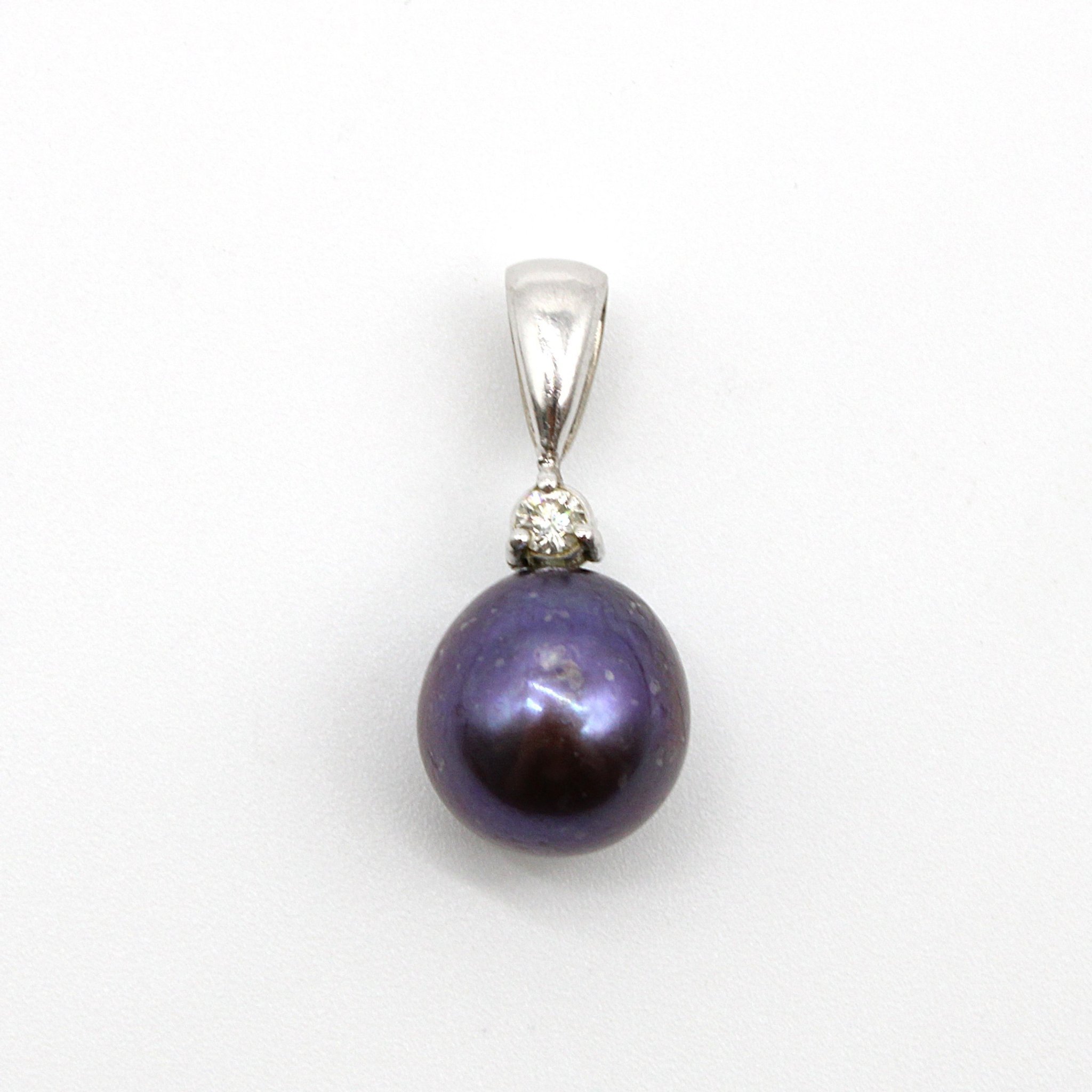 Hänge i 18K vitguld med äkta lila pärla och naturlig diamant (0,06ctv)