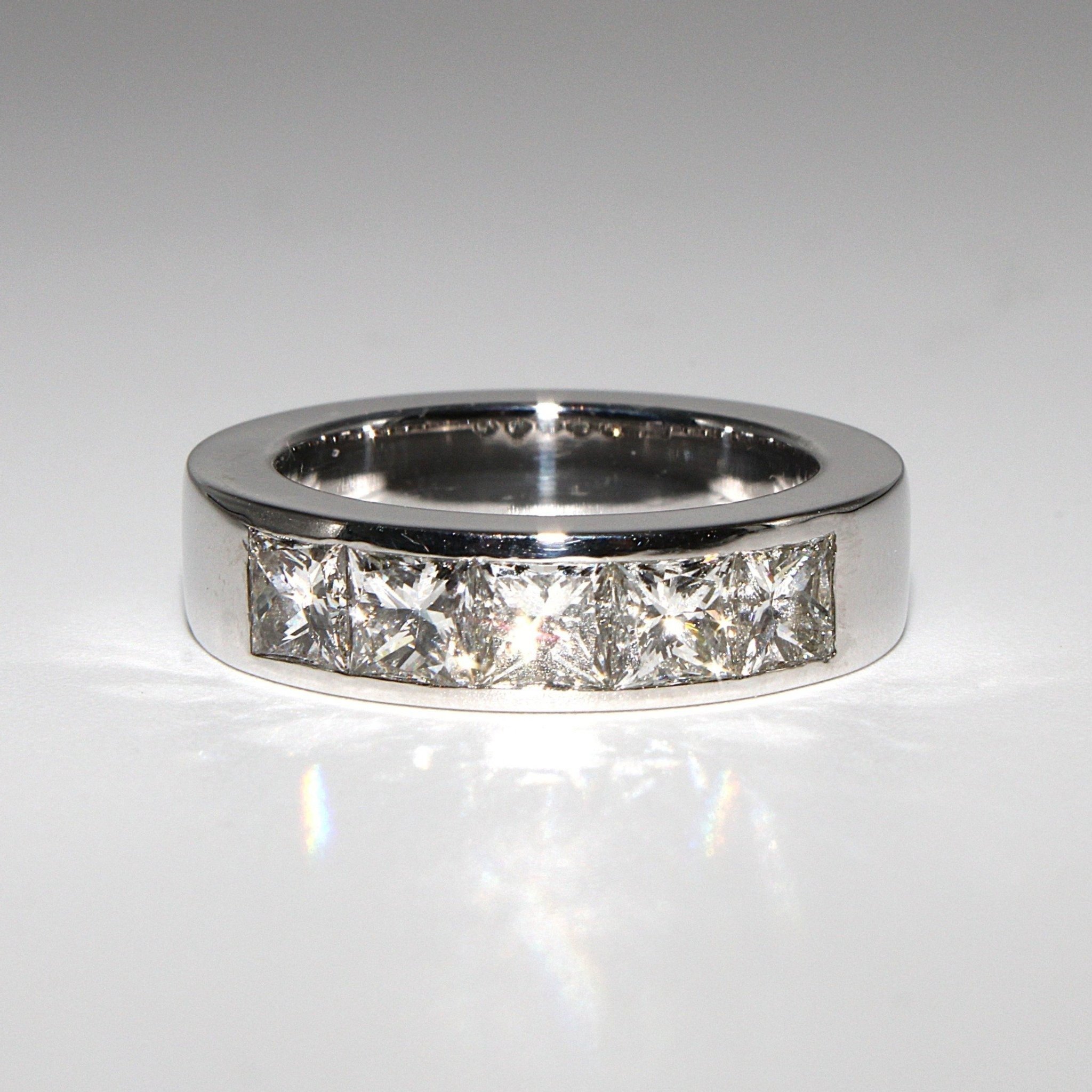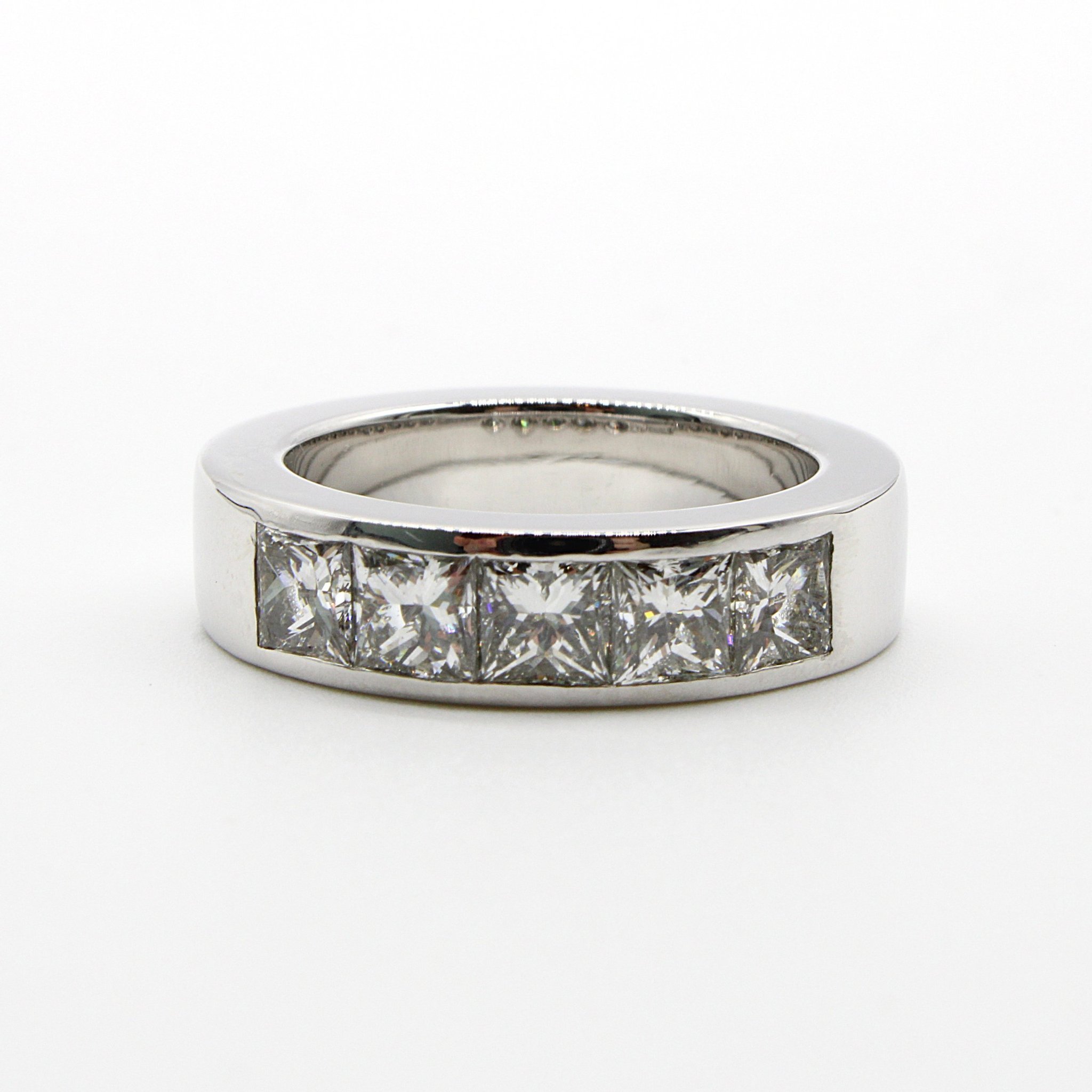 Lyxig 5-stens äkta diamantring i 18K vitguld (2ctv, stl 16,25mm)