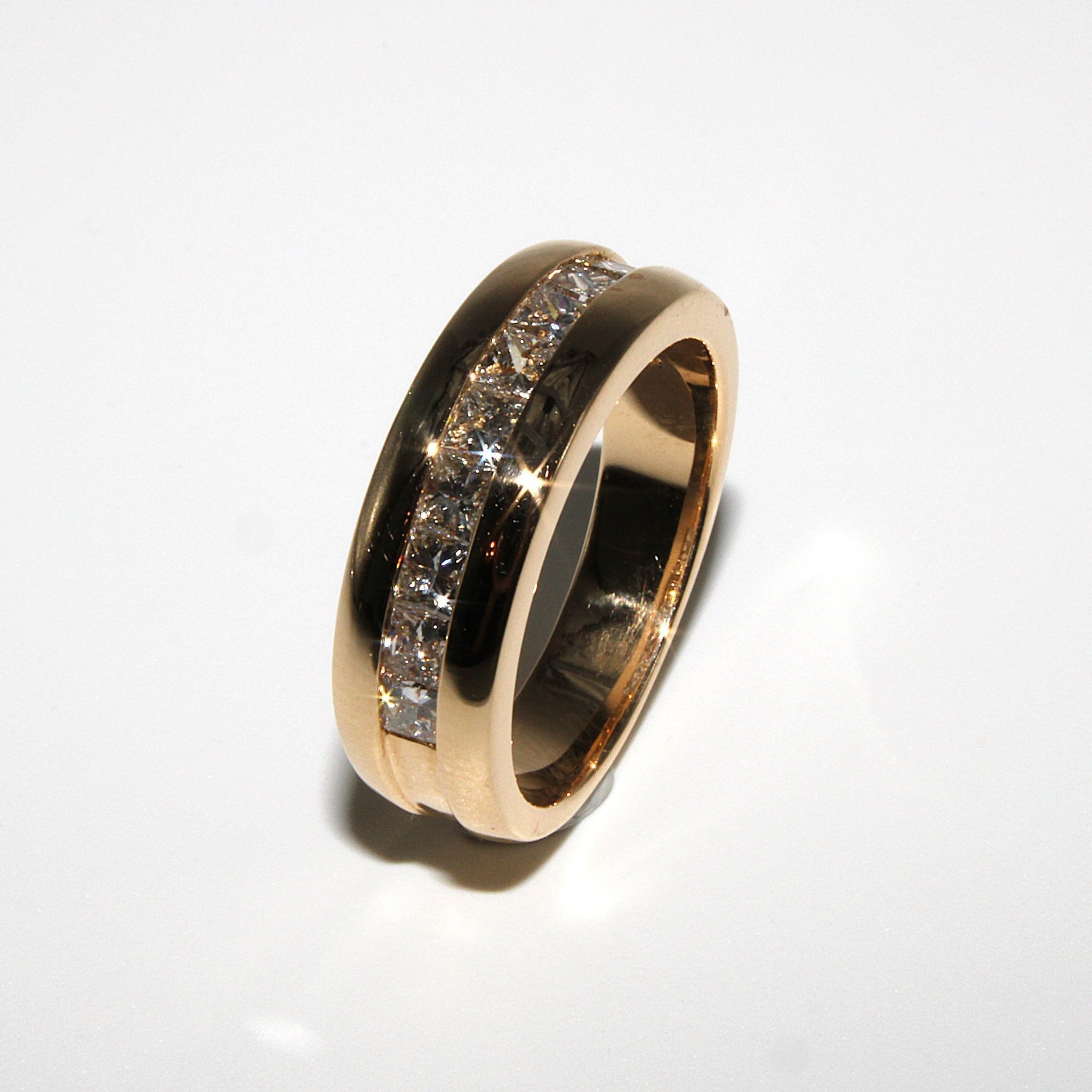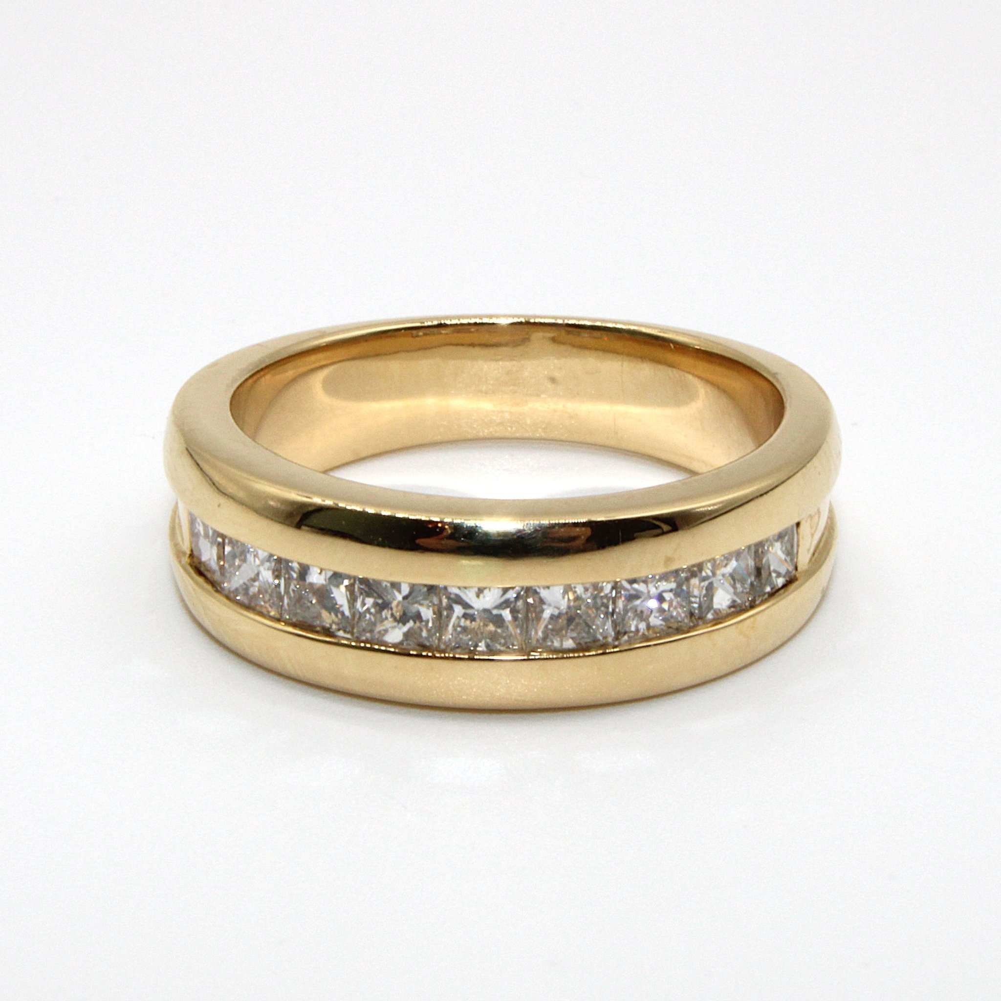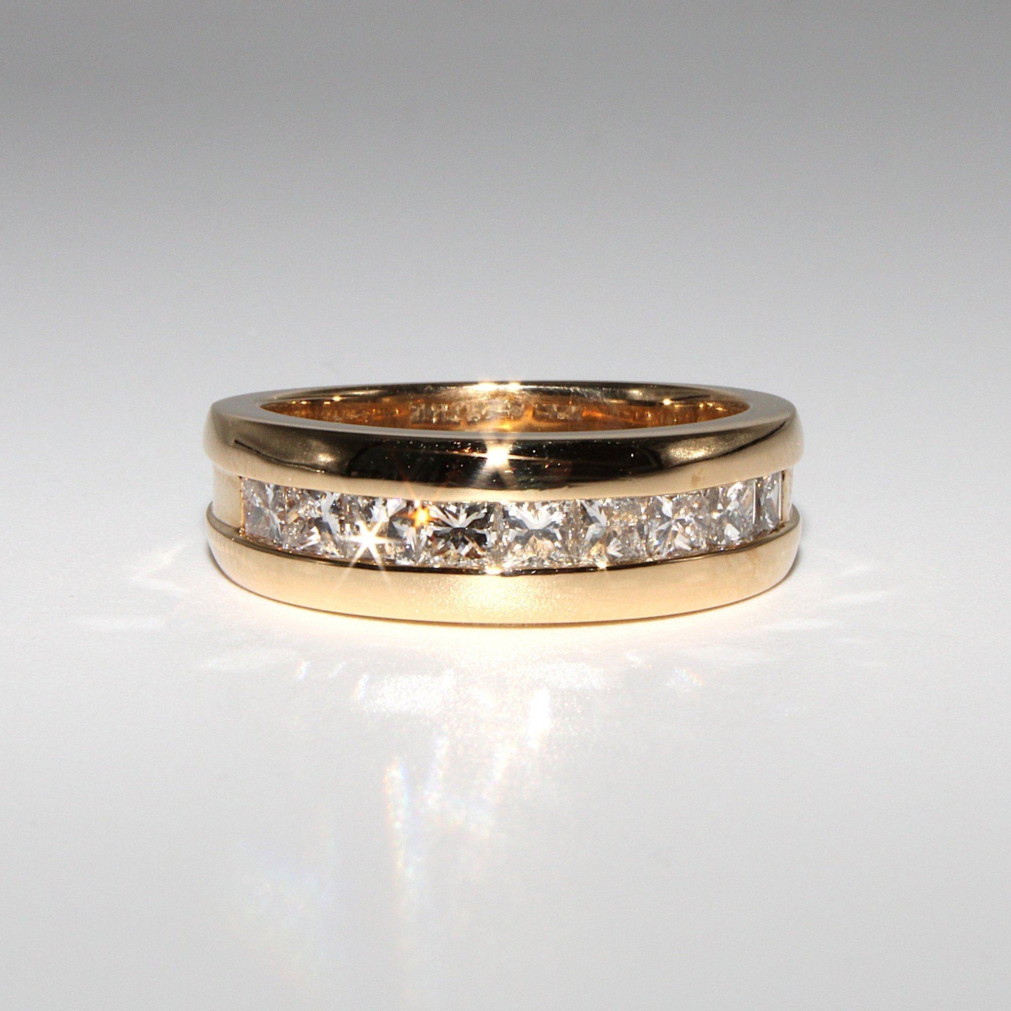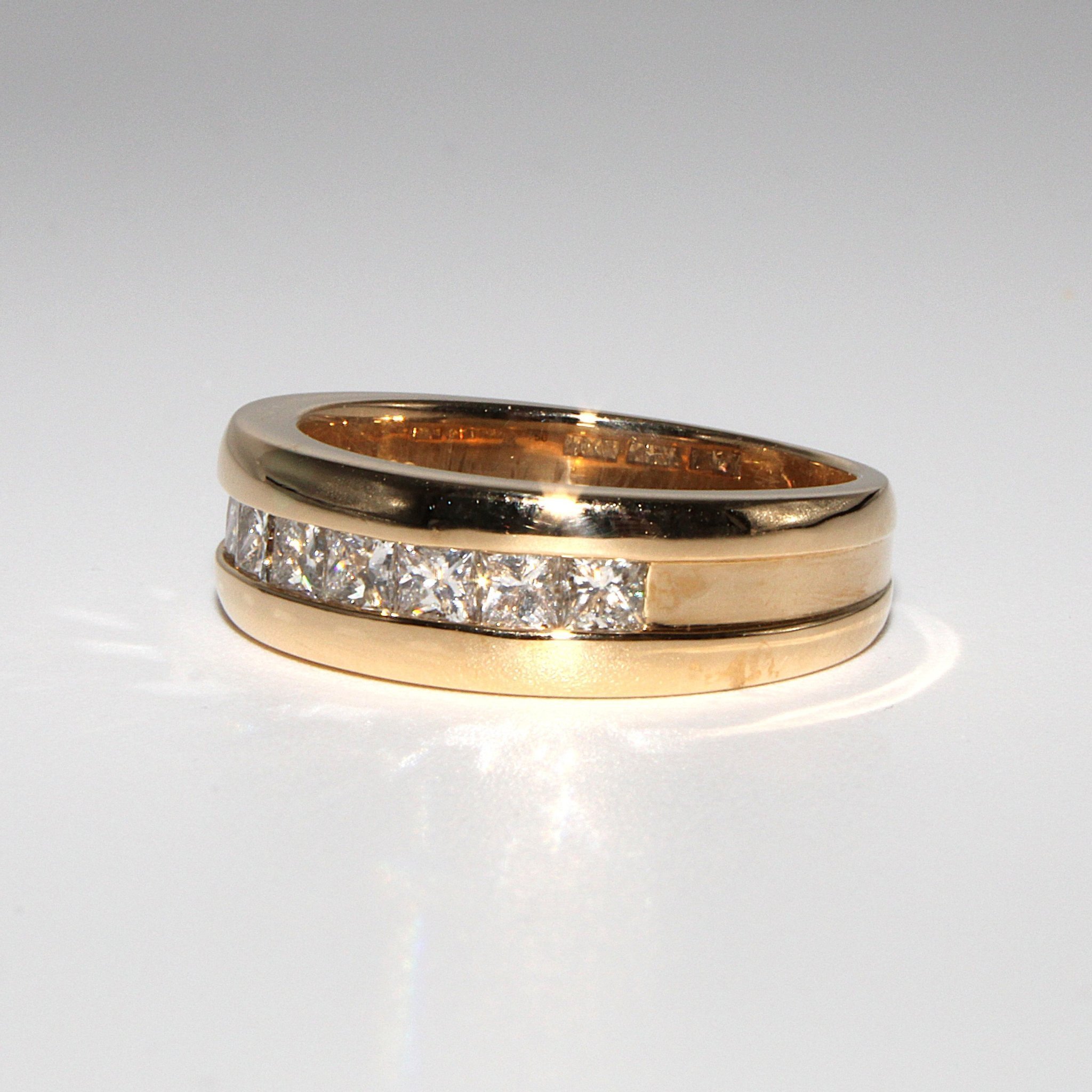 Lyxig halvalliansring i 18K guld med äkta diamanter (0,9ctv, stl 16,9mm)