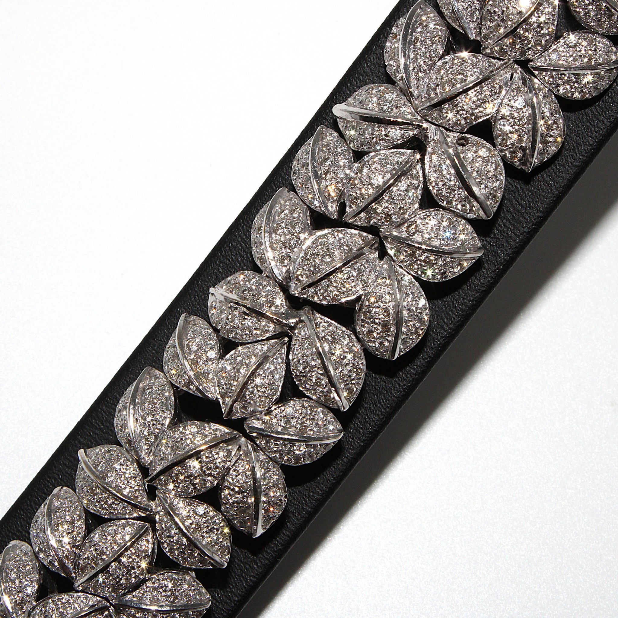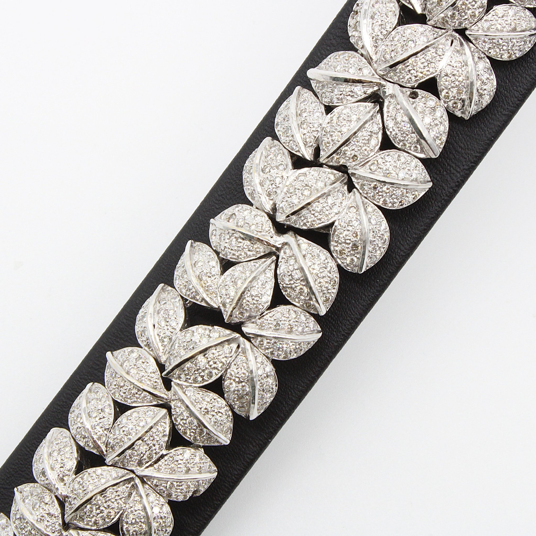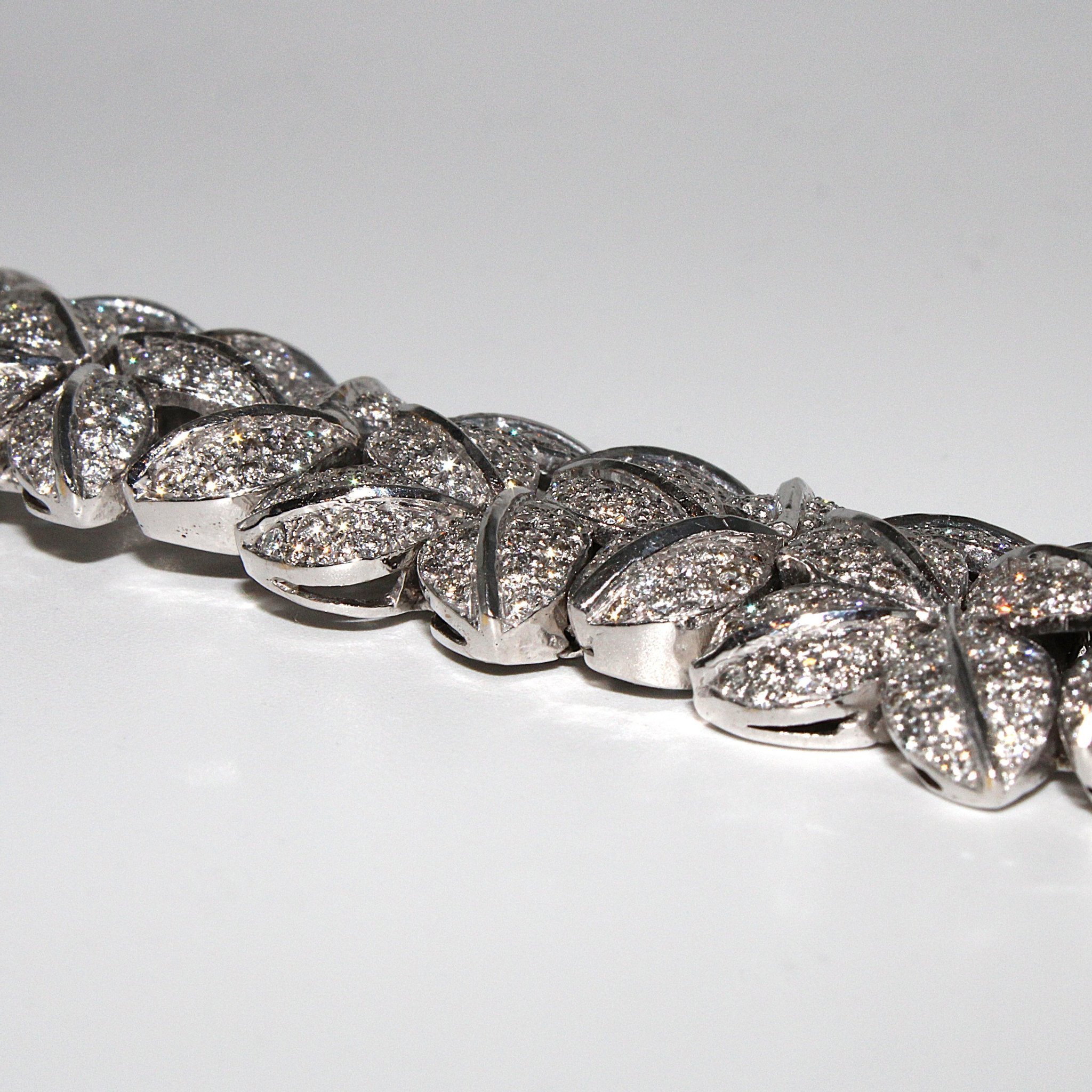 Lyxigt armband i 18K vitguld med äkta diamanter (10ctv), lövmönster