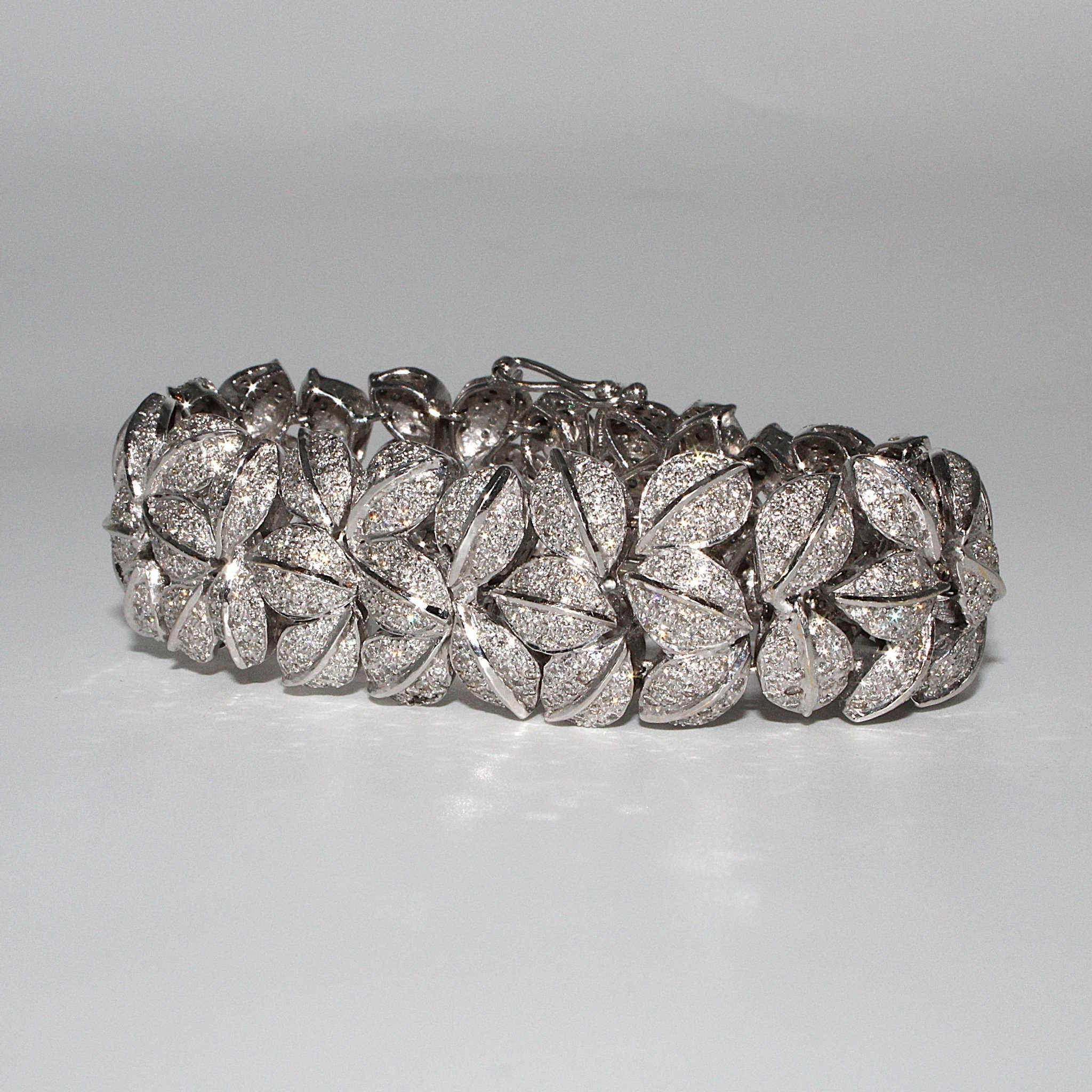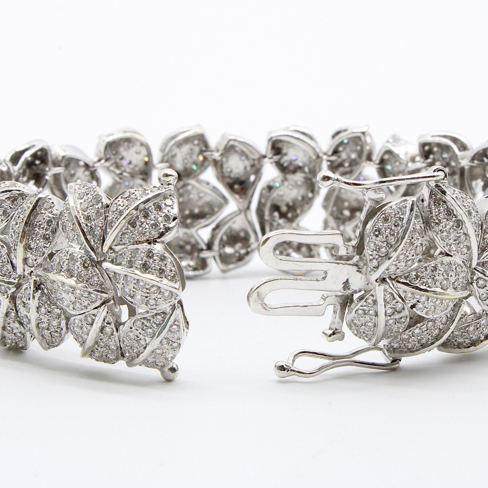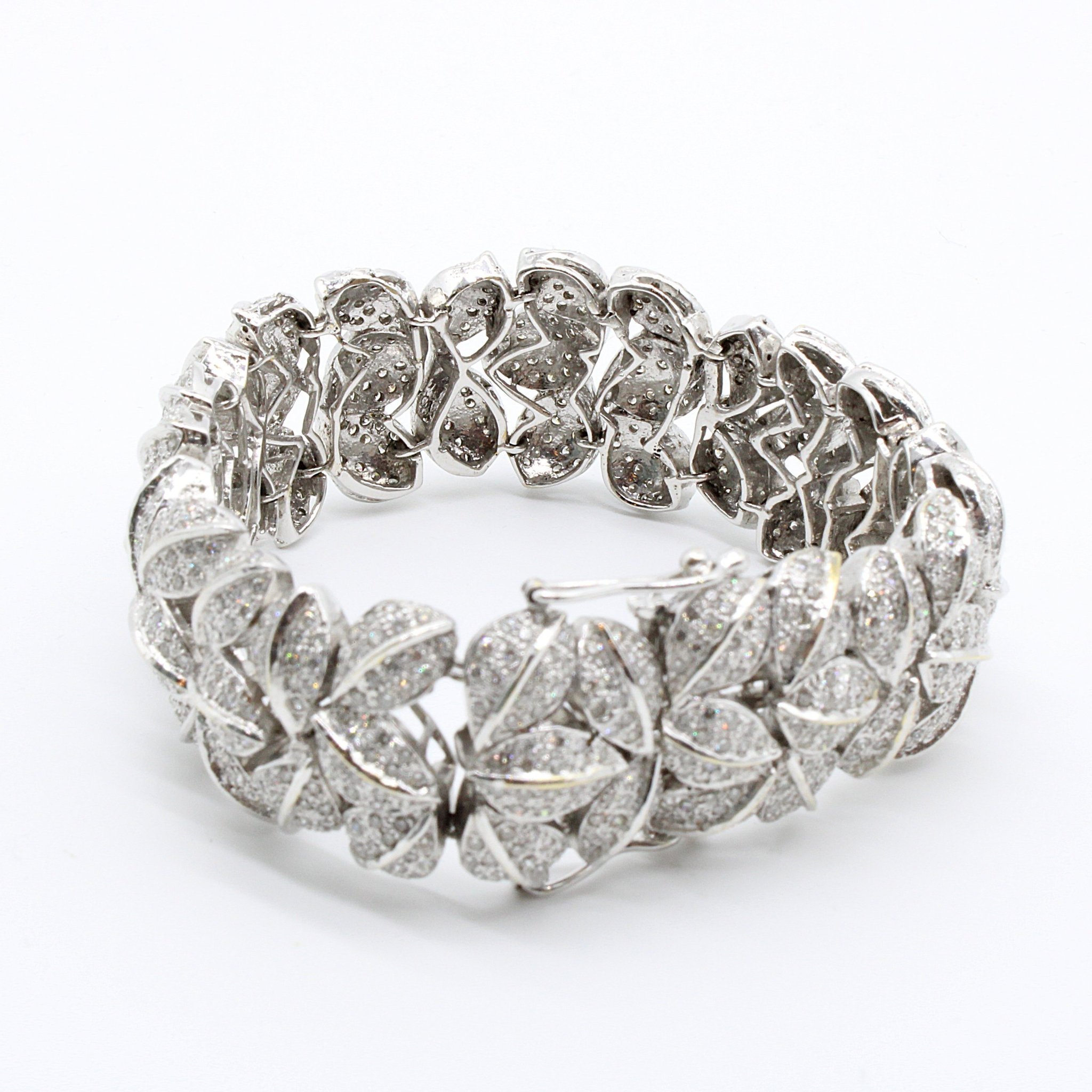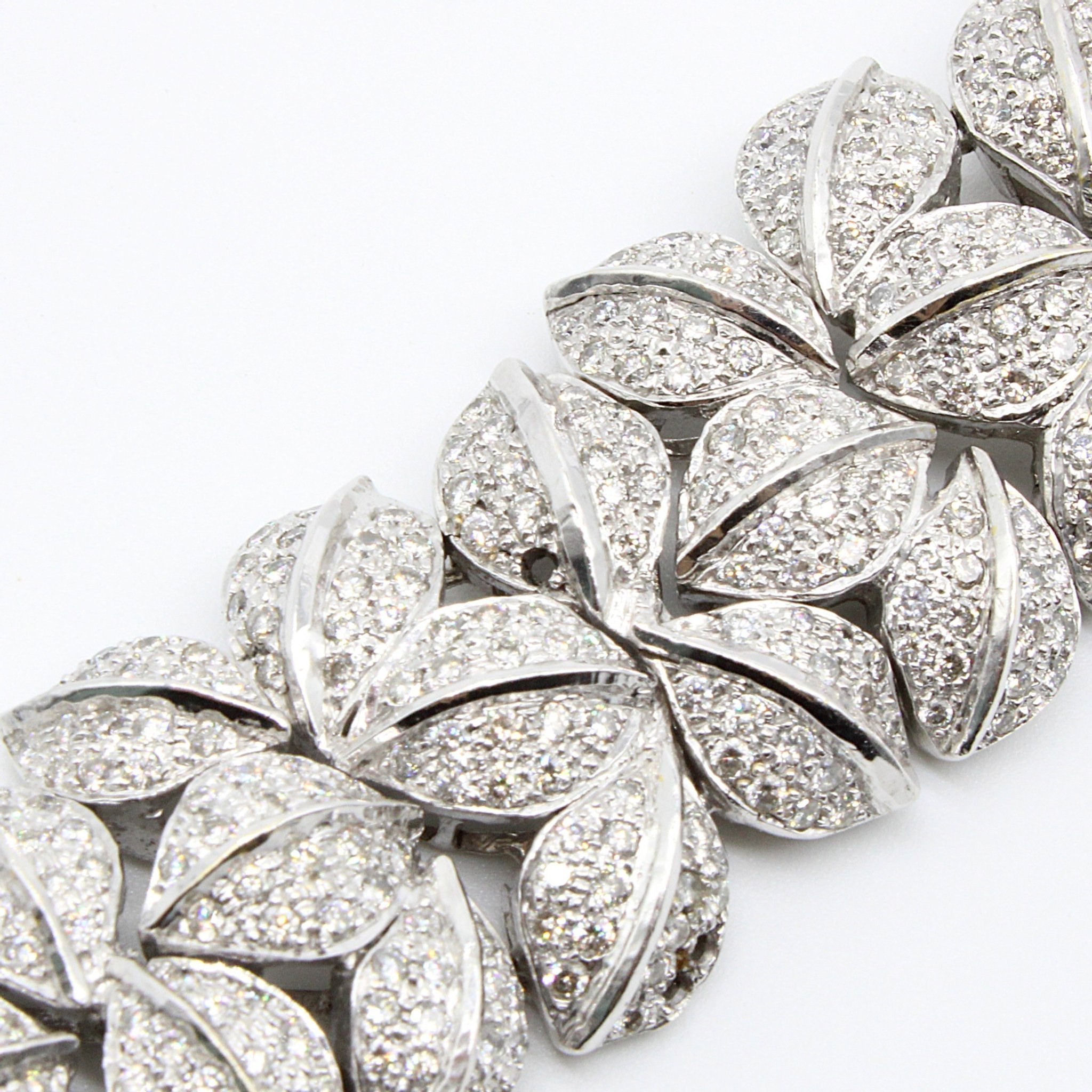 Lyxigt armband i 18K vitguld med äkta diamanter (10ctv), lövmönster