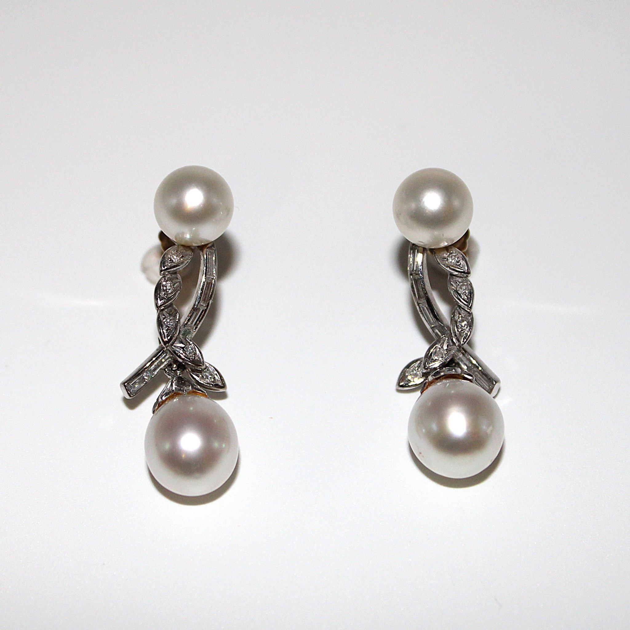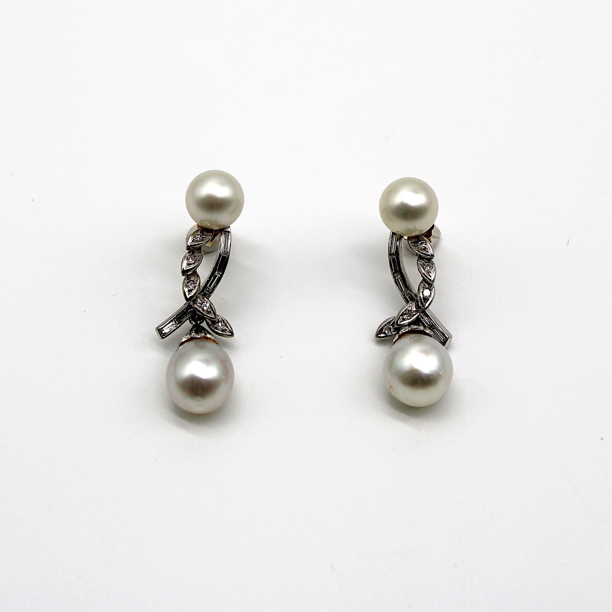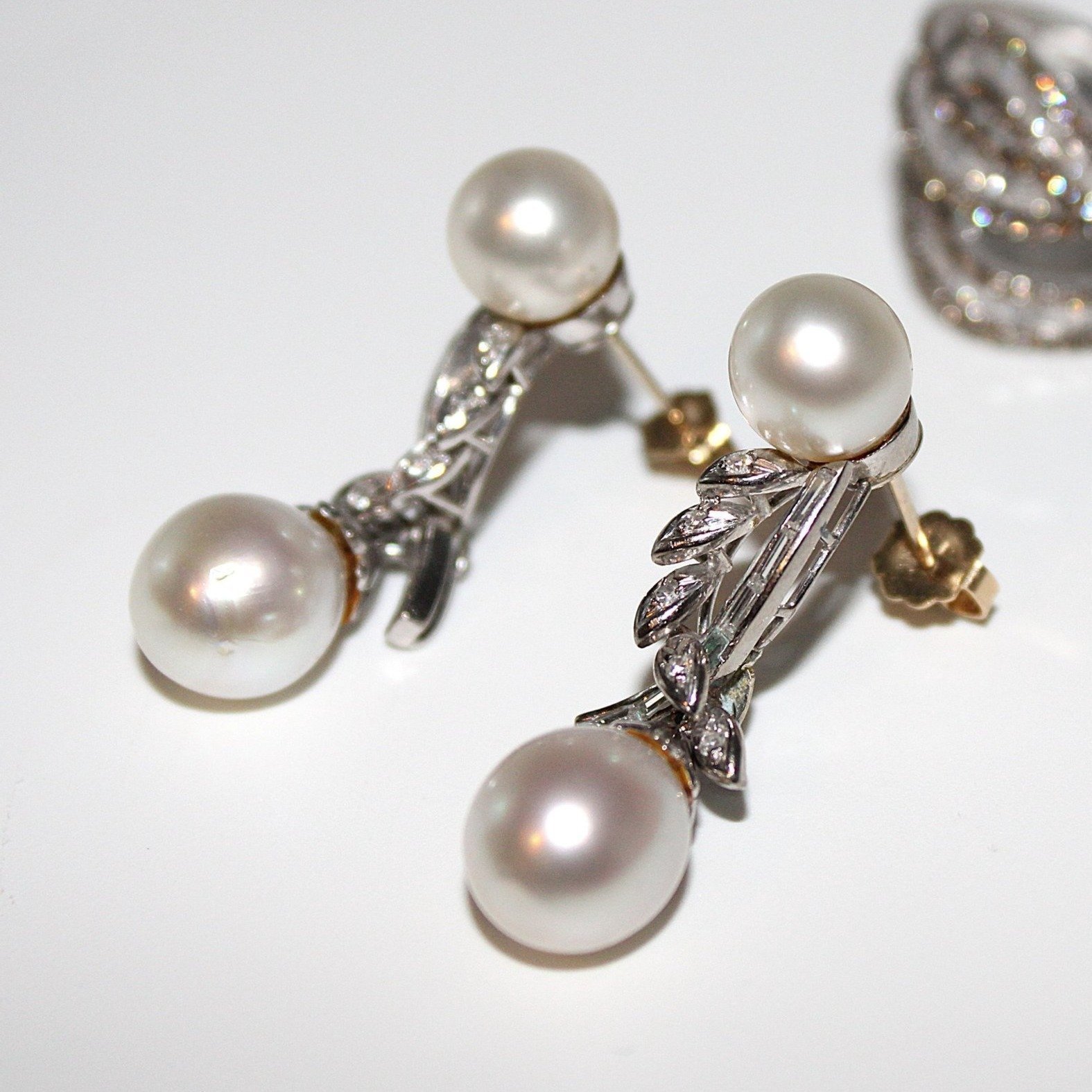 Örhängen i 14K vitguld med diamant och pärlor