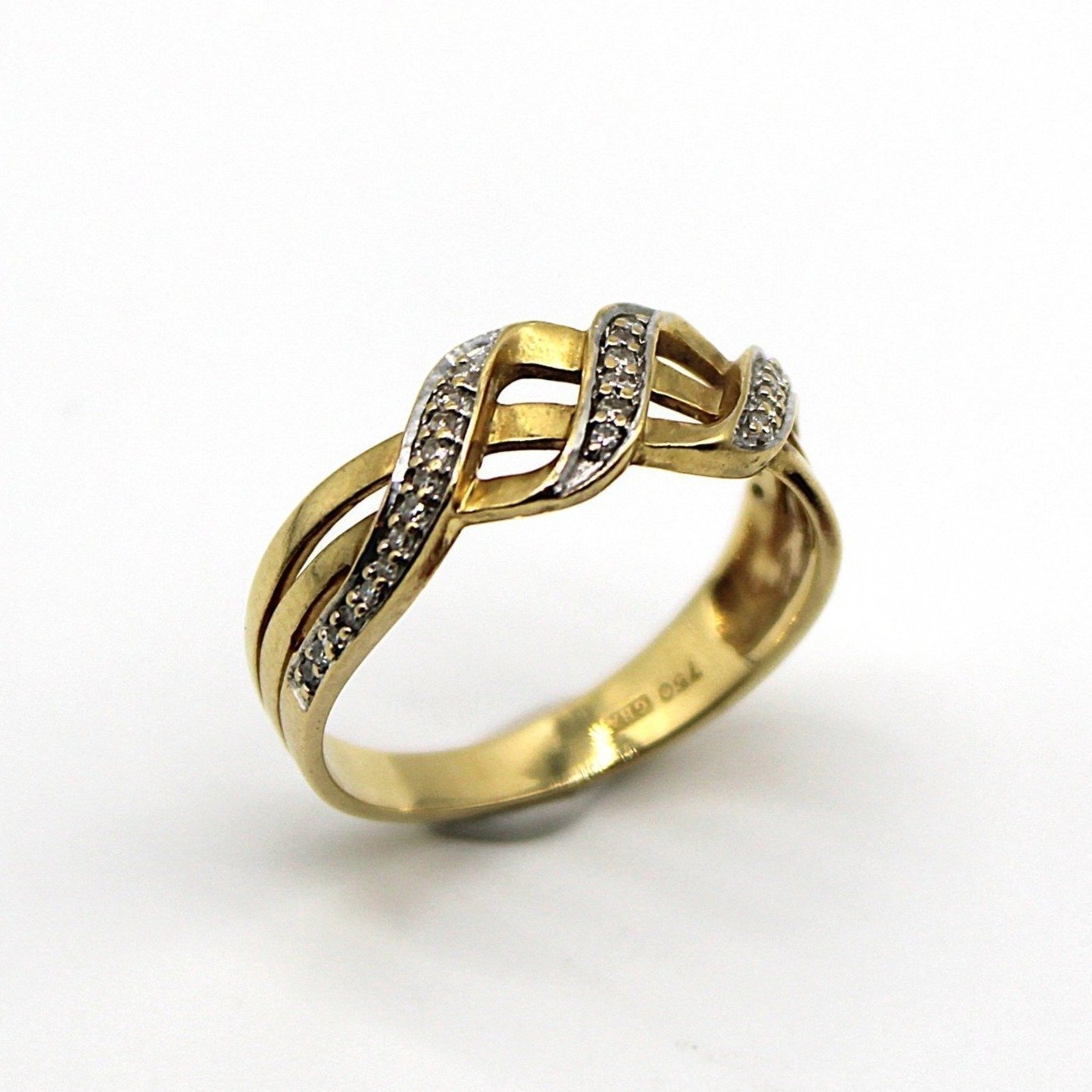 Ring i 18K guld med äkta diamanter (0,1ctv, stl 16mm)