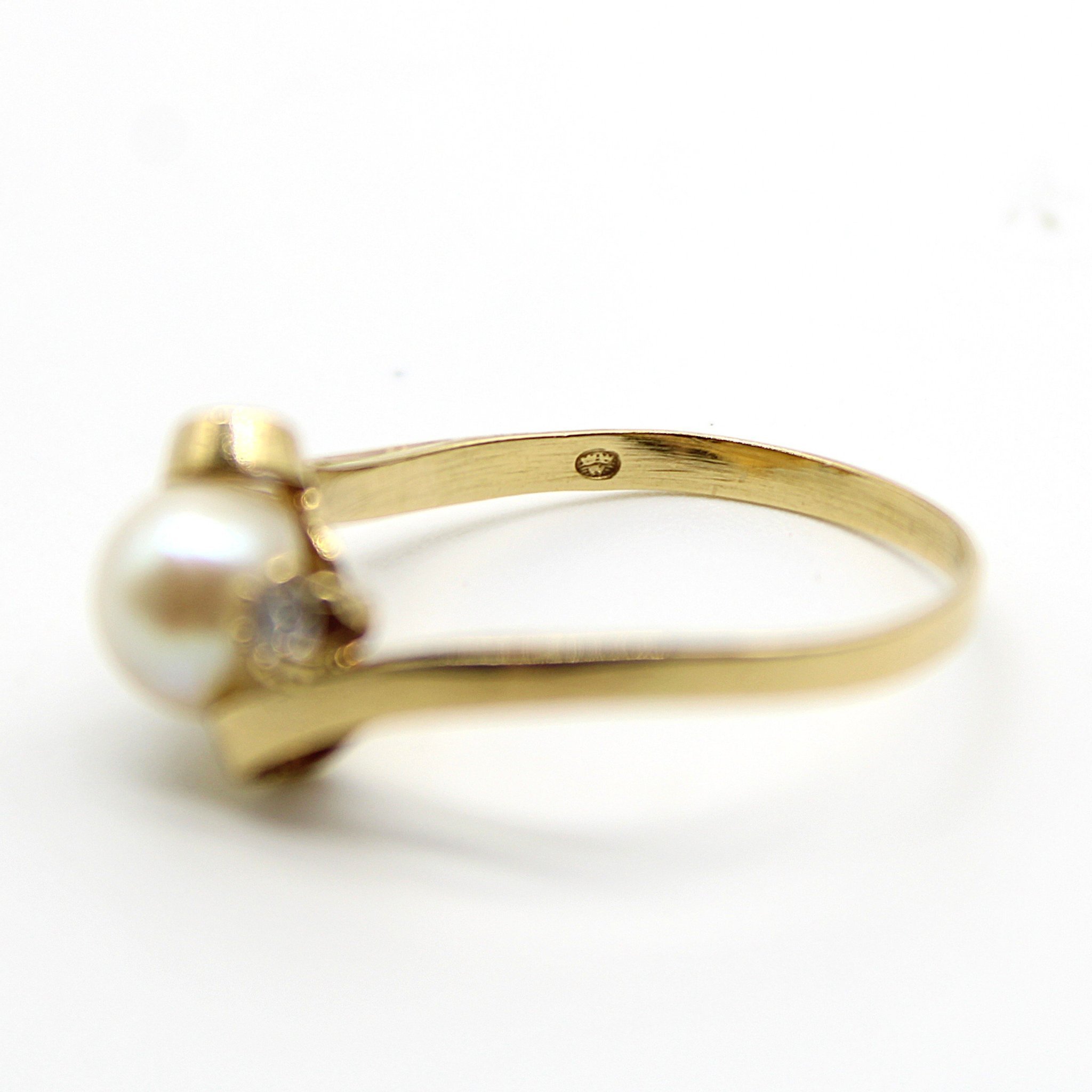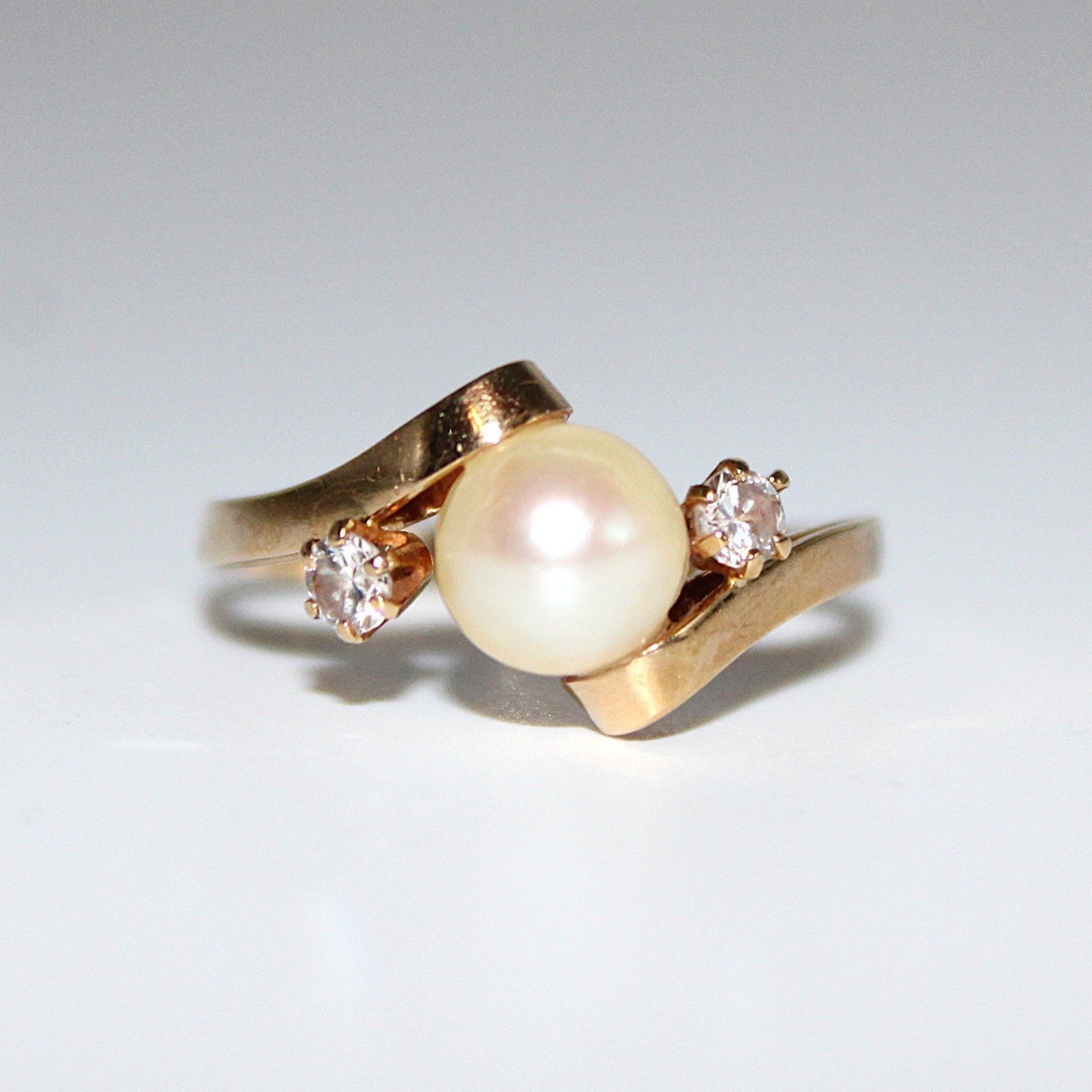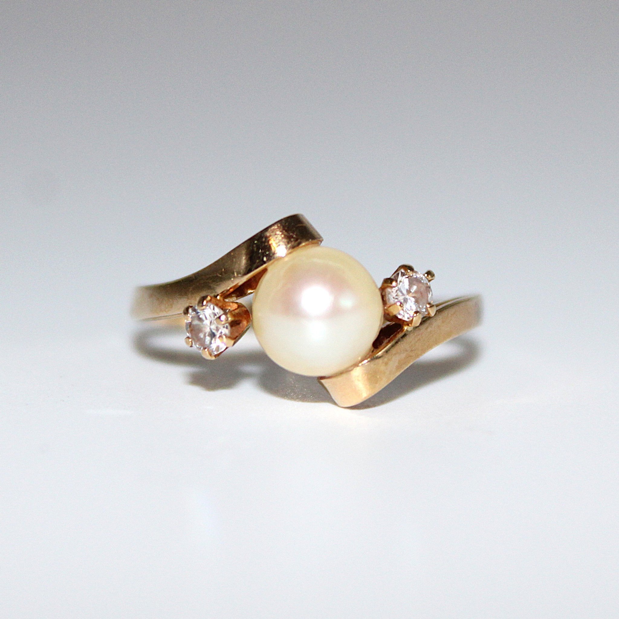 Ring i 18K guld med äkta pärla och cubic zirconia