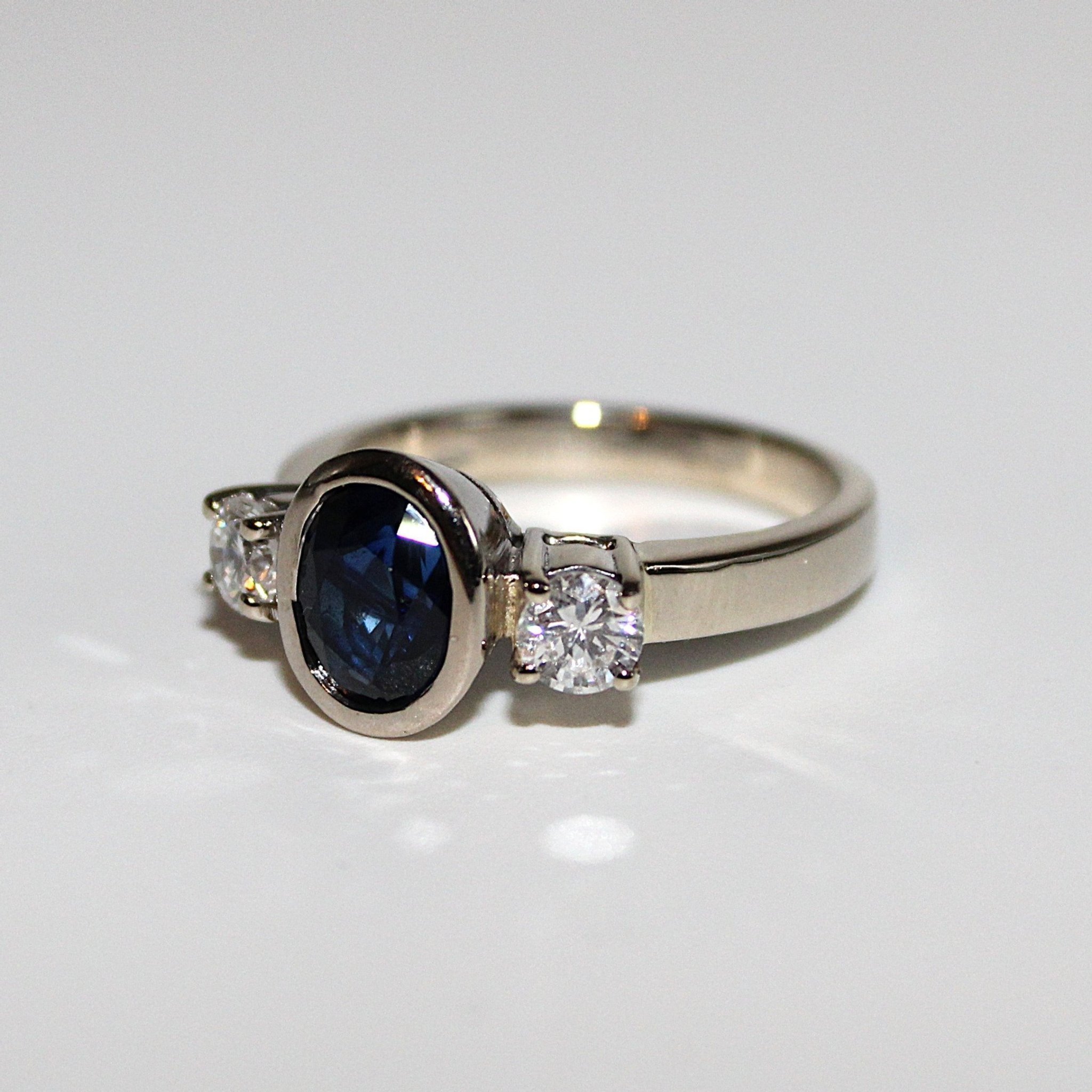 Ring i 18K vitguld med safir (1,5ctv) och diamanter