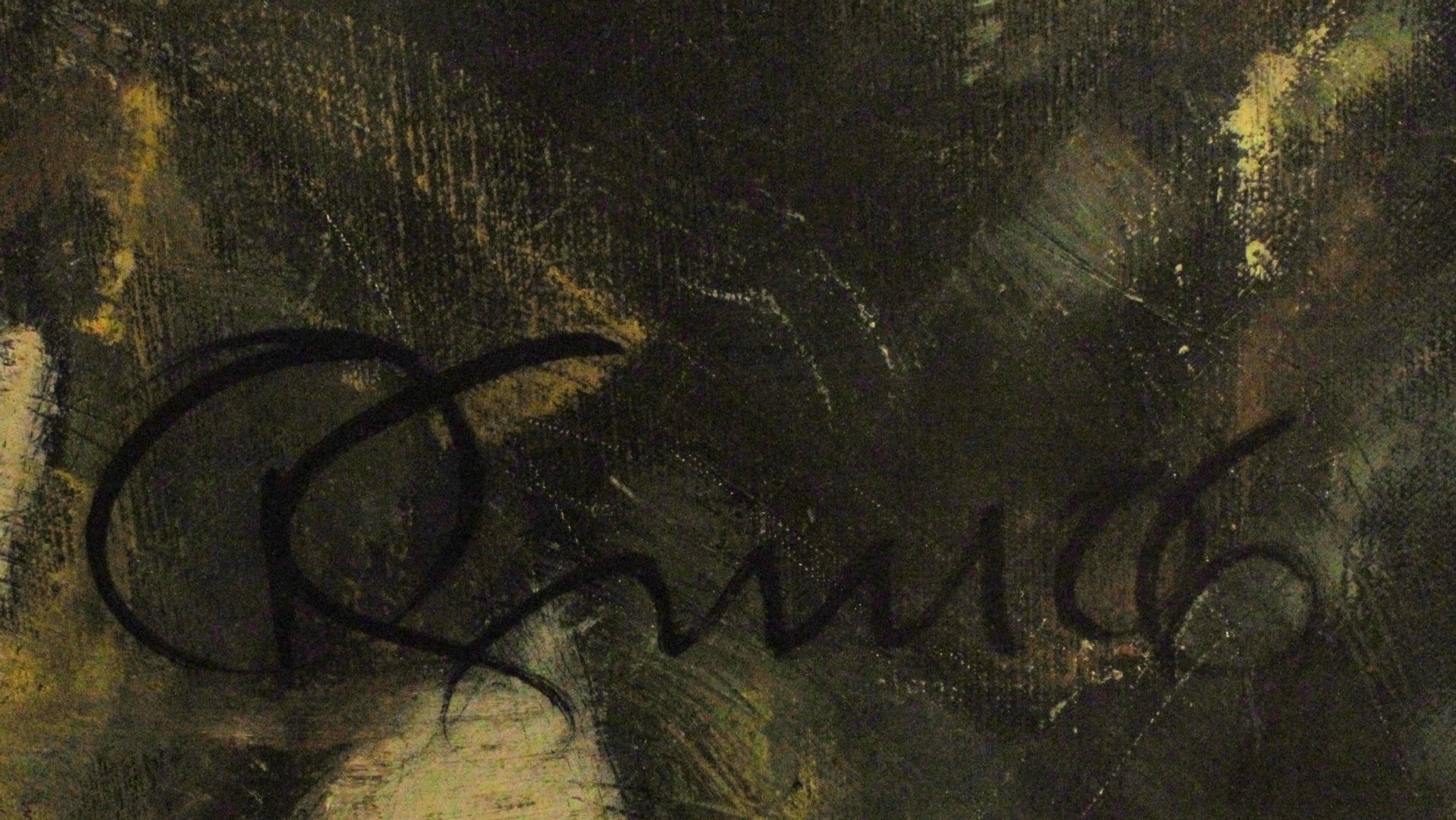 Signerad tavla av Peter Gröndahl, olja på duk, skelettmotiv