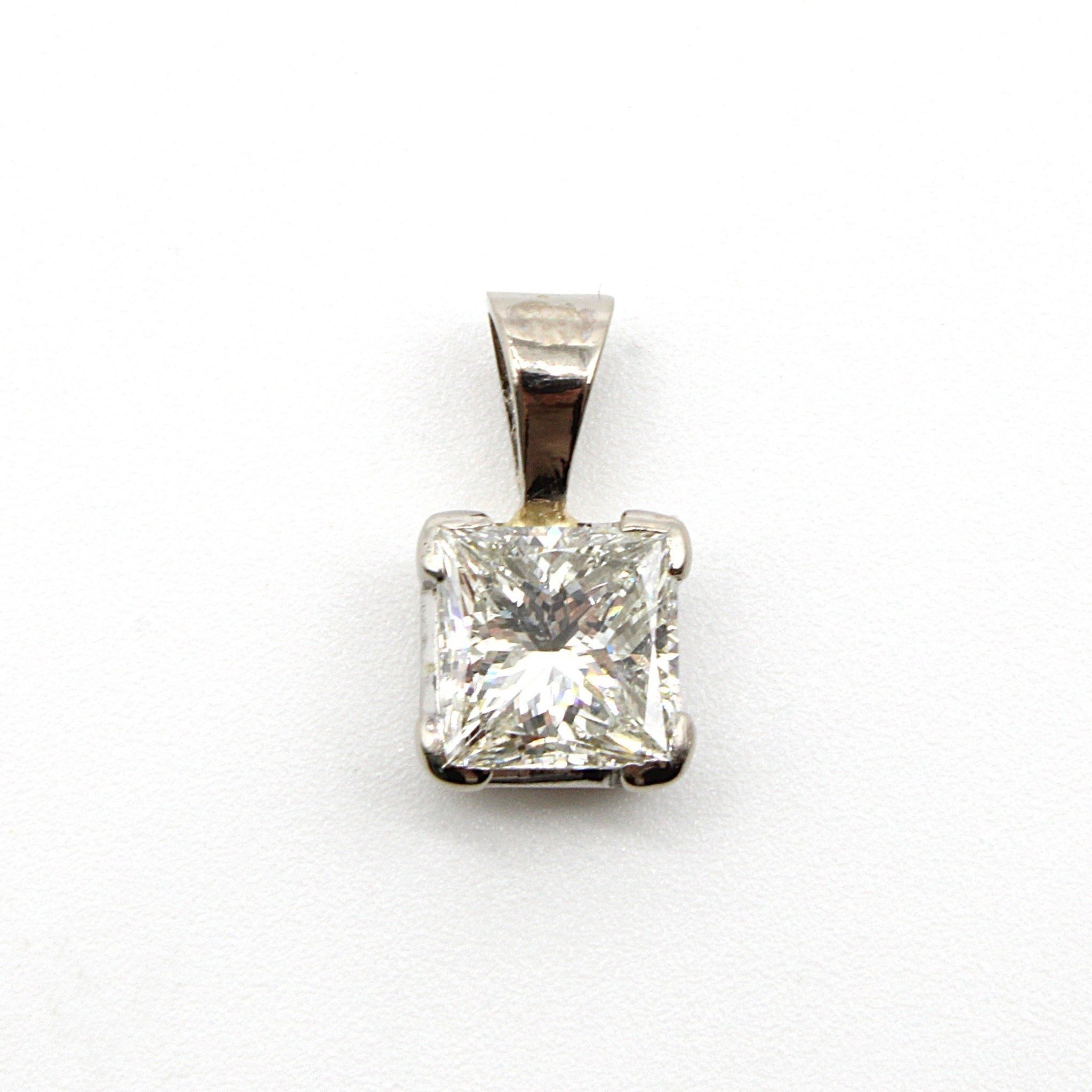 Solitärhänge i 18K vitguld med äkta princesslipad diamant (1,11ctv)