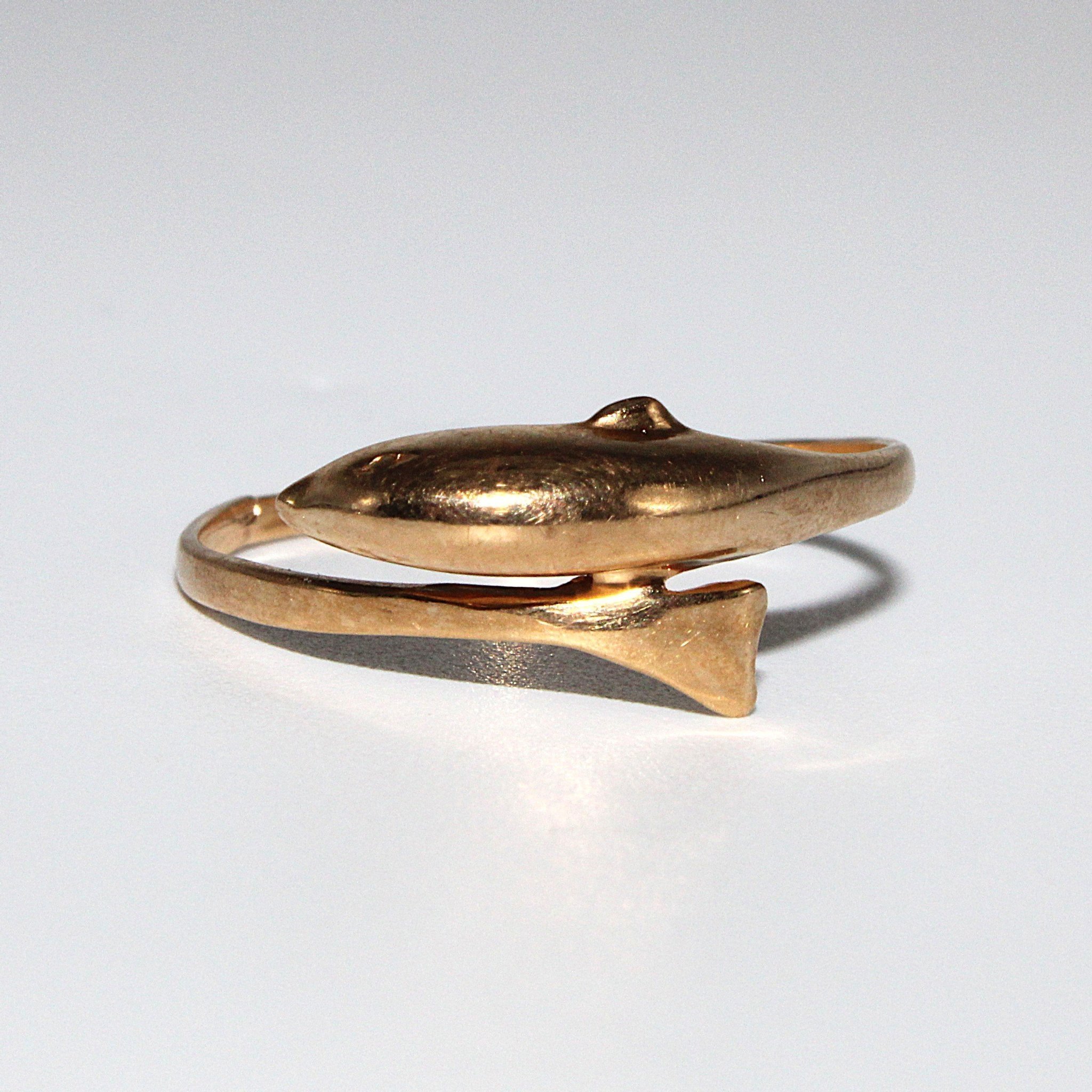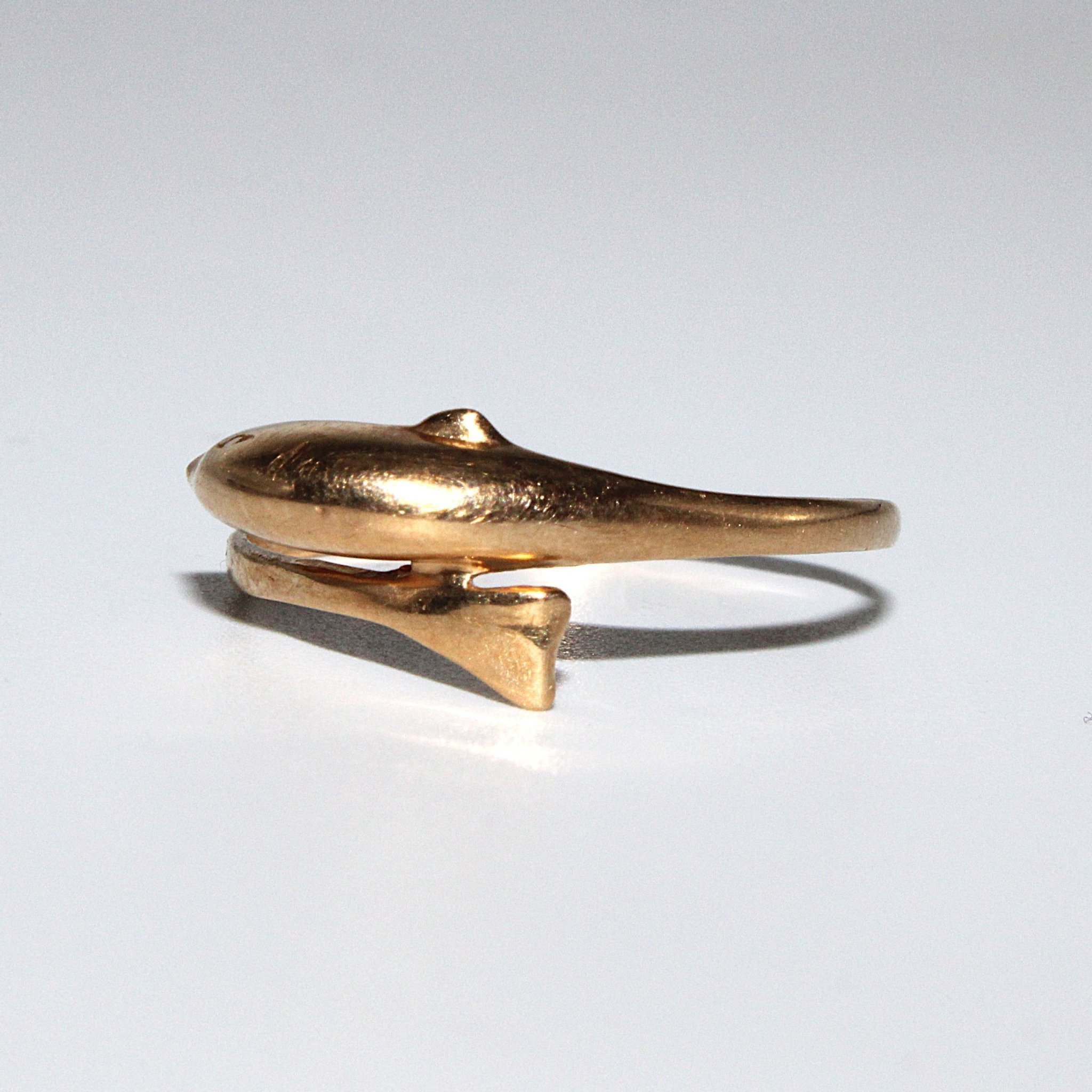 Söt ring i äkta 18K guld med delfin (stl 18,8mm)