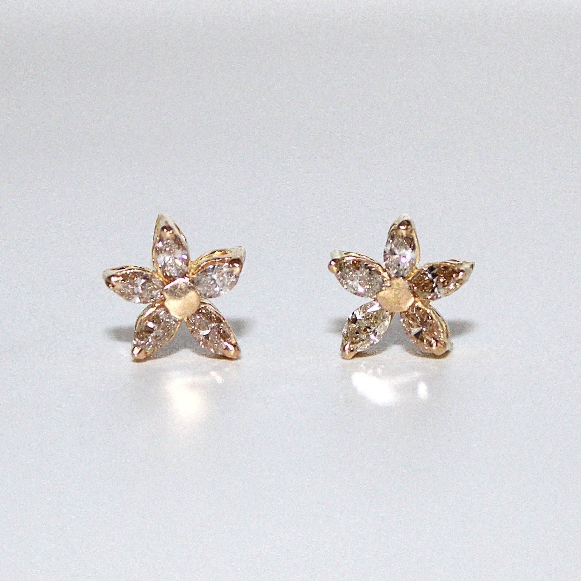 Söta studs/stiftörhängen i 18K guld med äkta diamanter (0,7ctv) i blommotiv Till auktionen på Tradera →