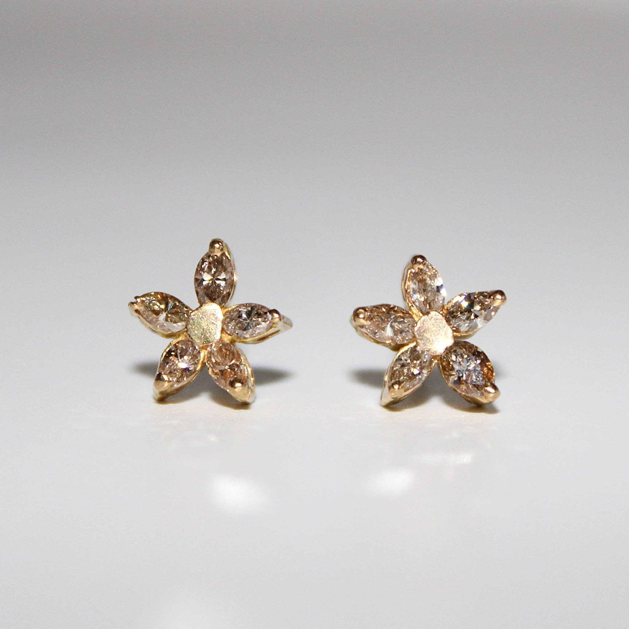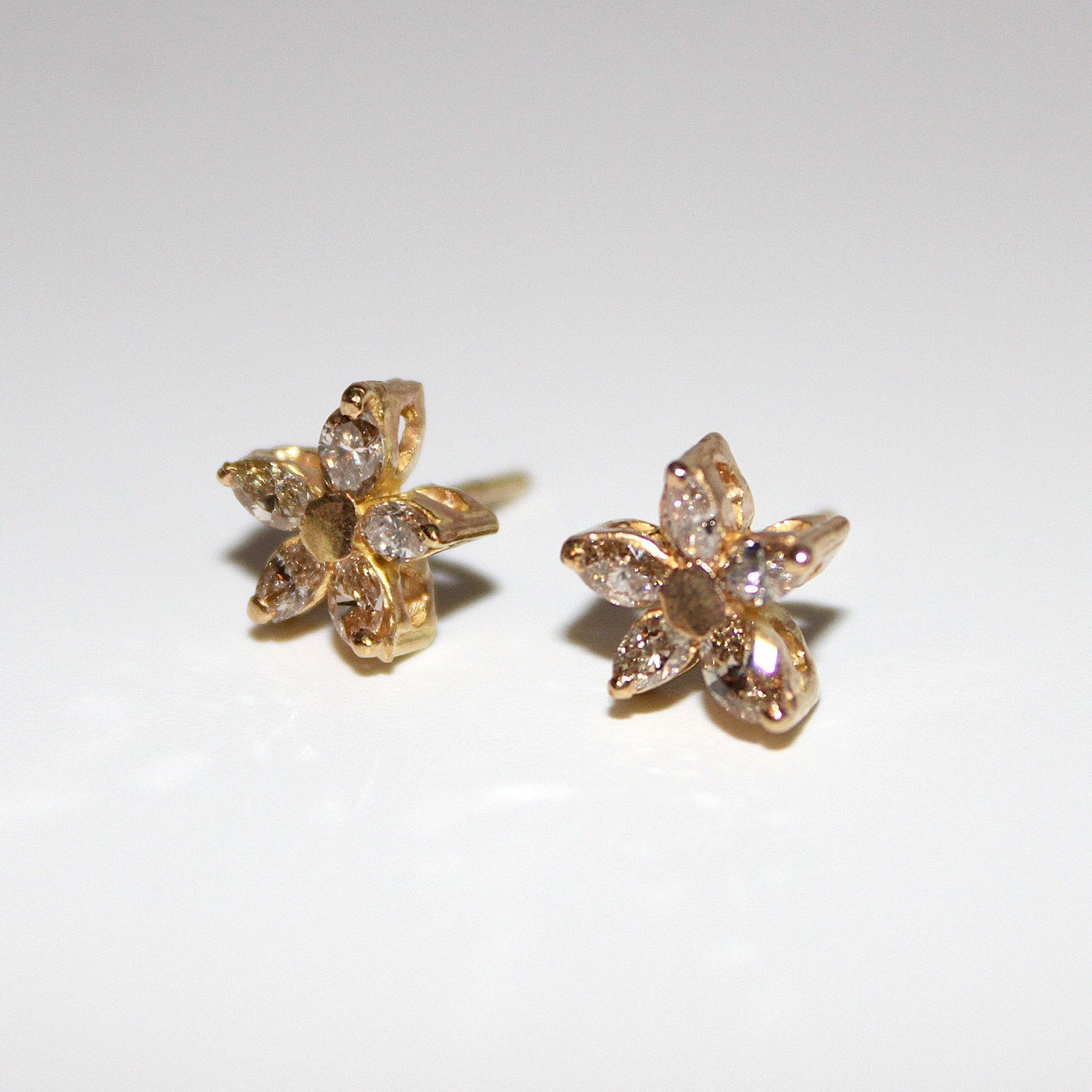 Söta studs/stiftörhängen i 18K guld med äkta diamanter (0,7ctv) i blommotiv
