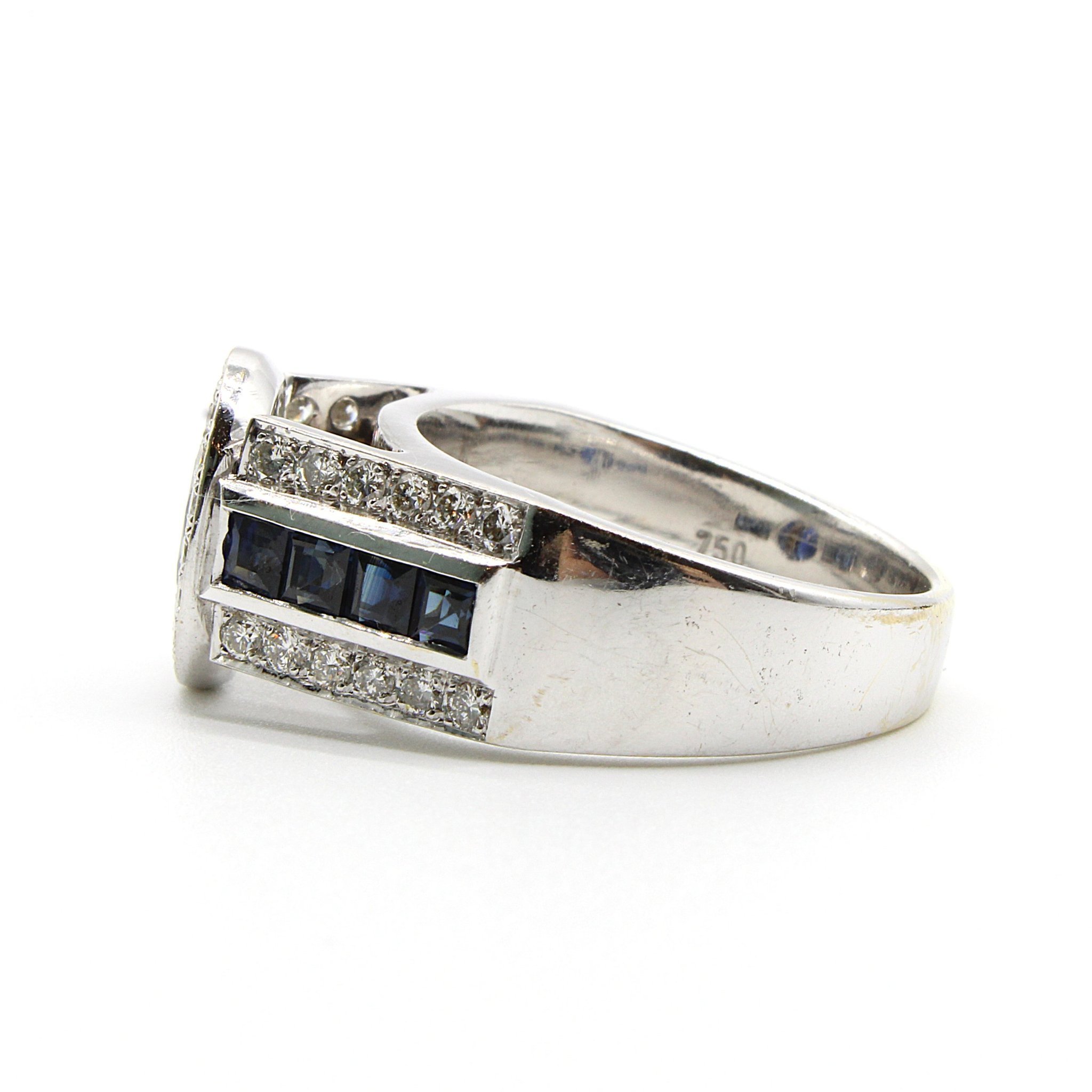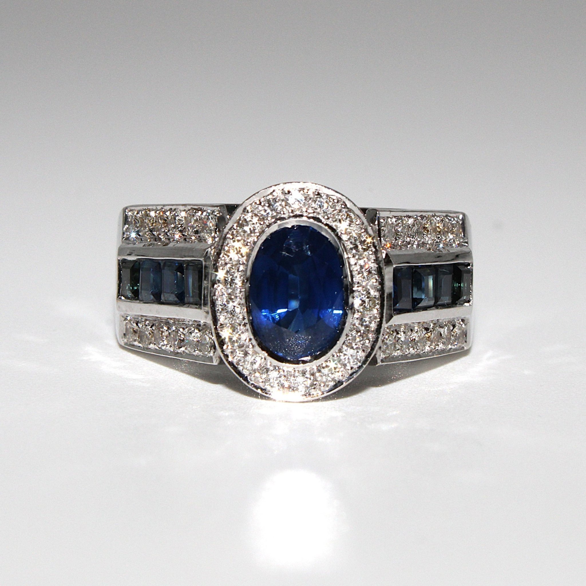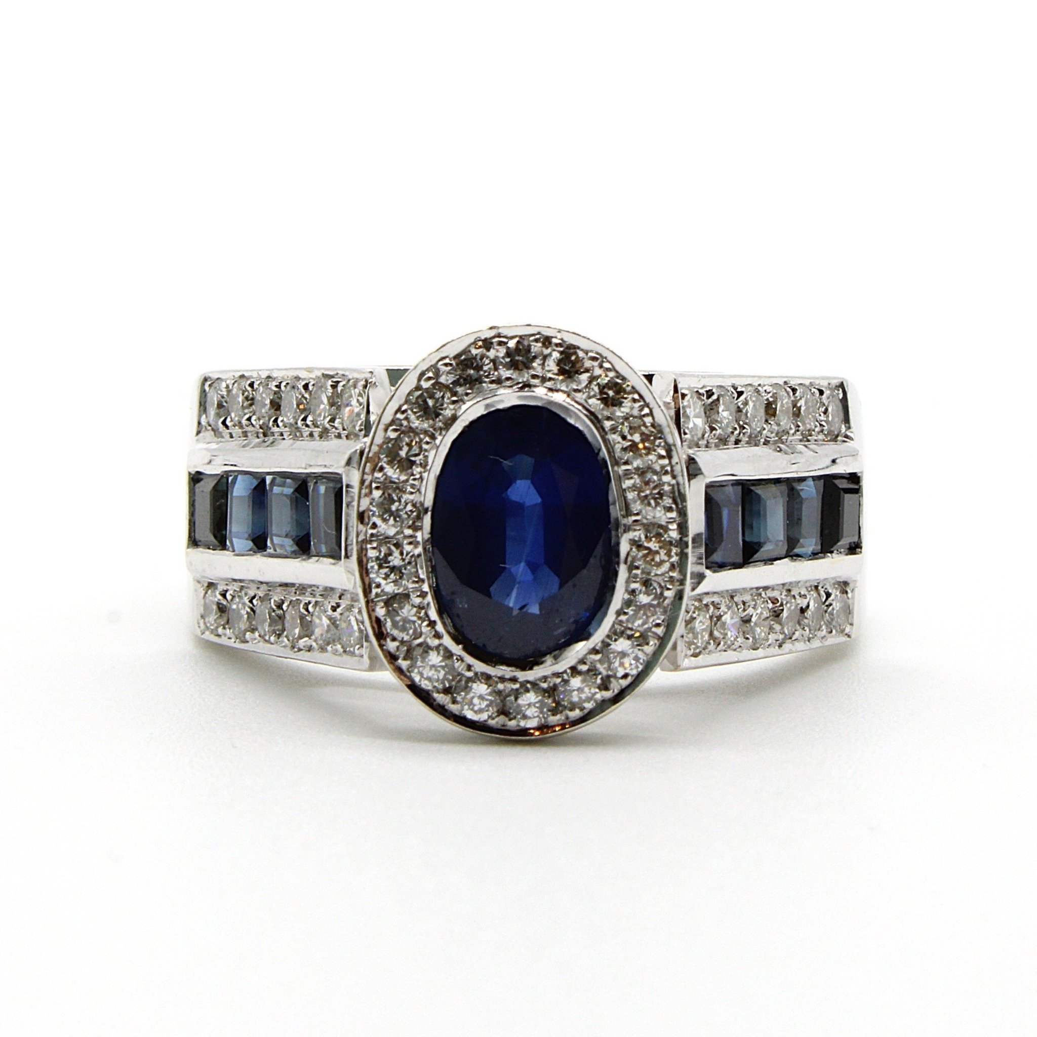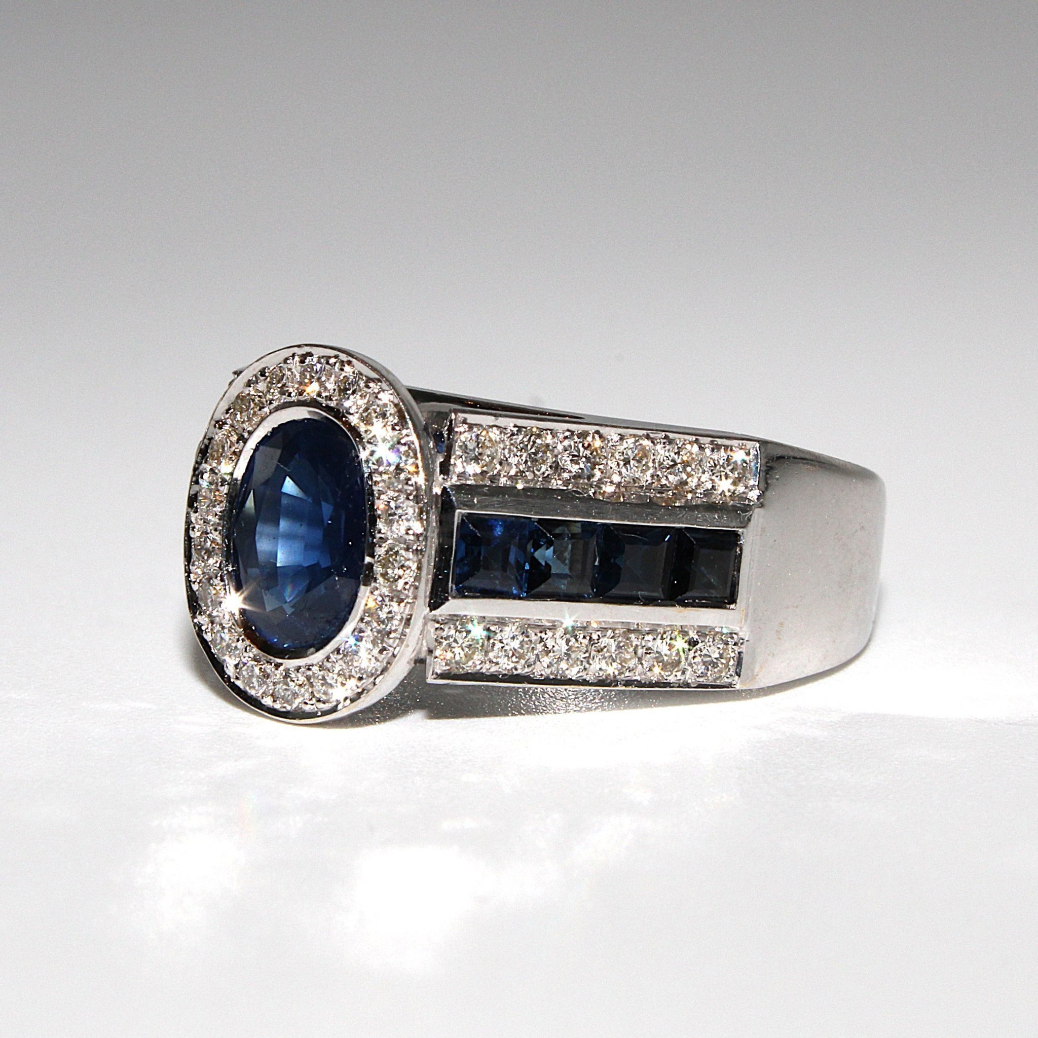 Unik äkta safir- och diamantring i 18K vitguld (2,19ctv, stl 16,95mm)