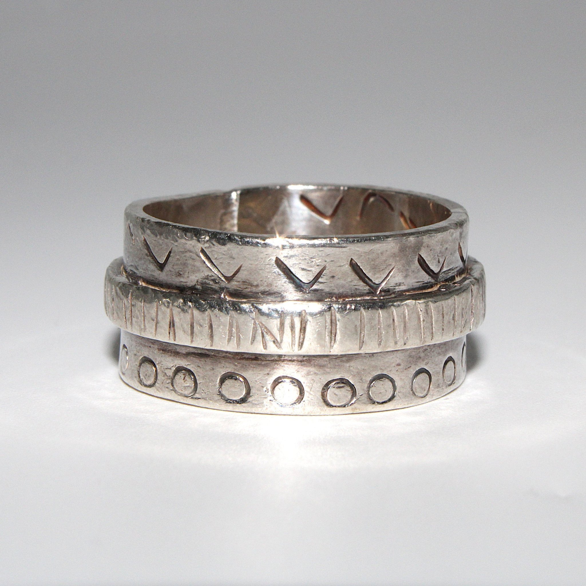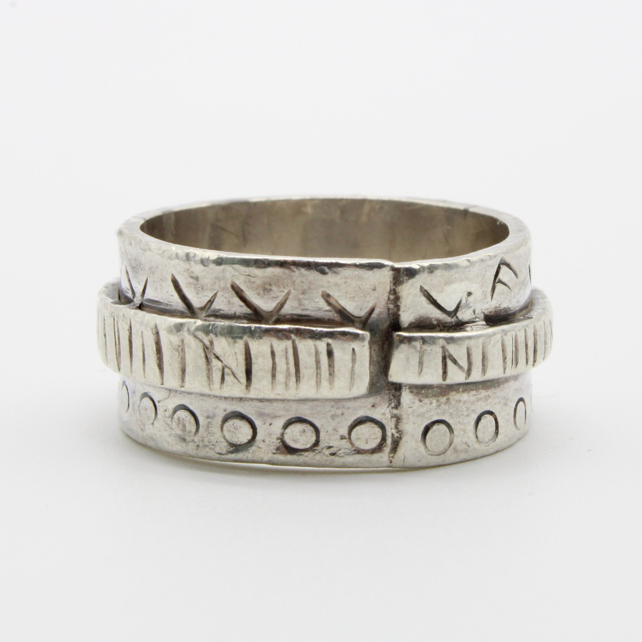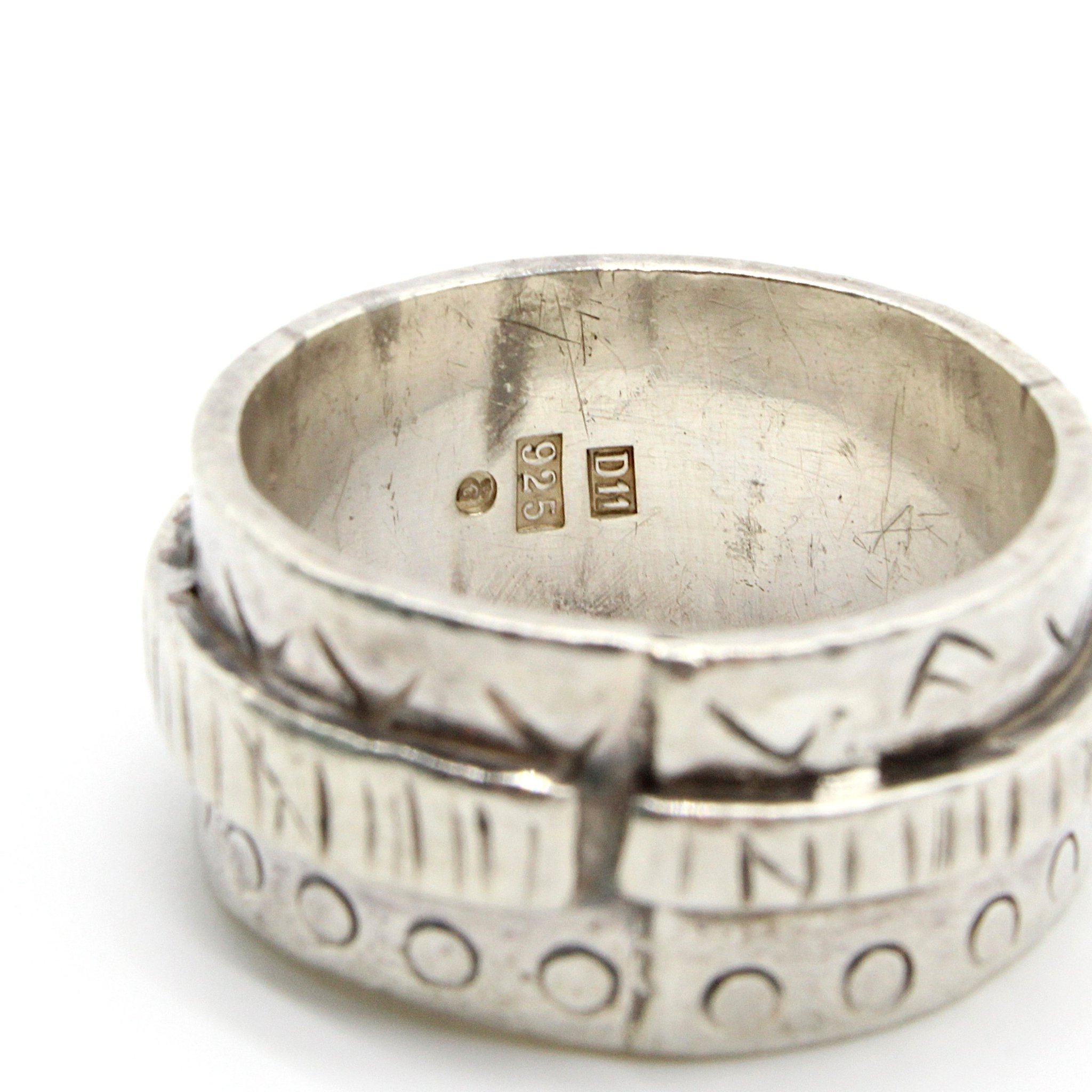 Unik ring i 925 silver med mönster (vikt 12,8g, stl 20,45mm)