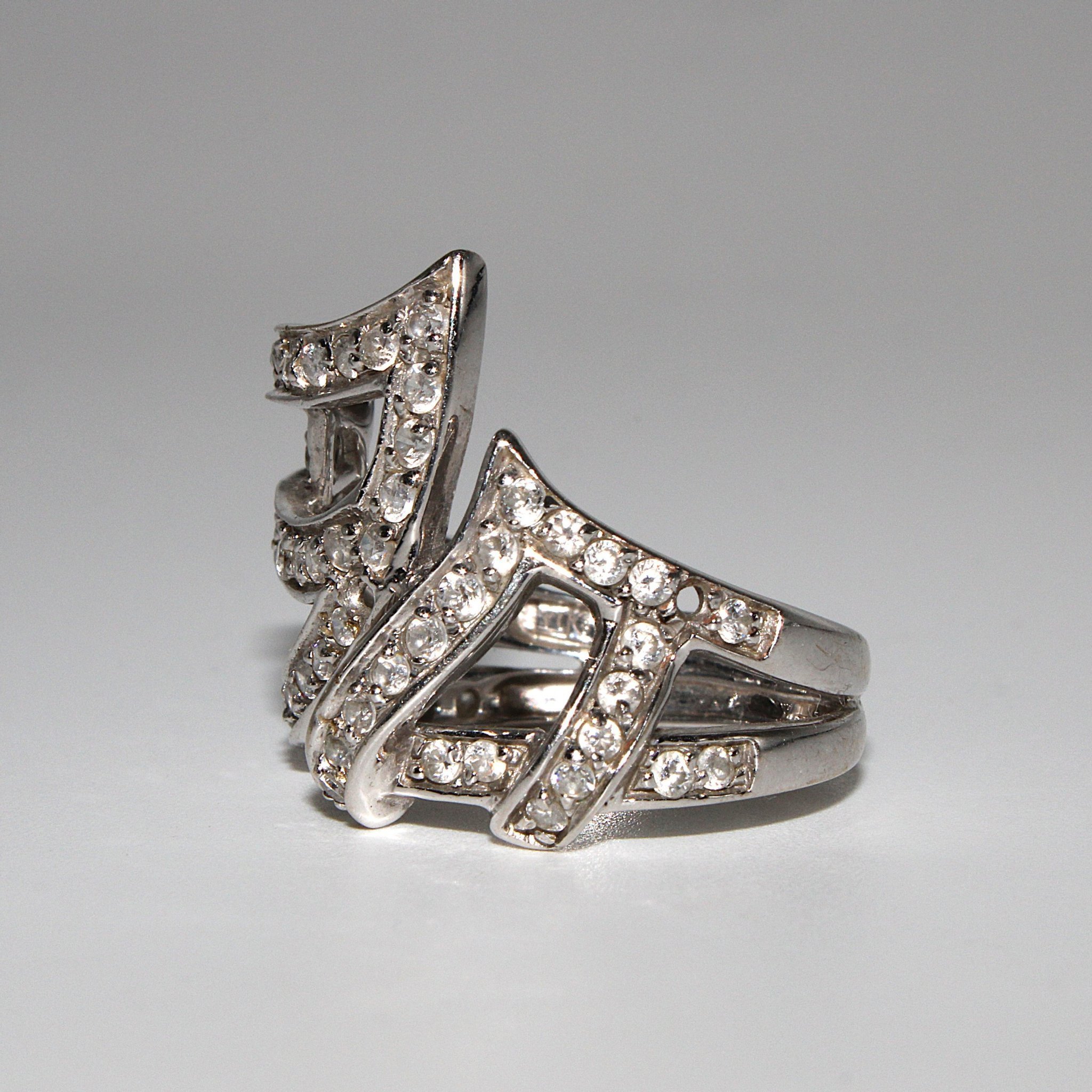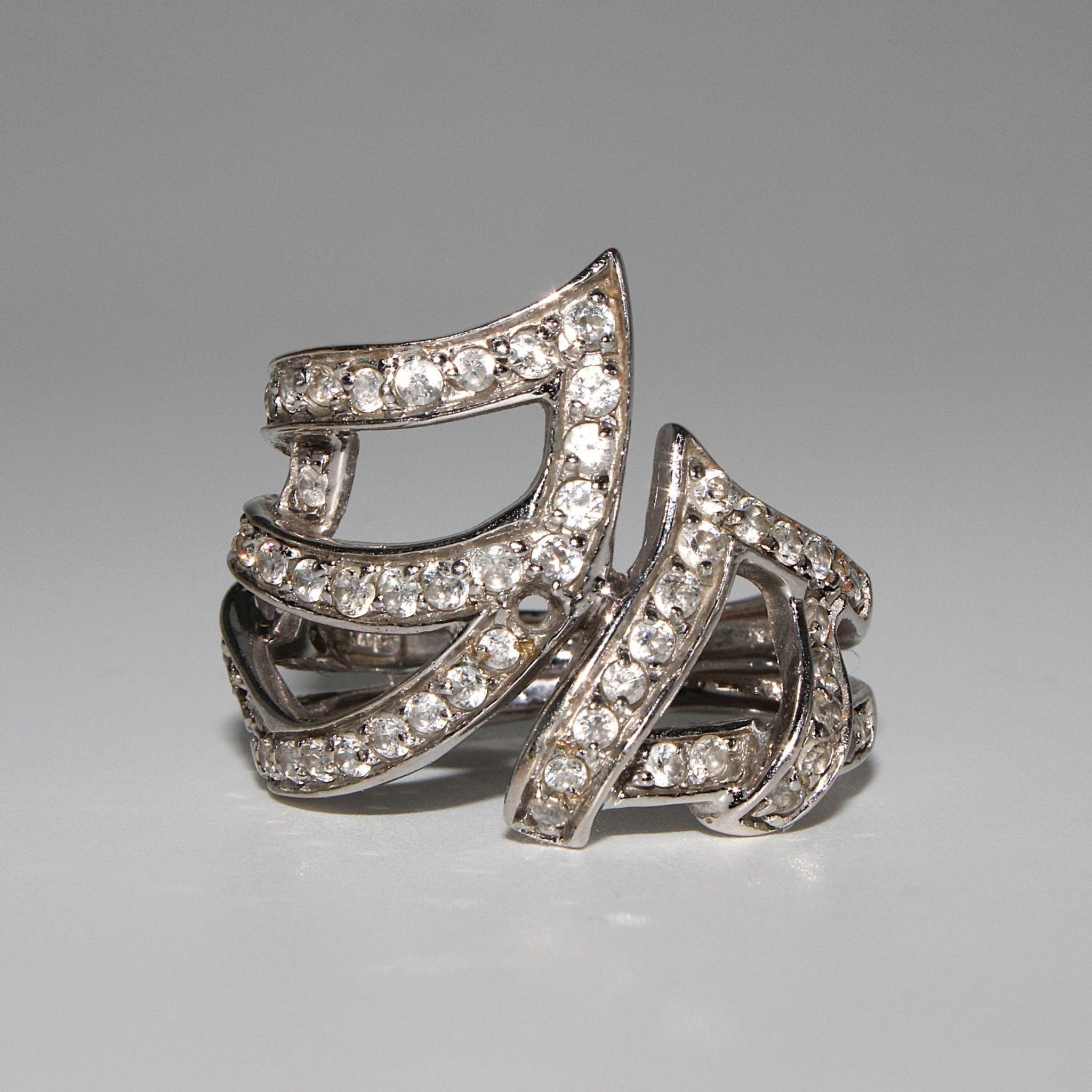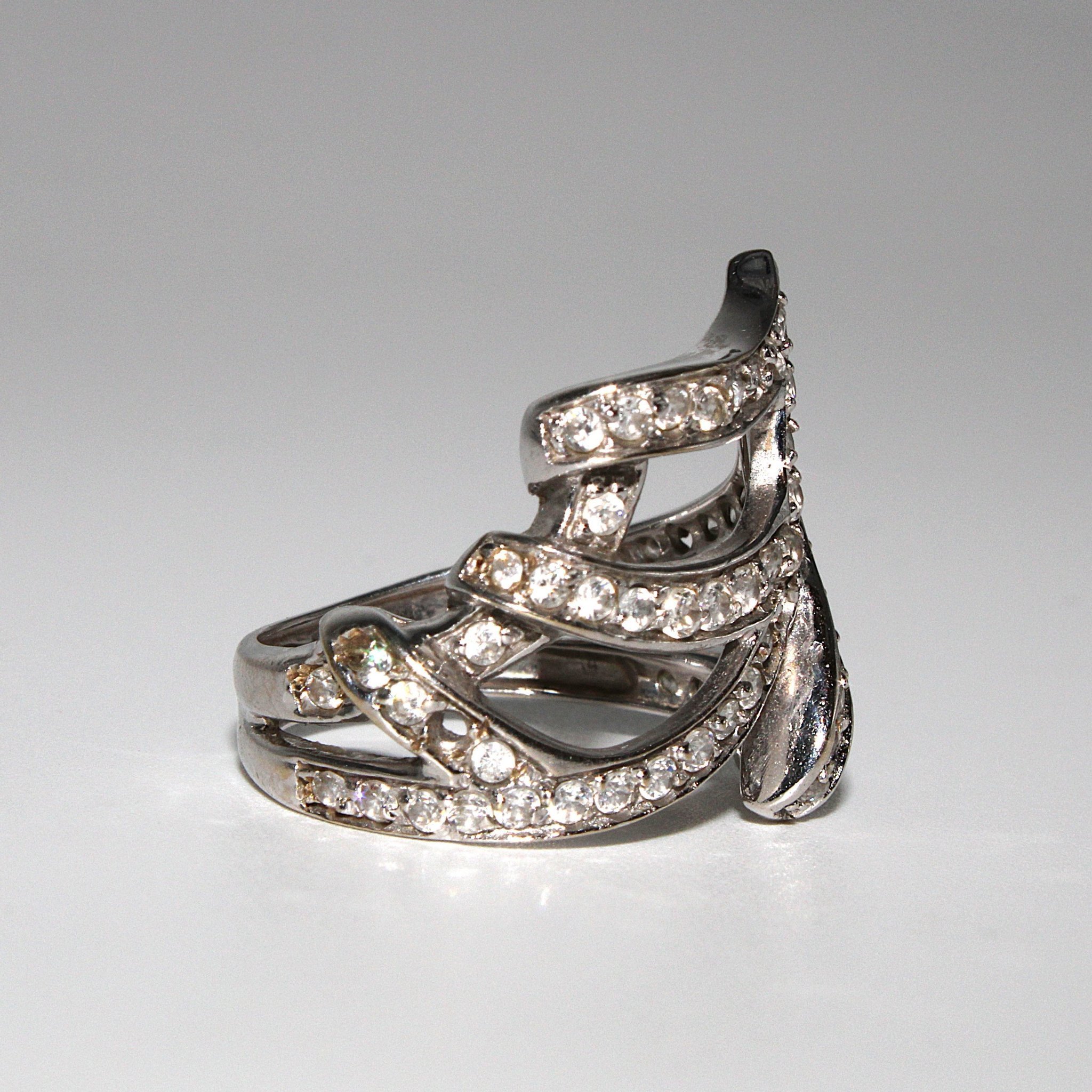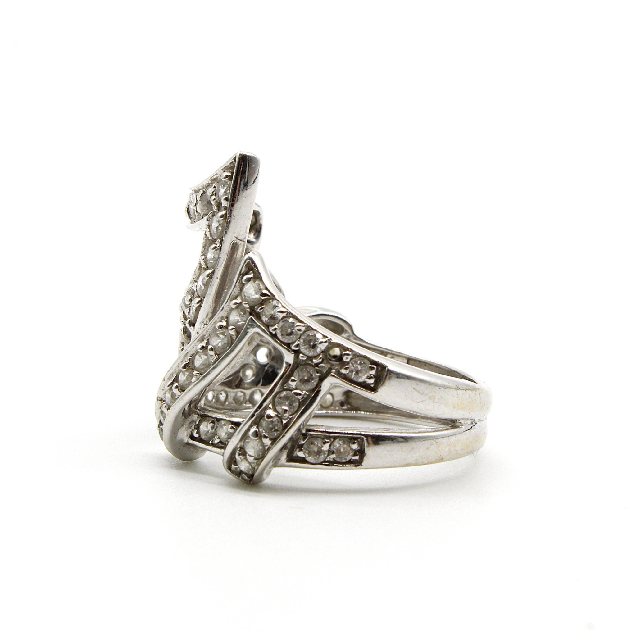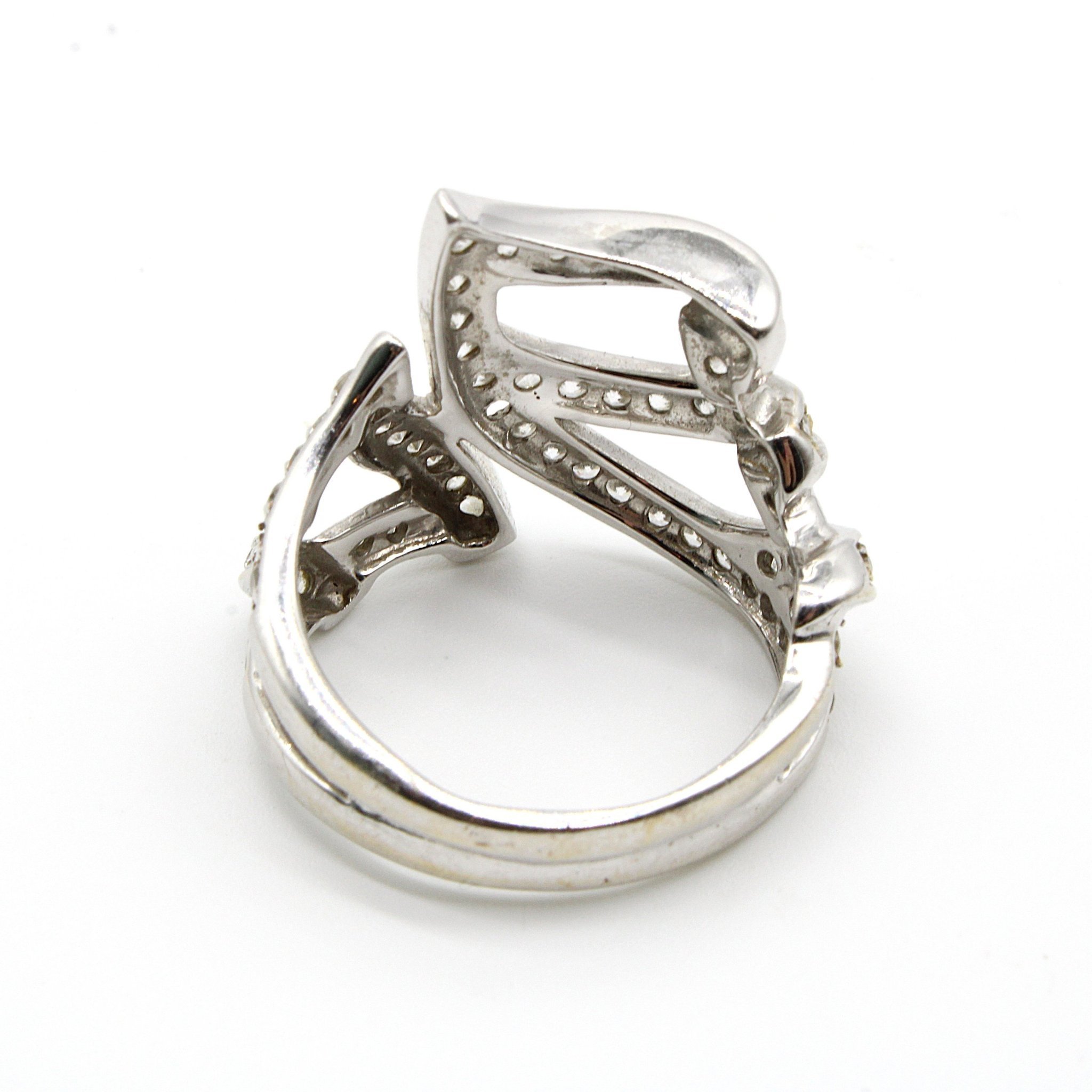 Unik statementring i 18K vitguld med vita stenar (stl 18,2mm)