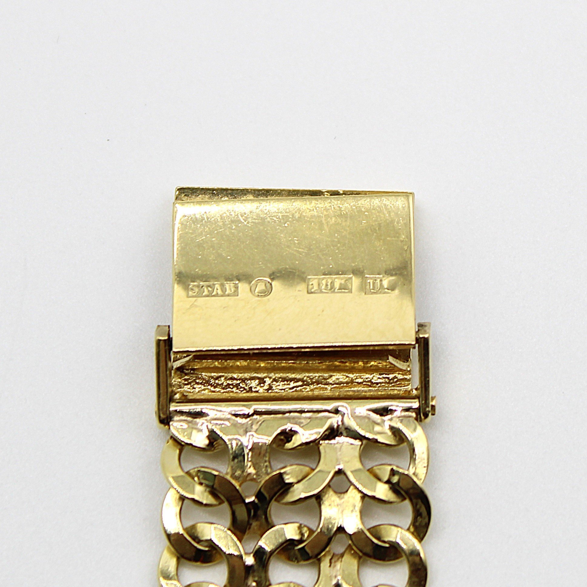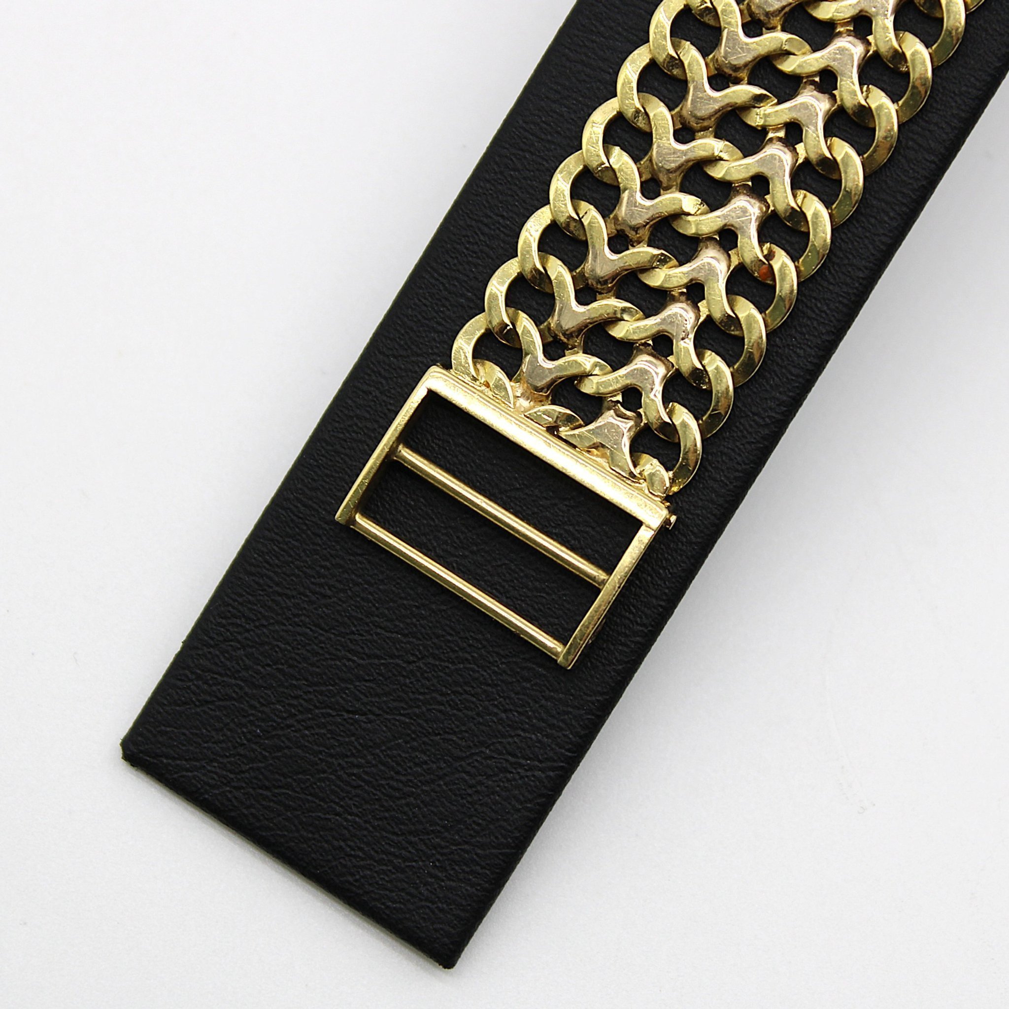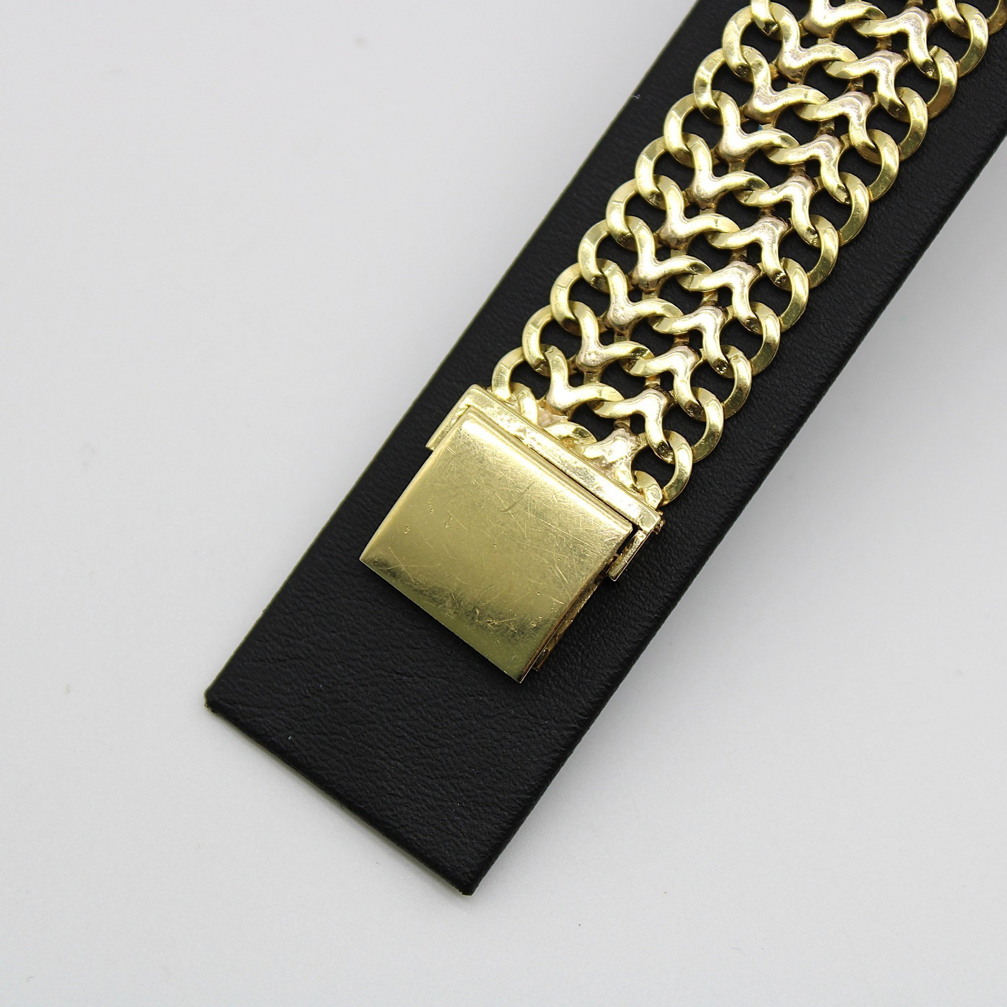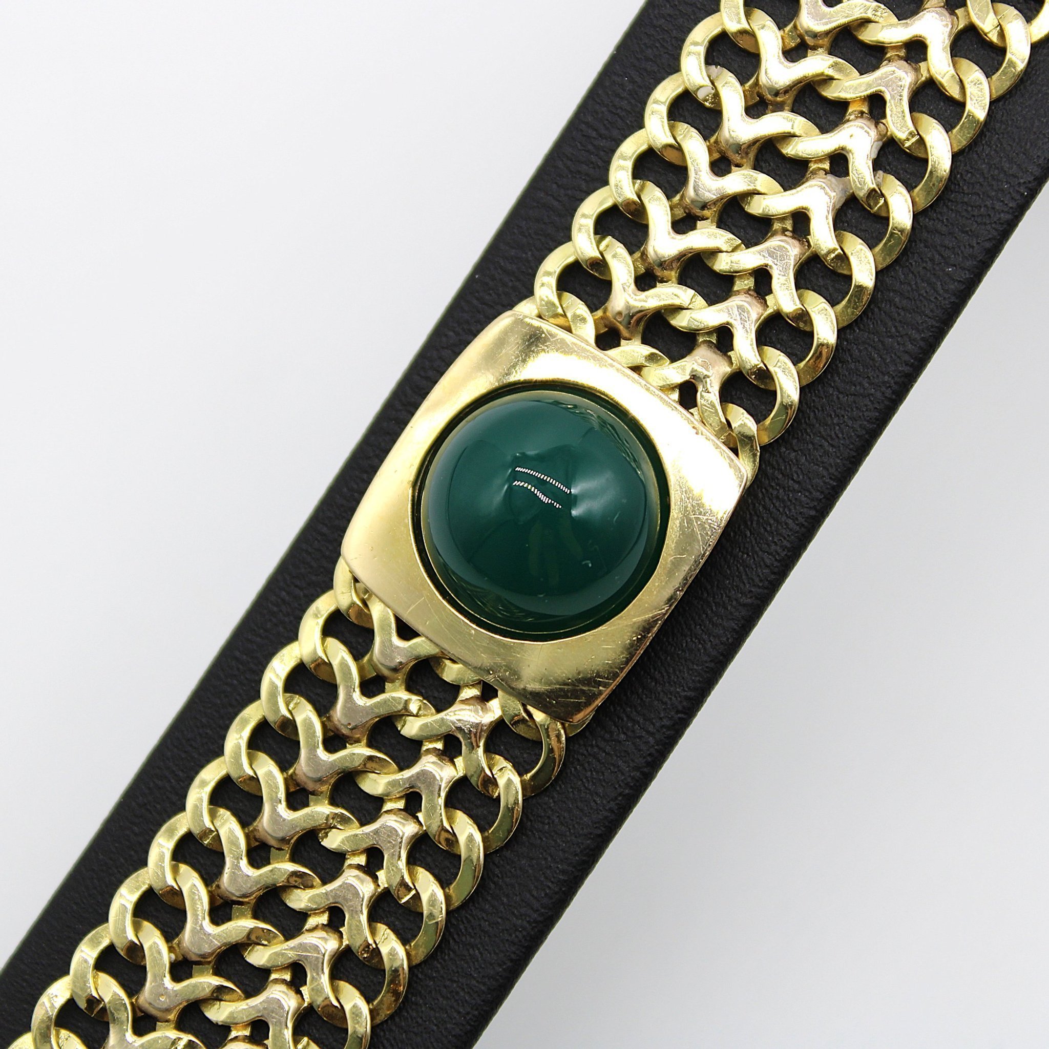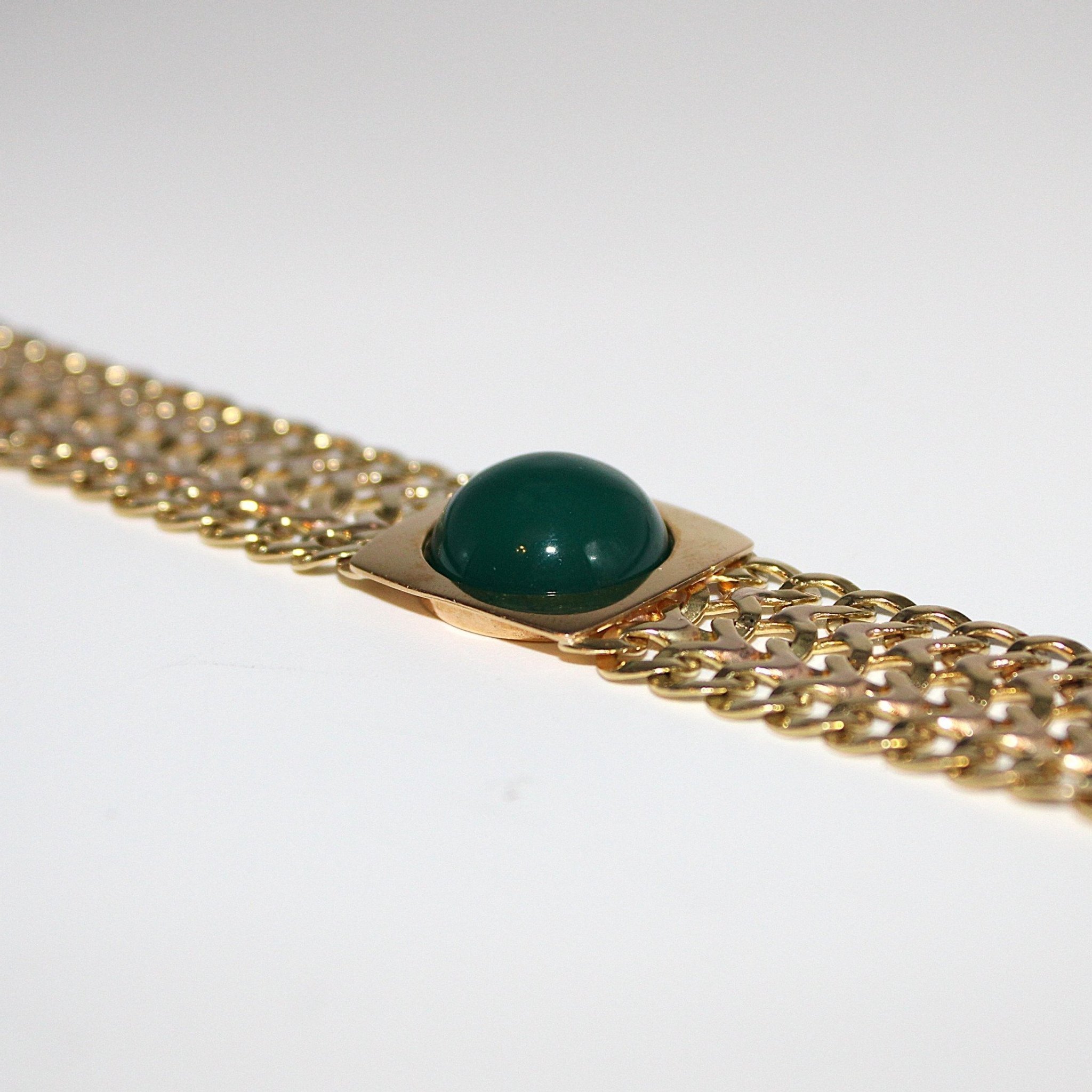 Unikt fiskben armband i 18K guld med grön sten, 18,5cm
