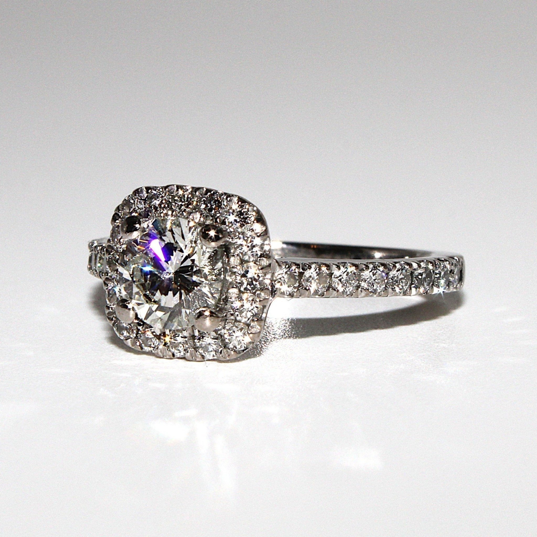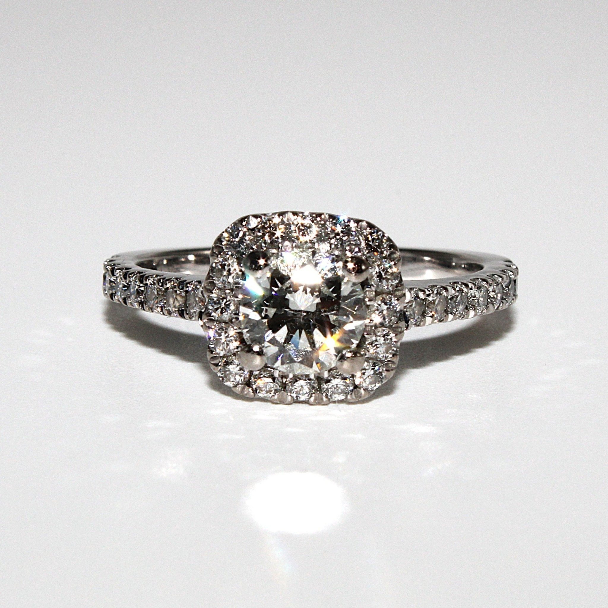 Vacker halo äkta diamantring i 18K vitguld (1,13ctv, stl 15,9mm)