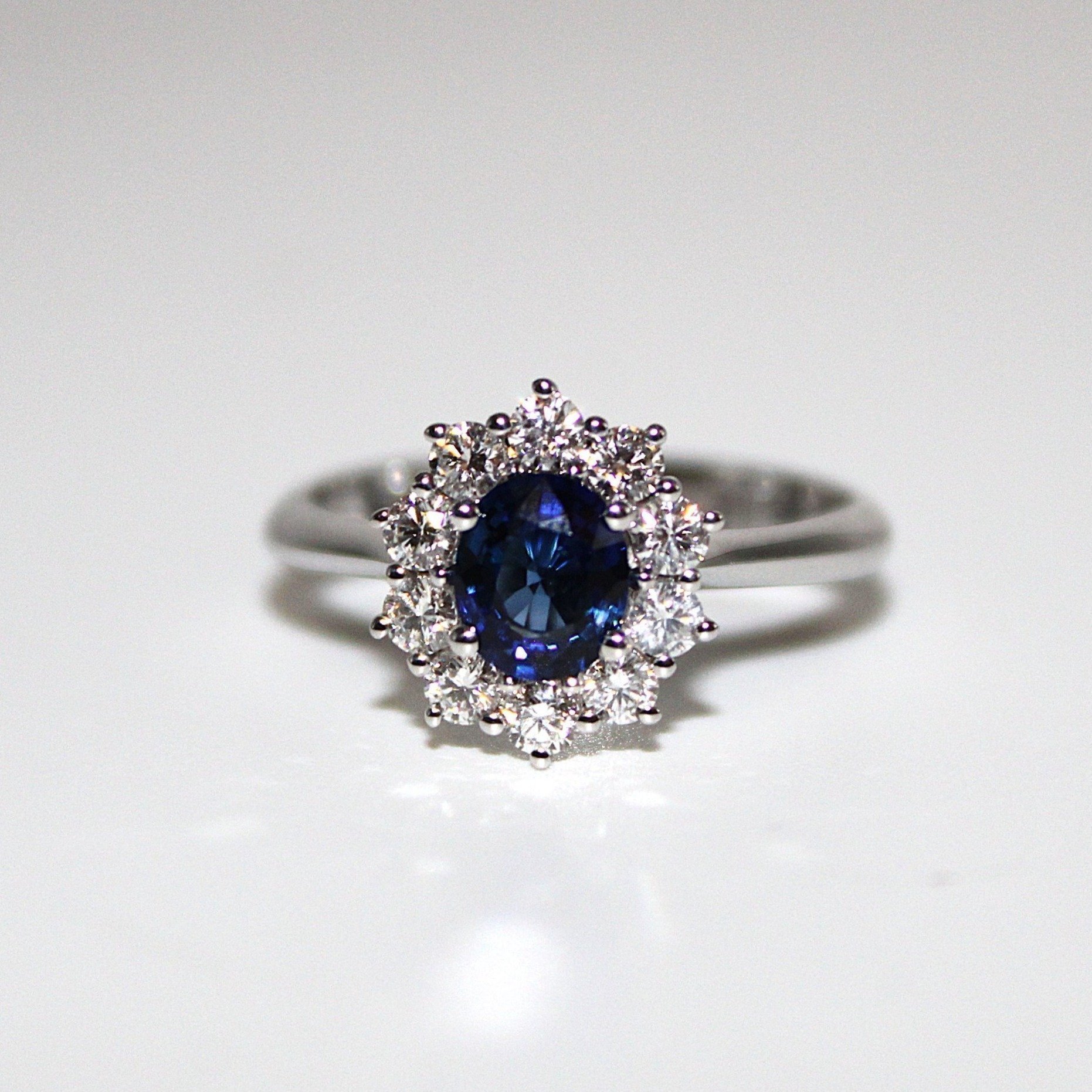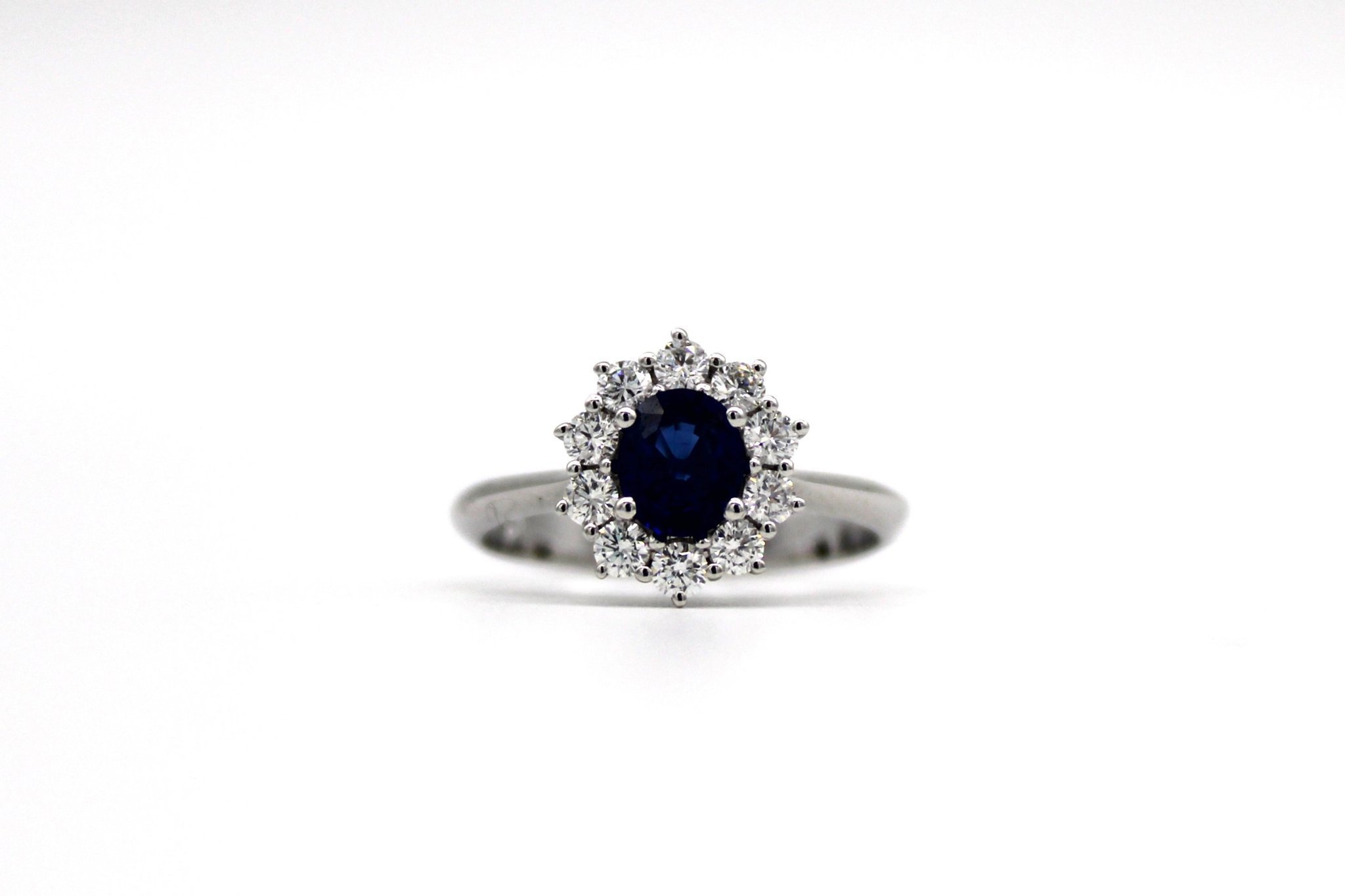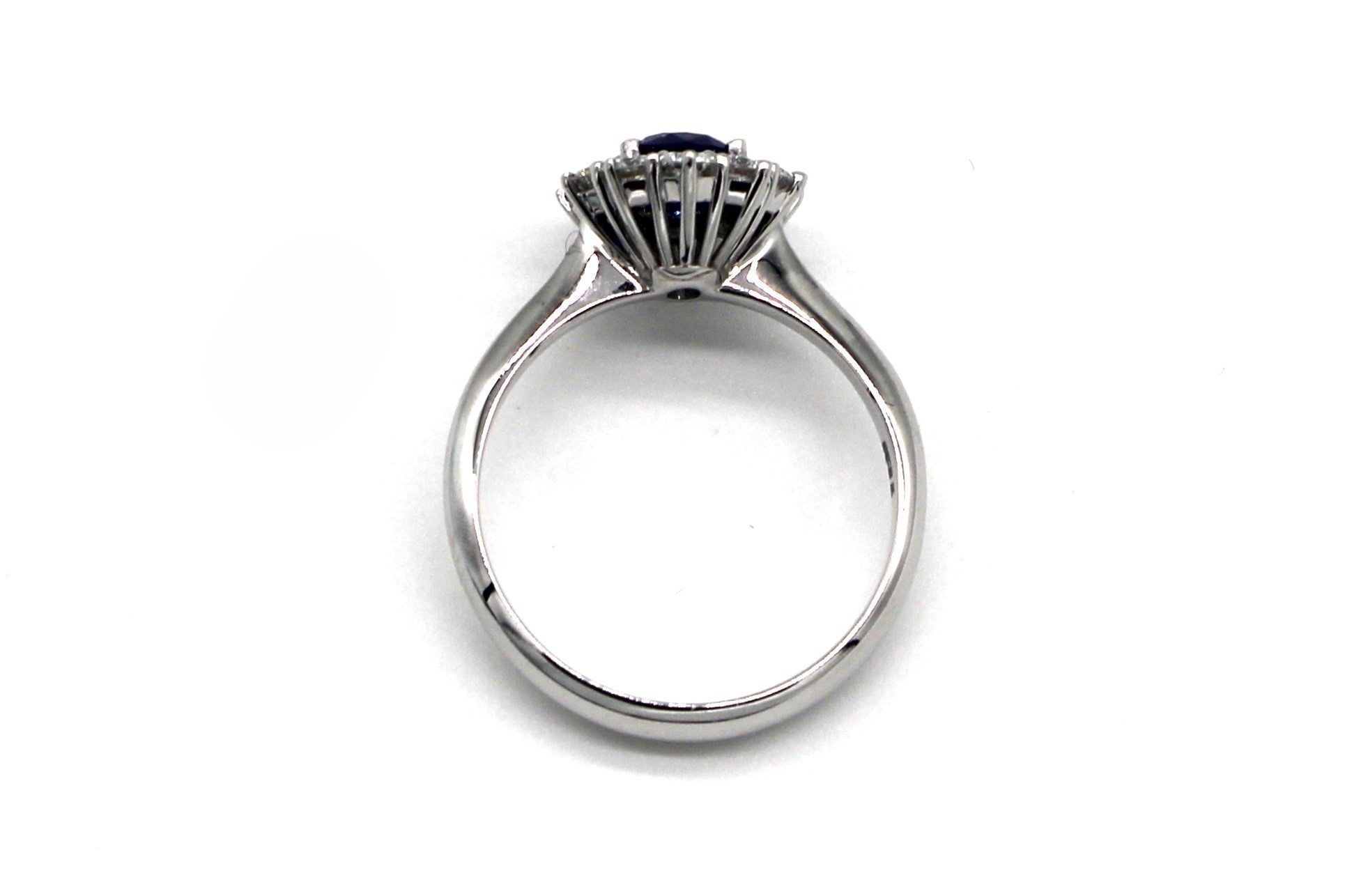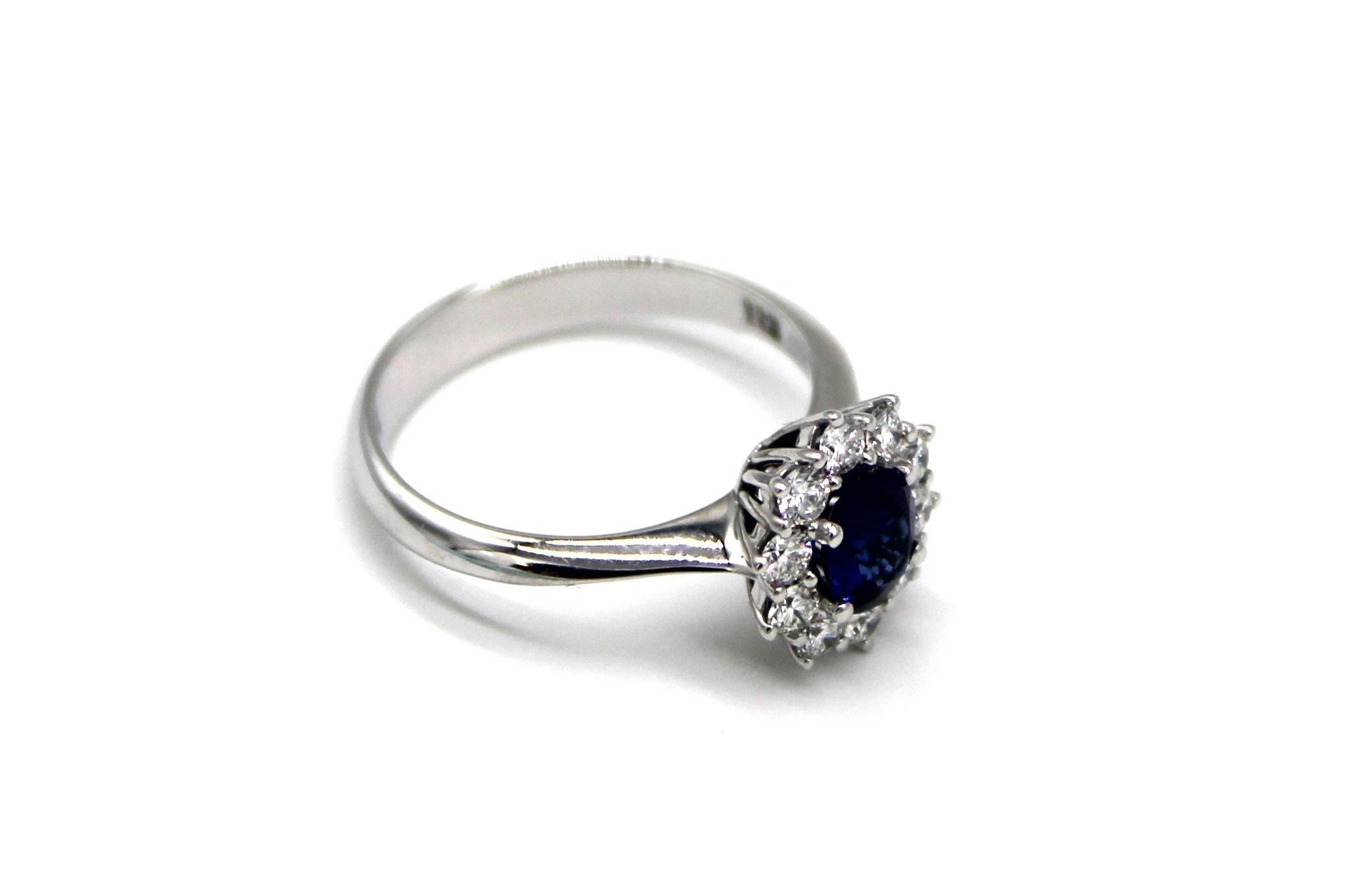 Vacker haloring i 18K vitguld med äkta safir och diamanter (1,17ctv, stl 16,8mm) Till auktionen på Tradera →