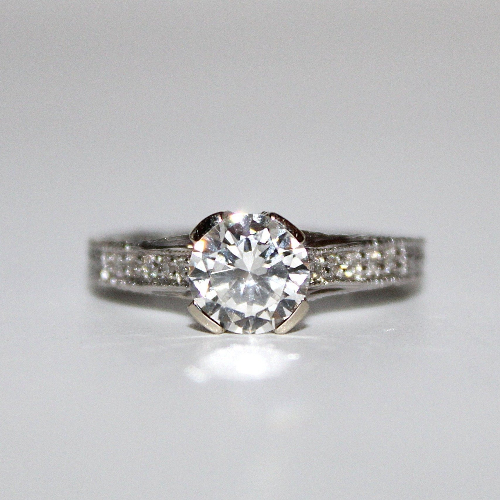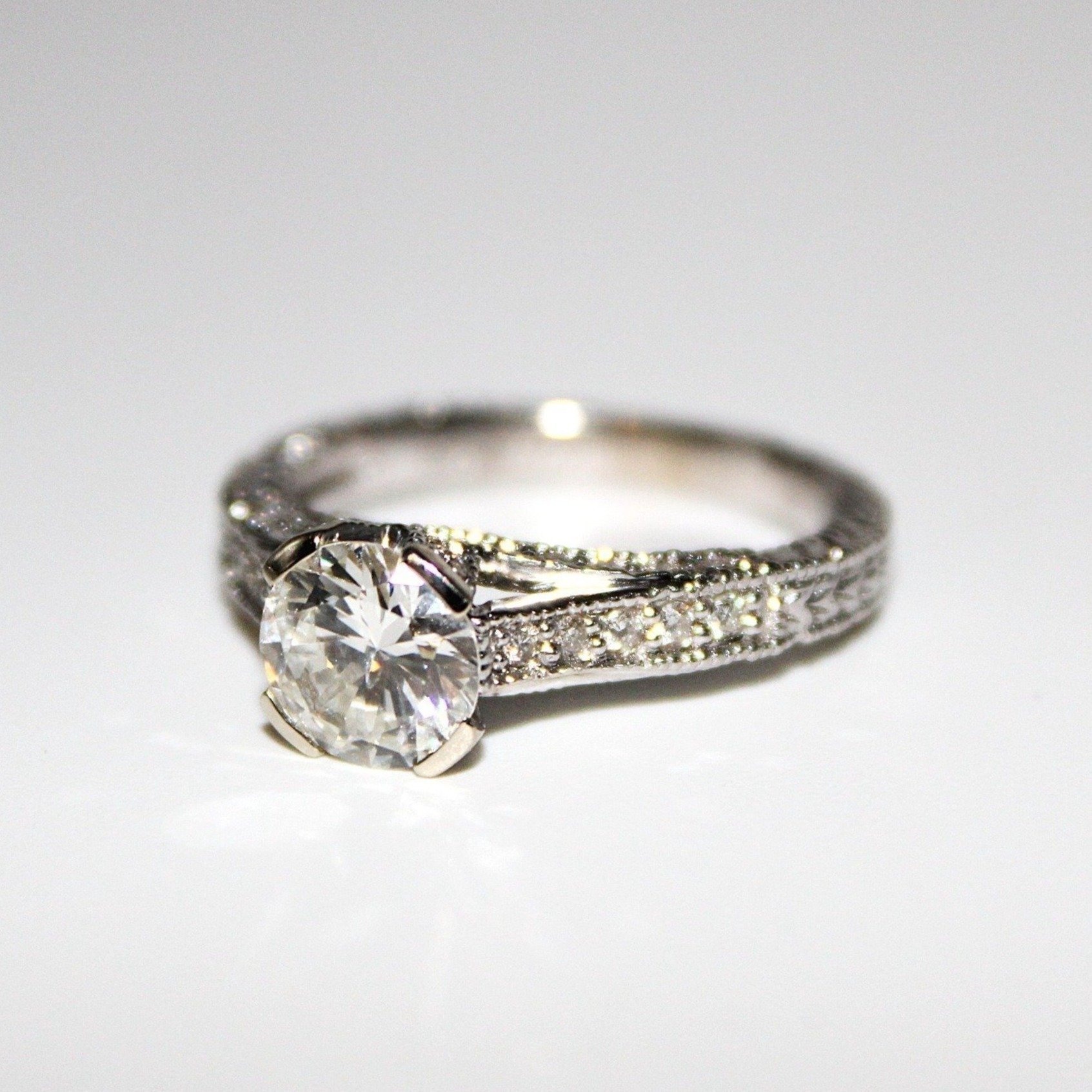 Vacker solitär/-sidostensring i 18K vitguld med äkta diamanter (1,8ct, stl 16mm) Till auktionen på Tradera →