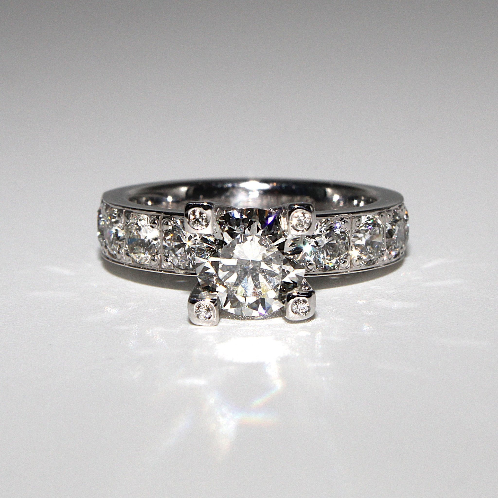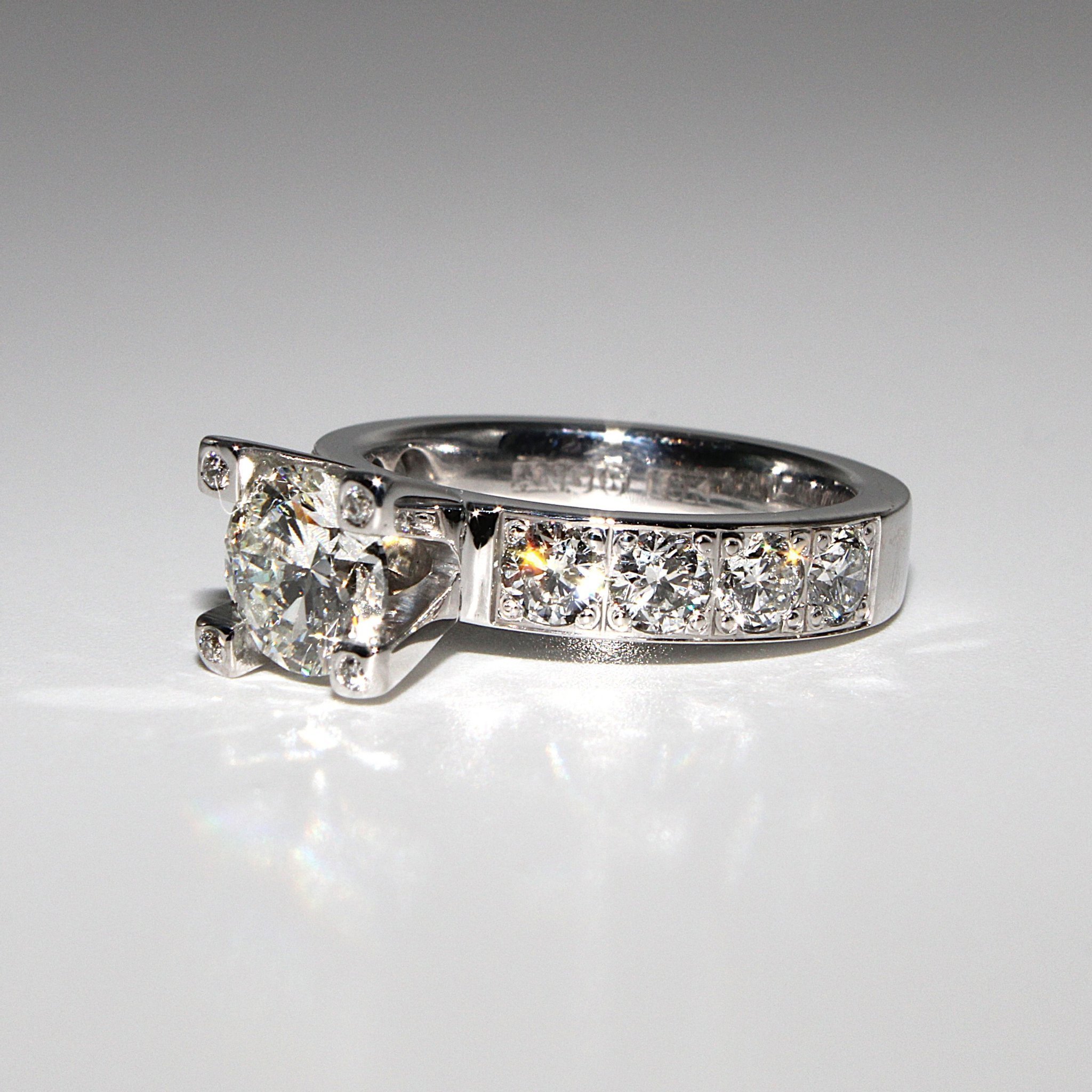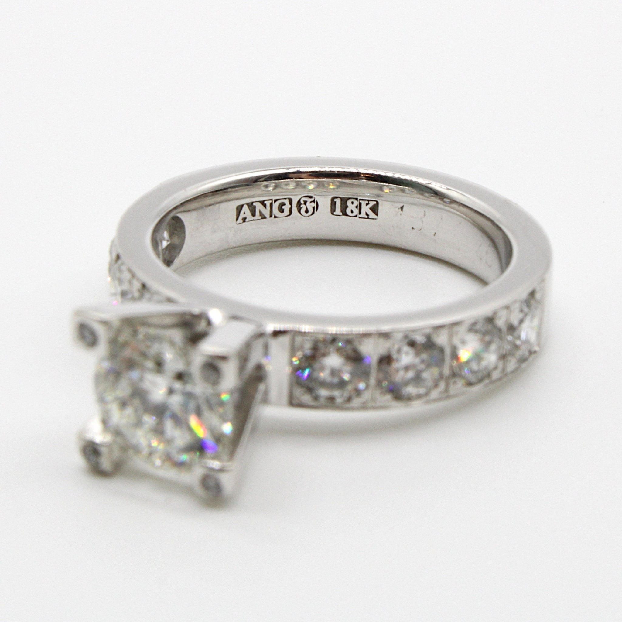 Vacker solitär-/sidostensring i 18K vitguld med diamanter (2,1ctv, stl 15,35mm)