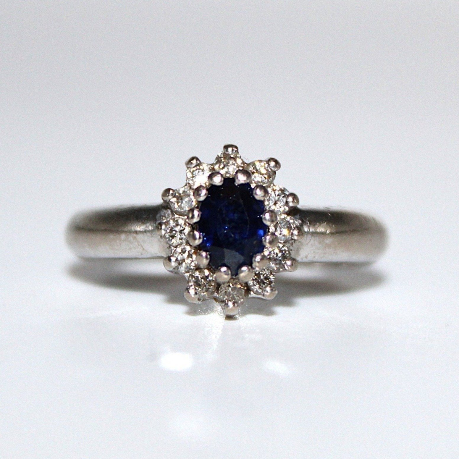 Vintage äkta safirring med diamanter i 18K vitguld (0,85ctv, stl 16,20mm) Till auktionen på Tradera →