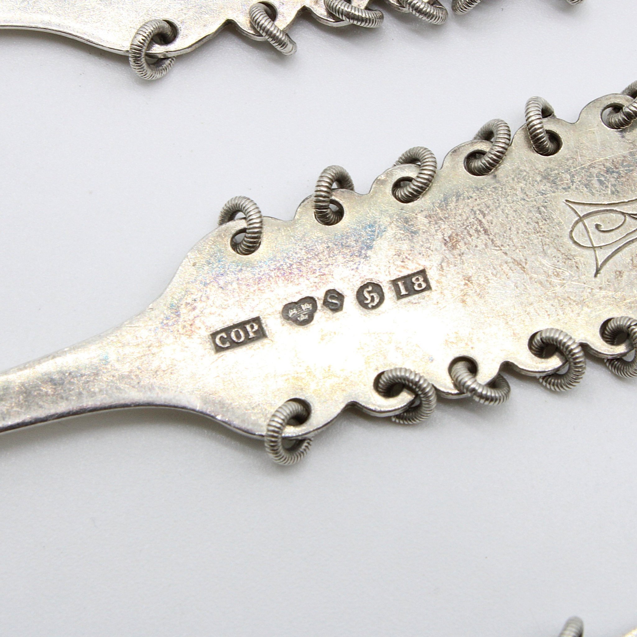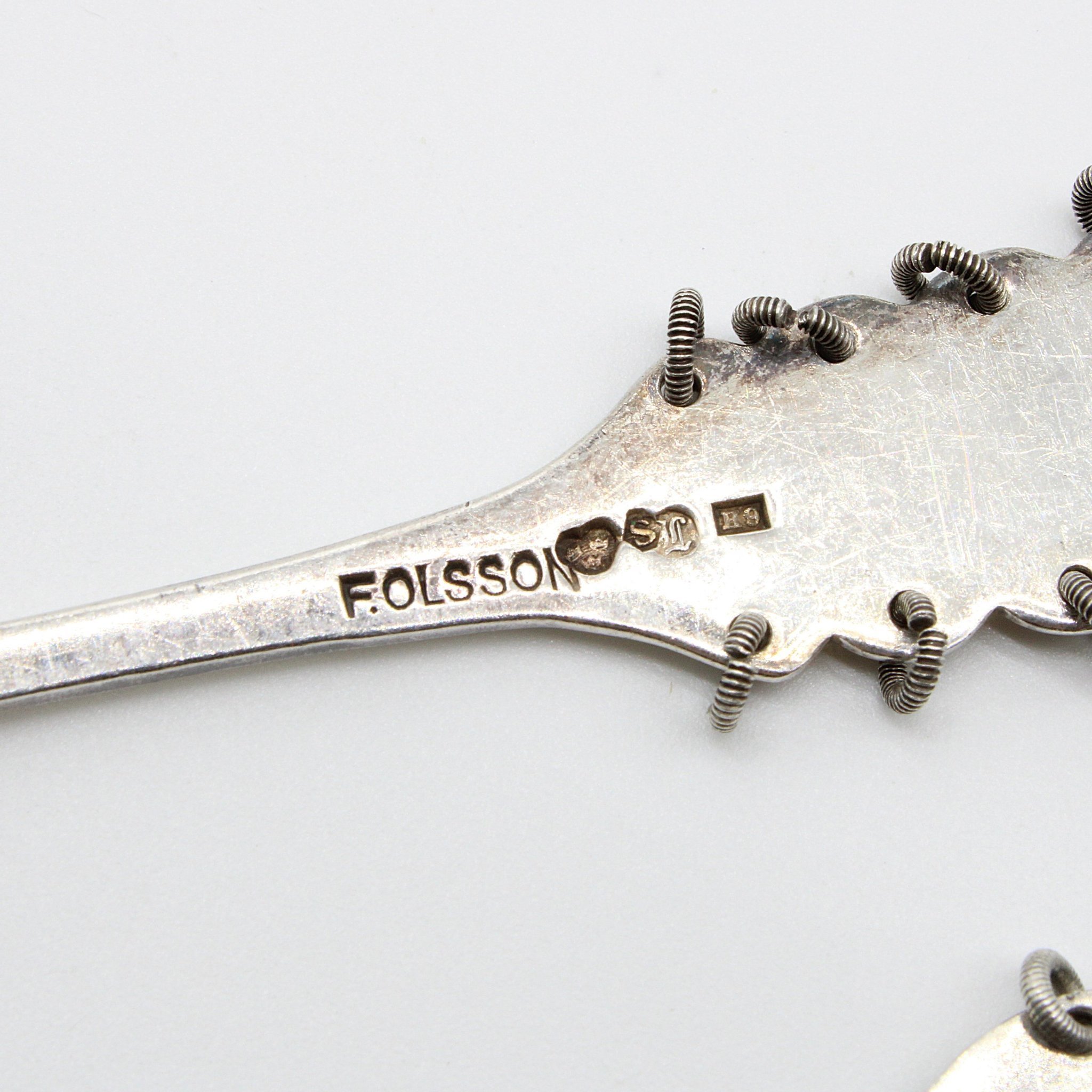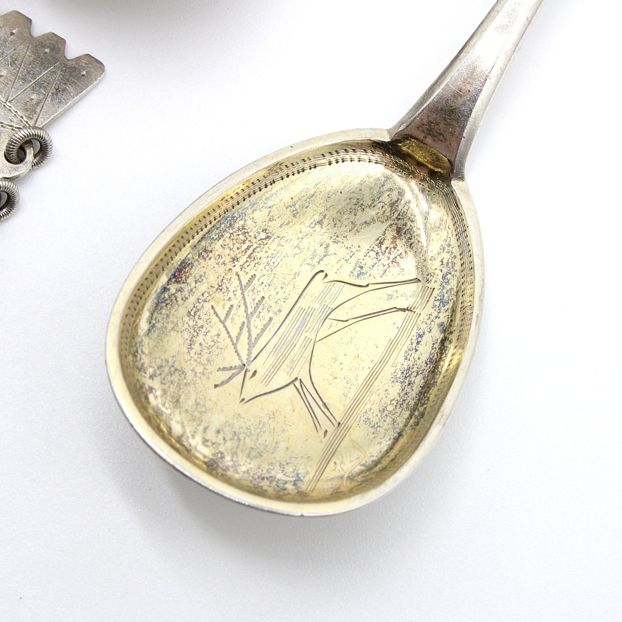 Vintage kaffeskedar (7 stycken) i 890 silver med samiskt motiv