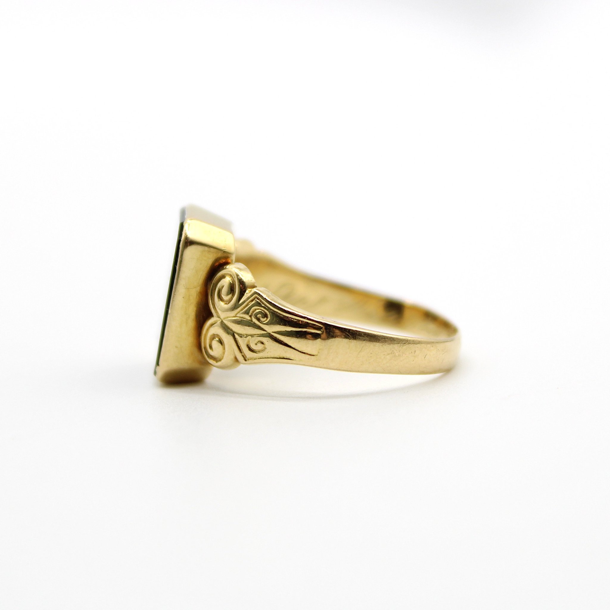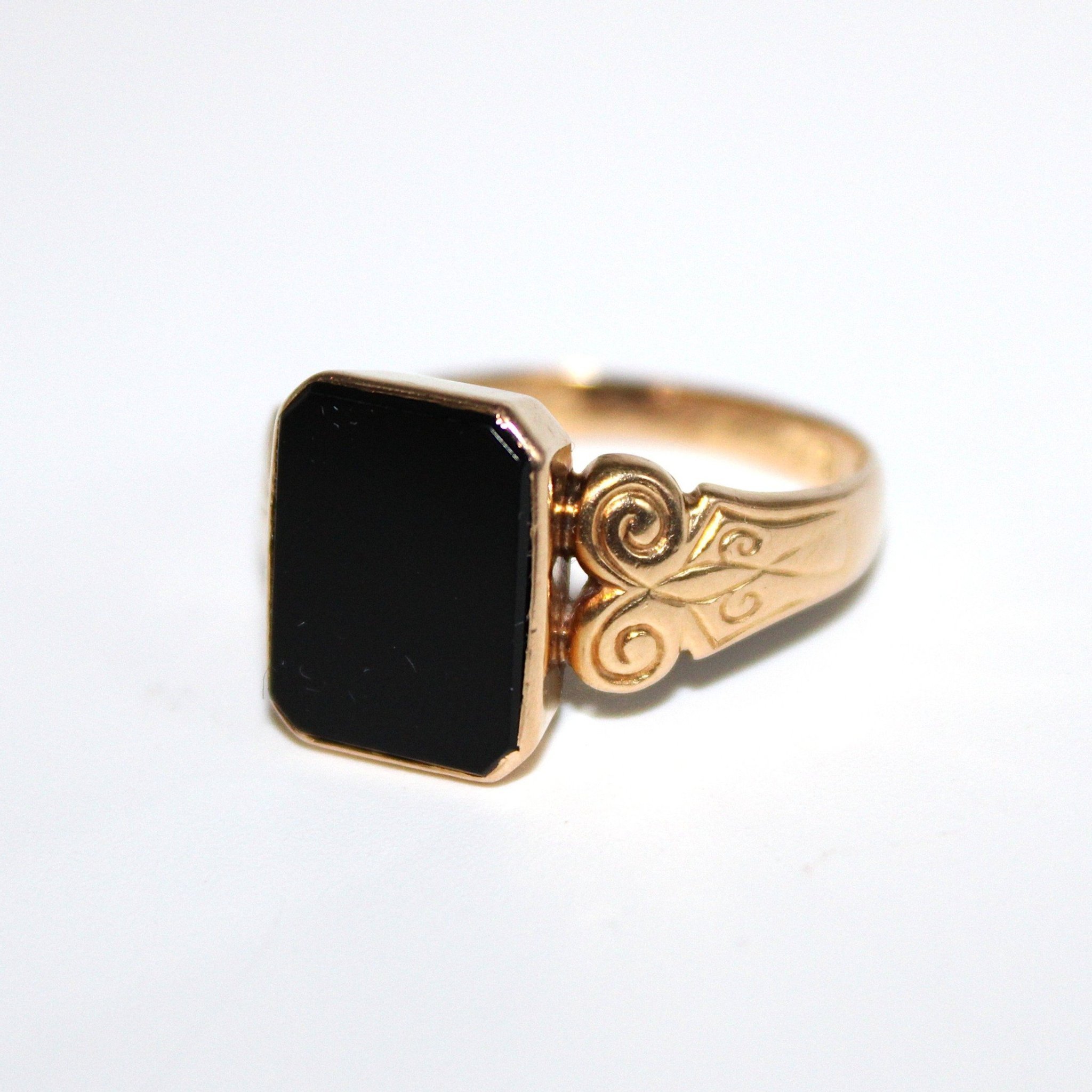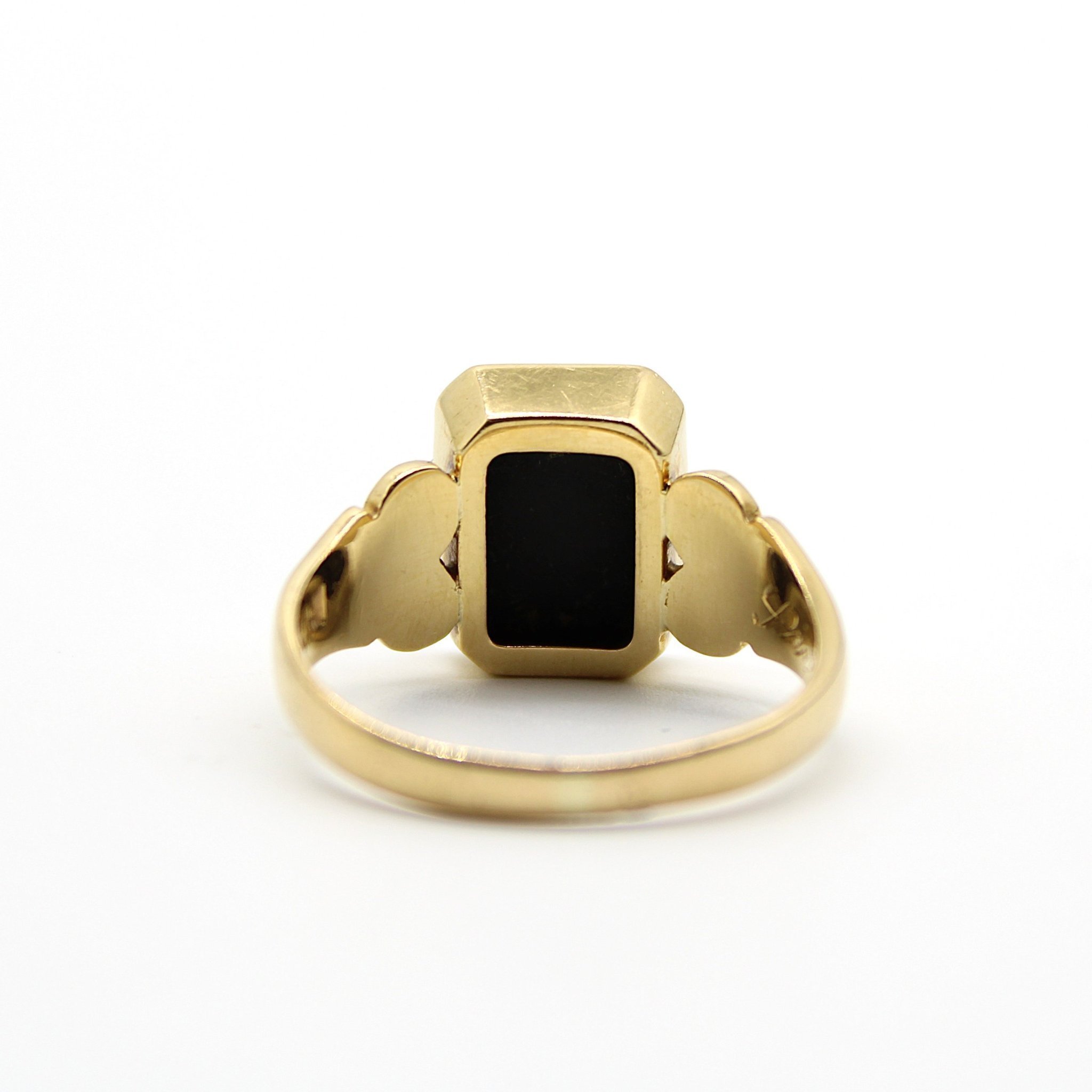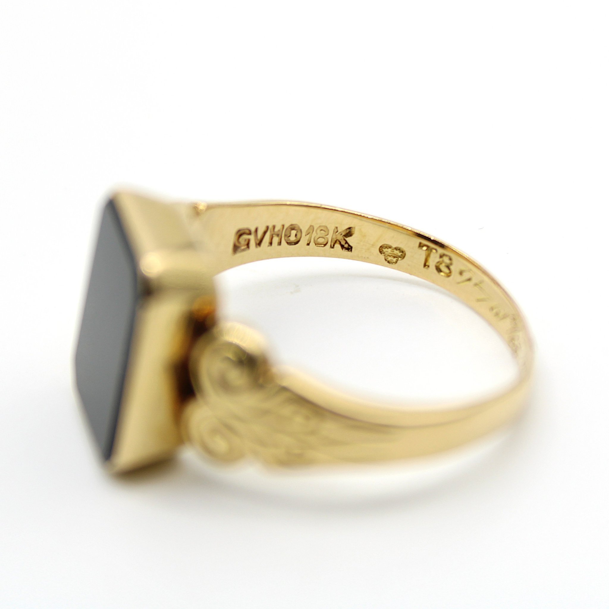 Vintage klackring i äkta 18K guld med svart sten (stl 19,4mm)