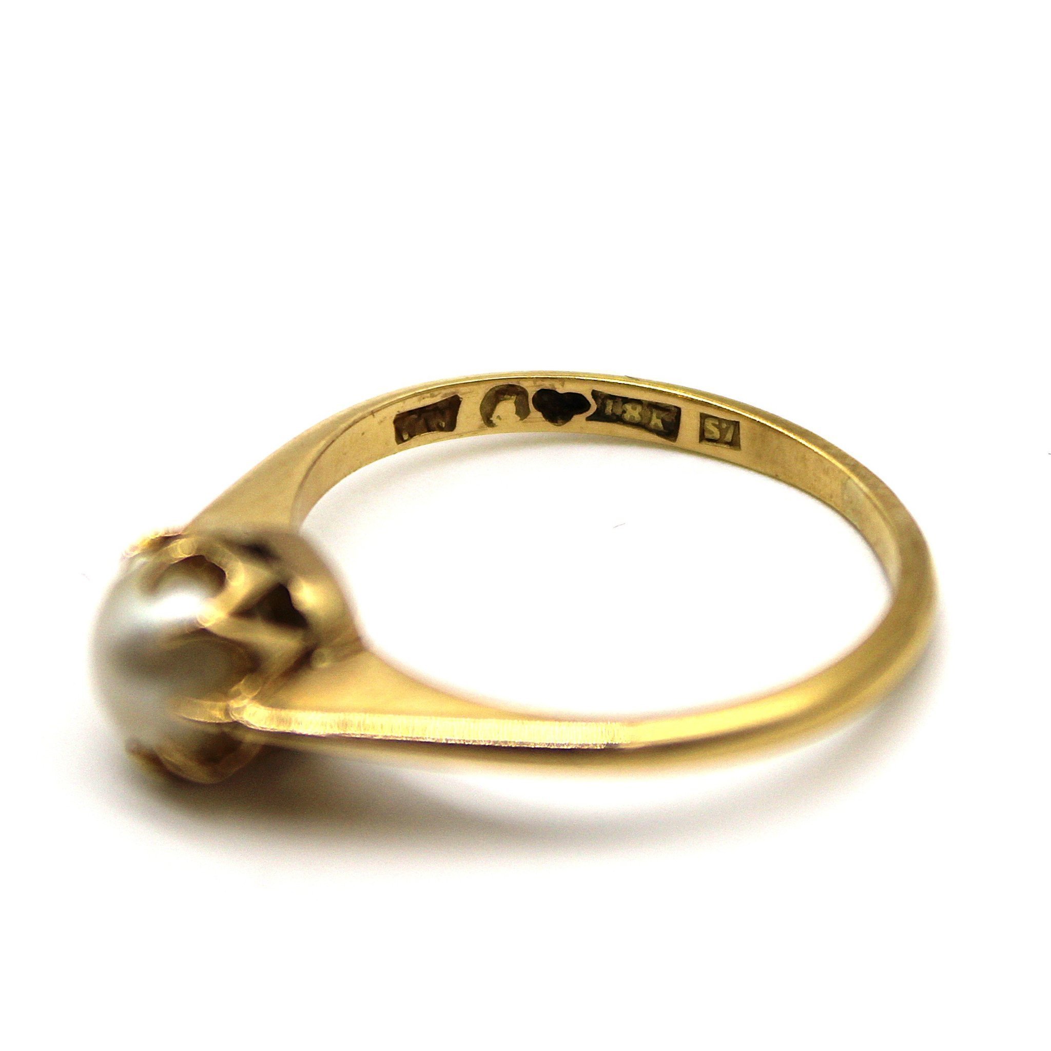 Vintage pärlring i äkta 18K guld (stl 15,85mm)