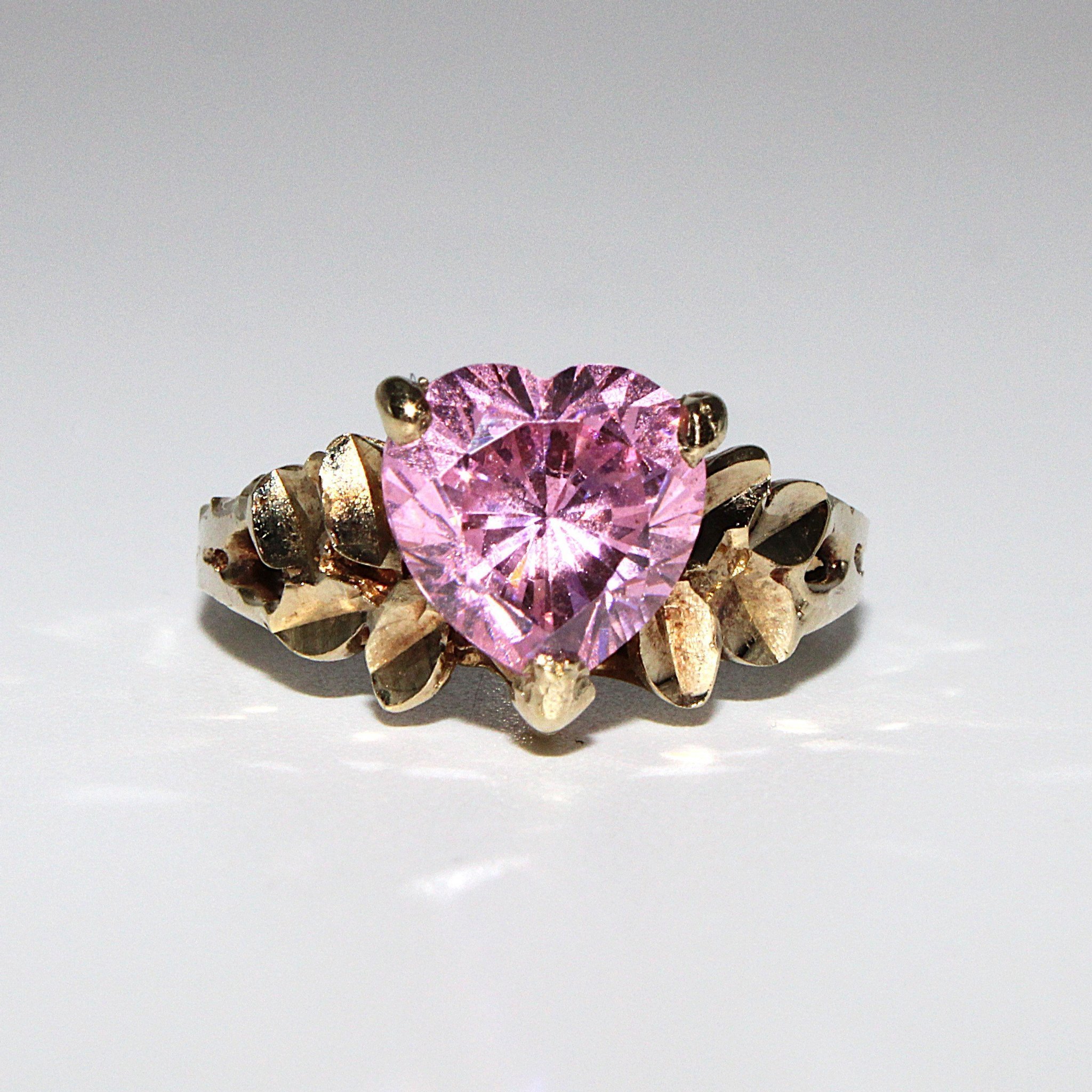 Vintage ring i 9K guld med fin rosa sten (1,71ctv, stl 18,05mm)