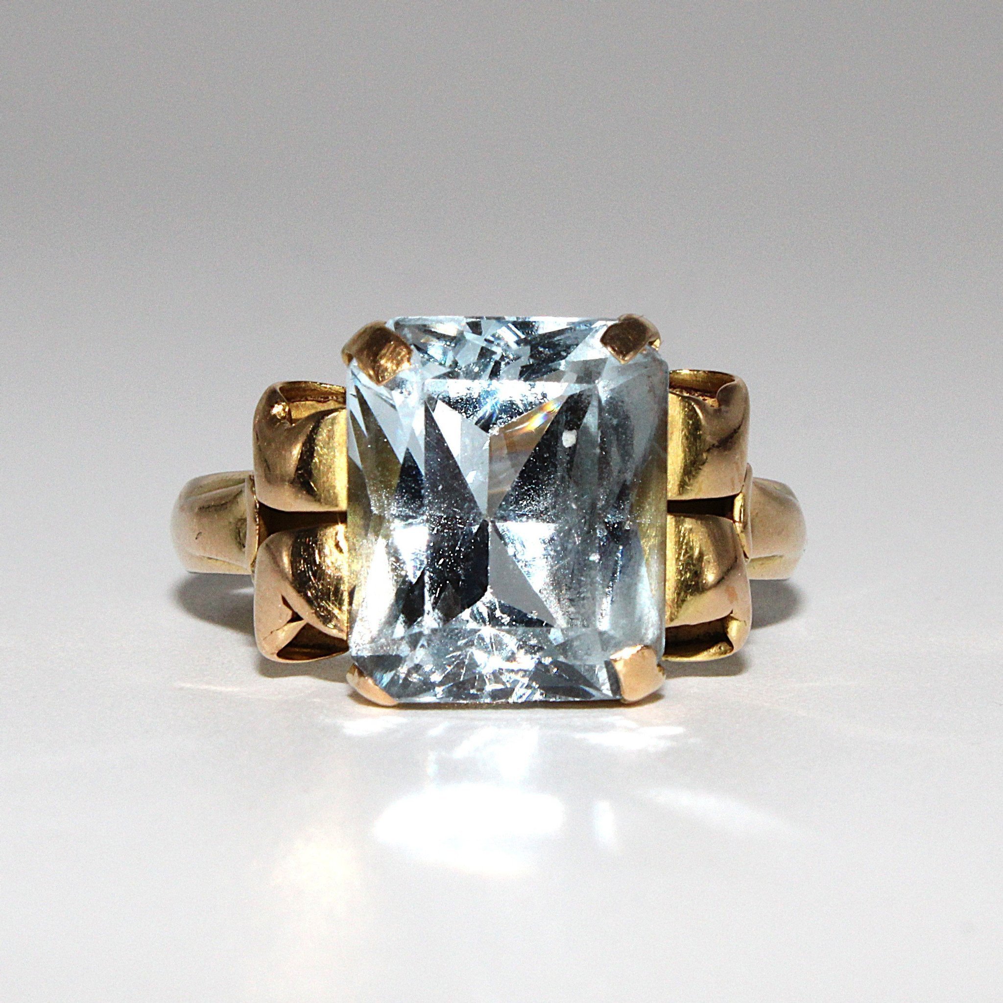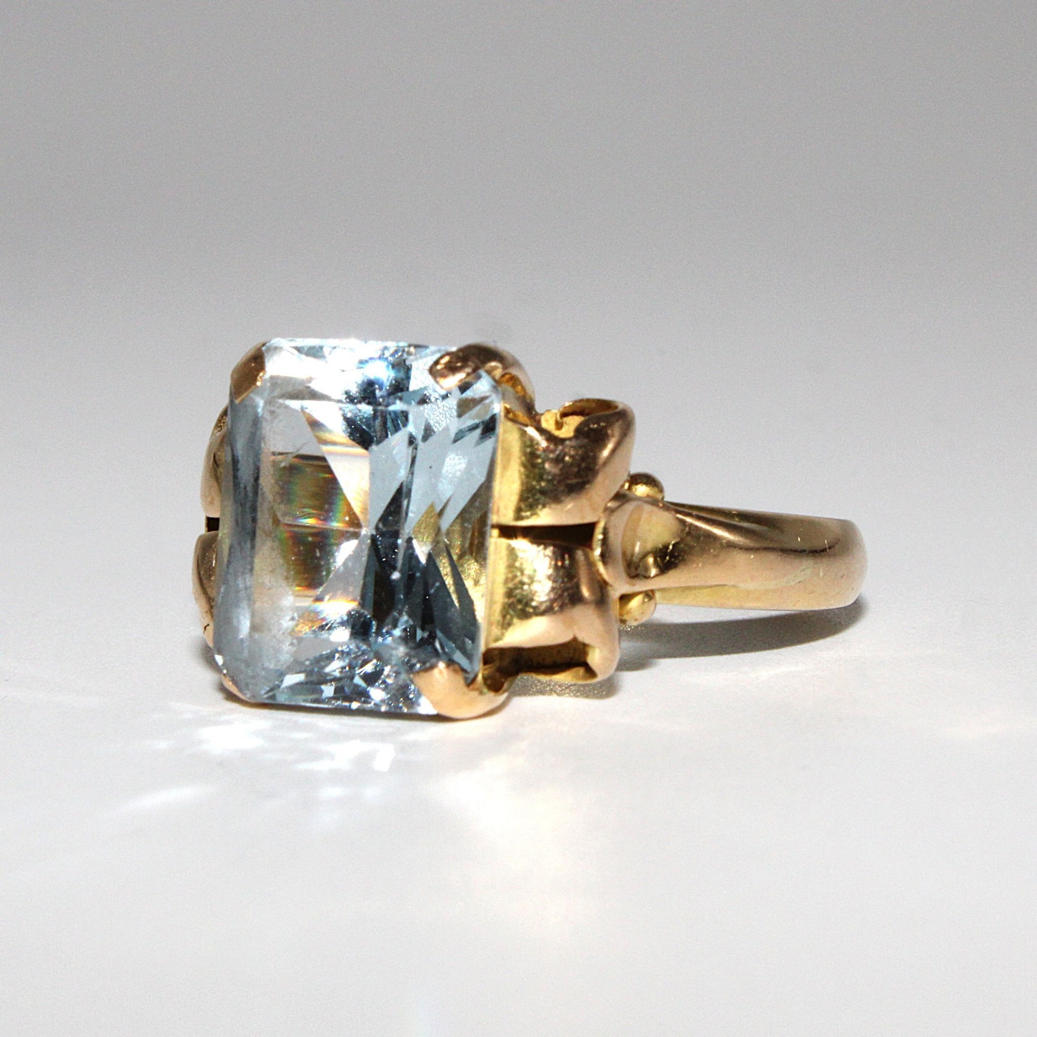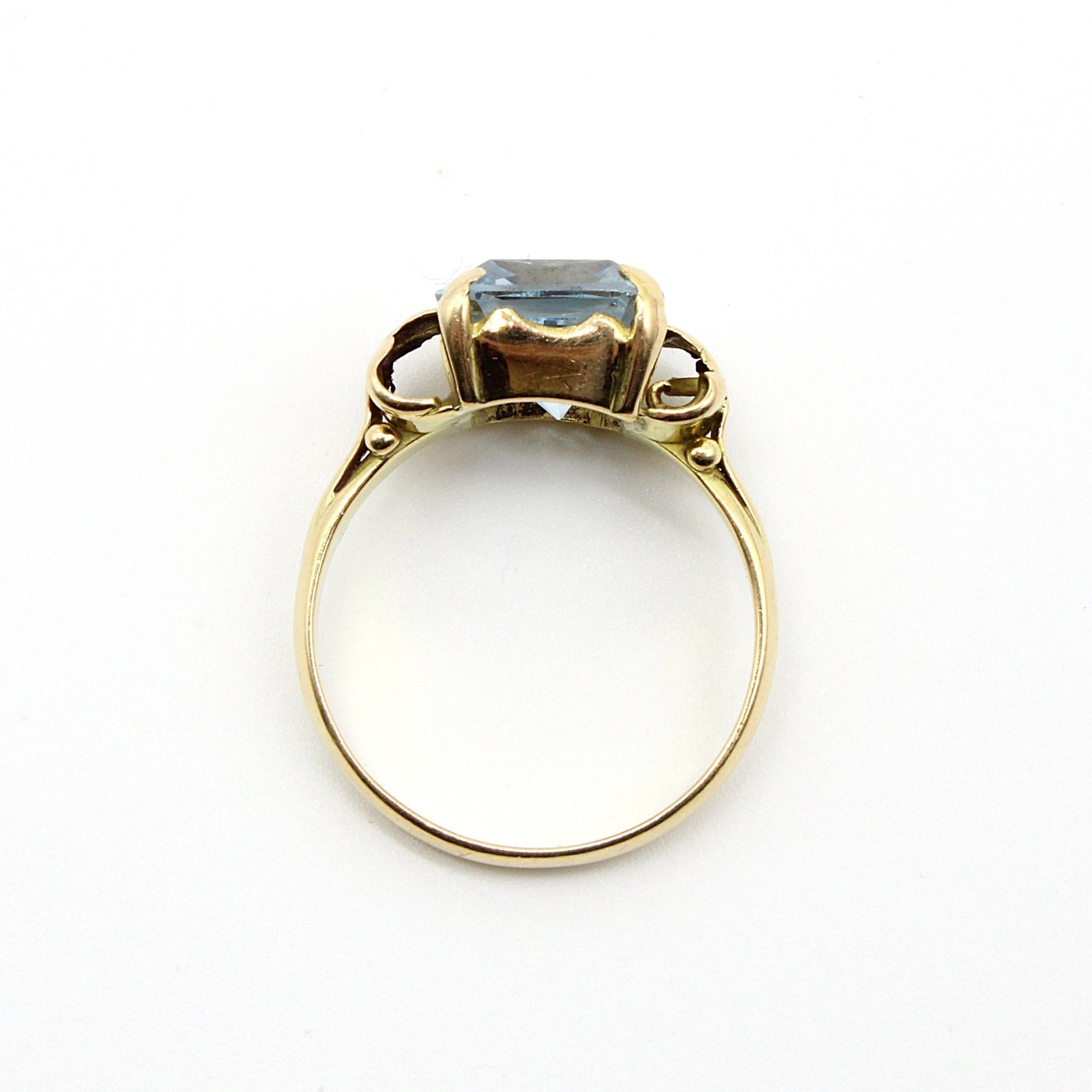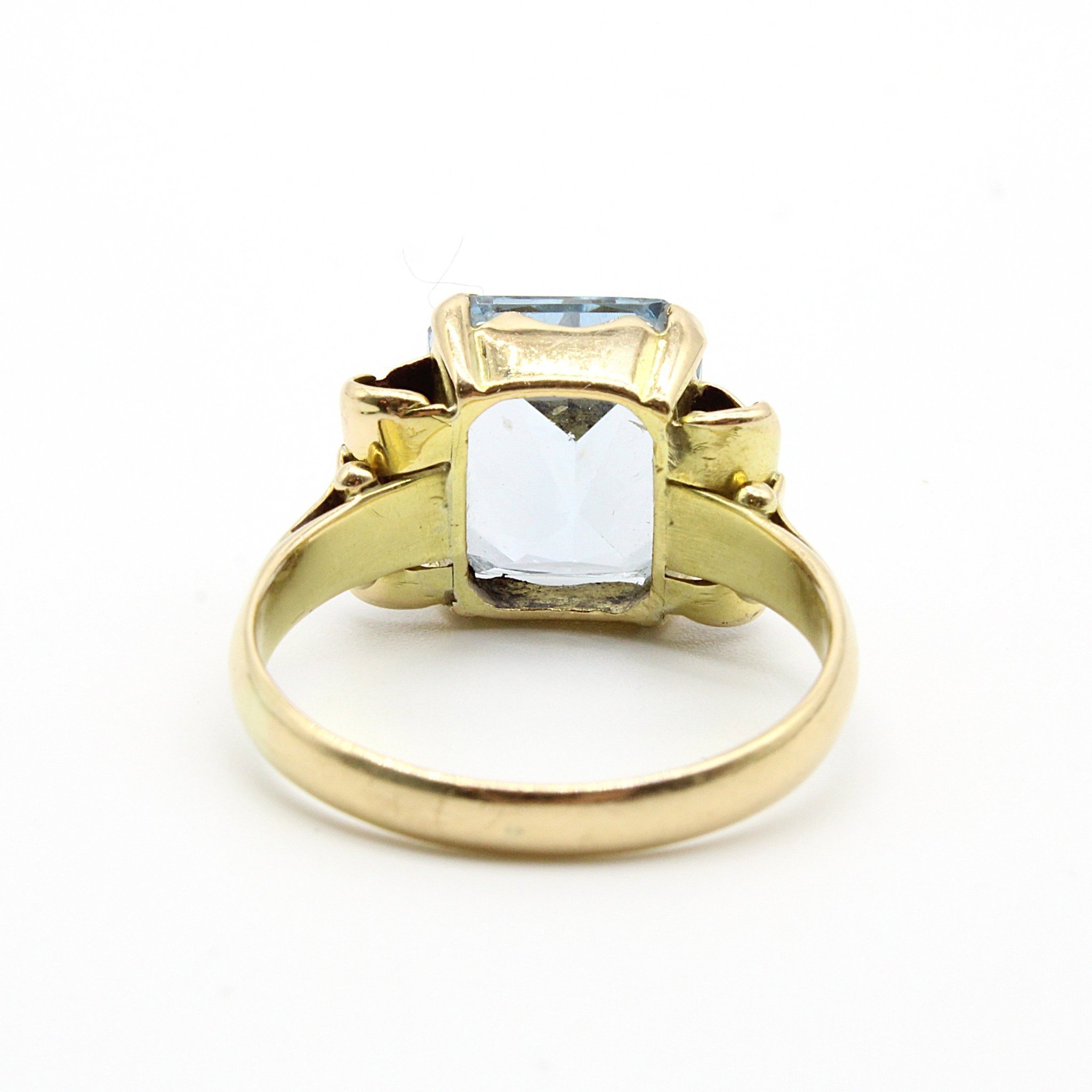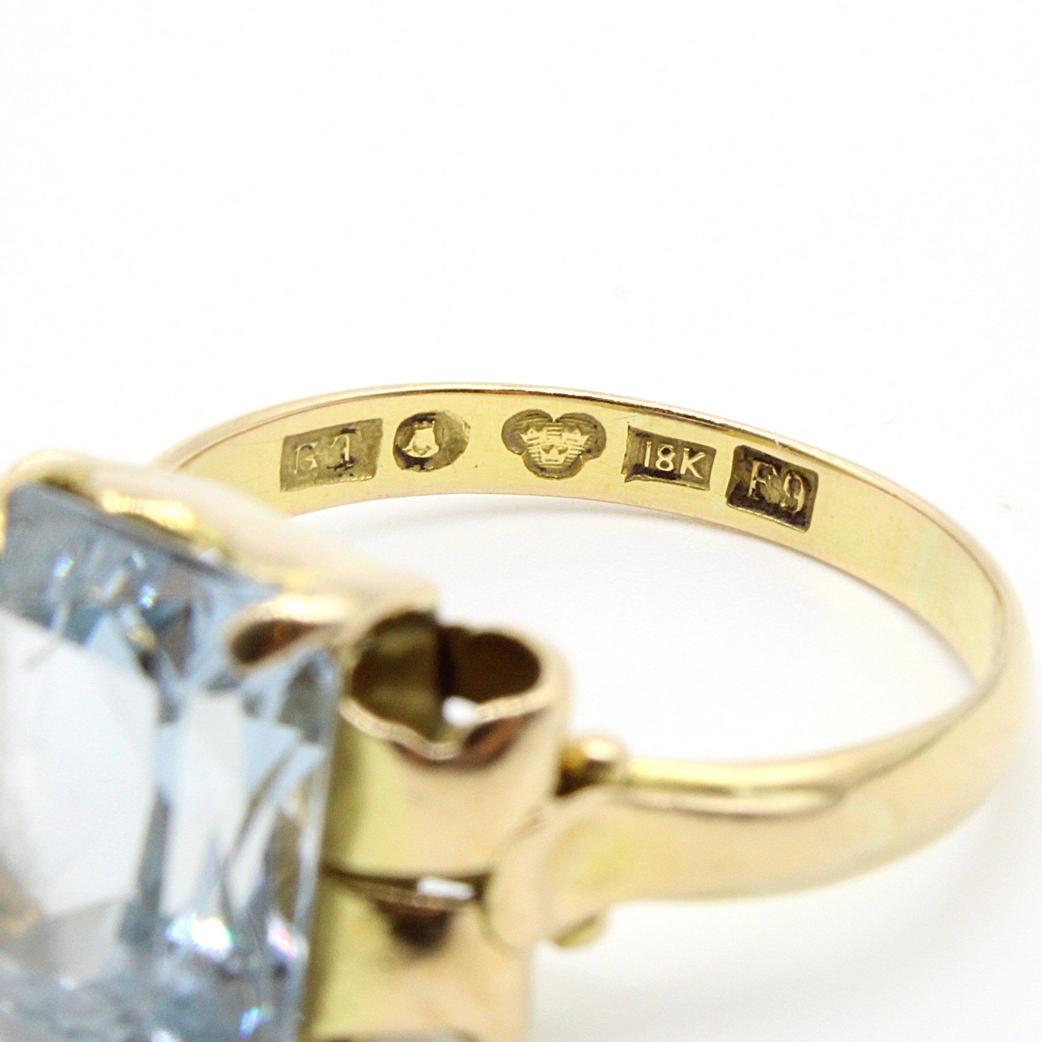 Vintage ring i äkta 18K guld med blå sten (6,8ctv, stl 19,5mm)