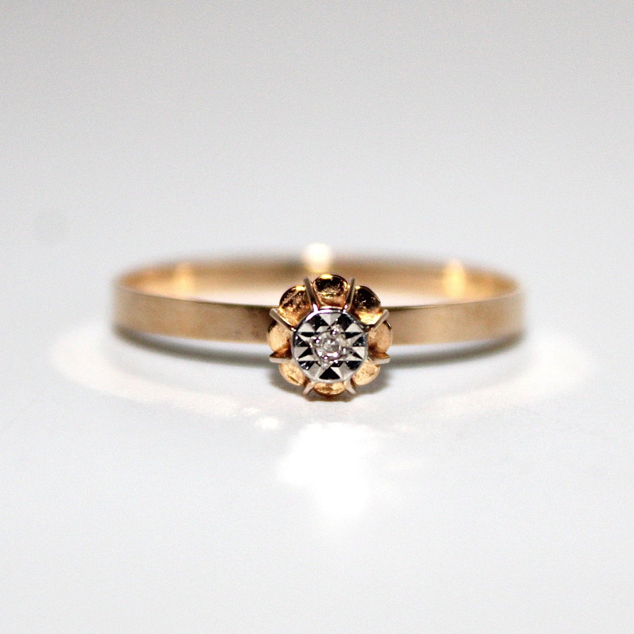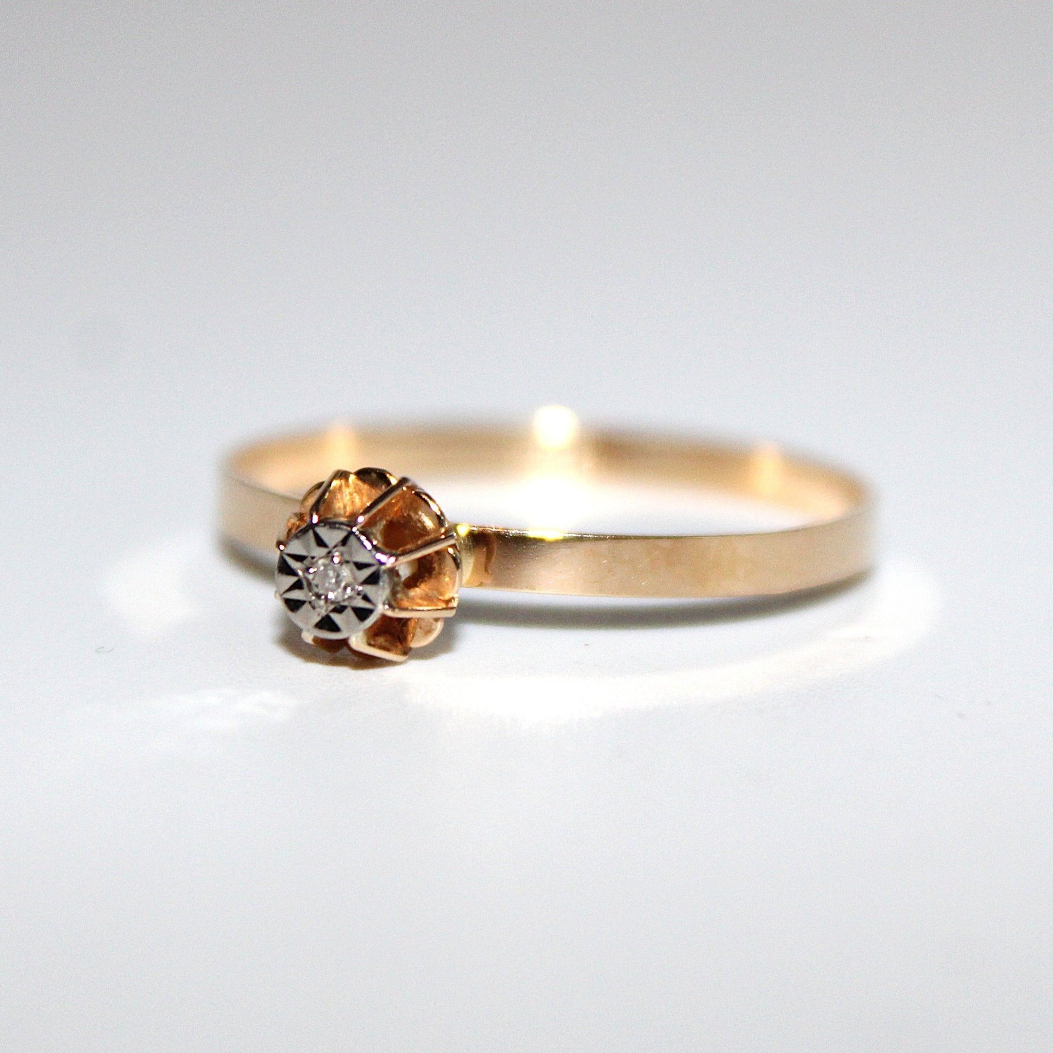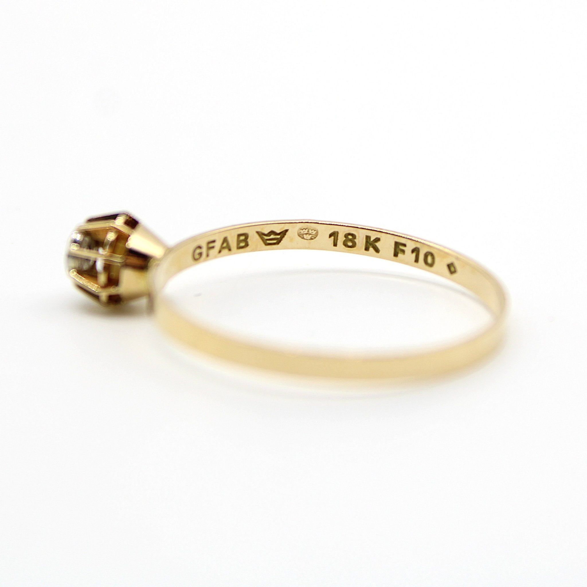 Vintage ring i äkta 18K guld med en liten diamant (0,01ctv, stl 18,9mm)