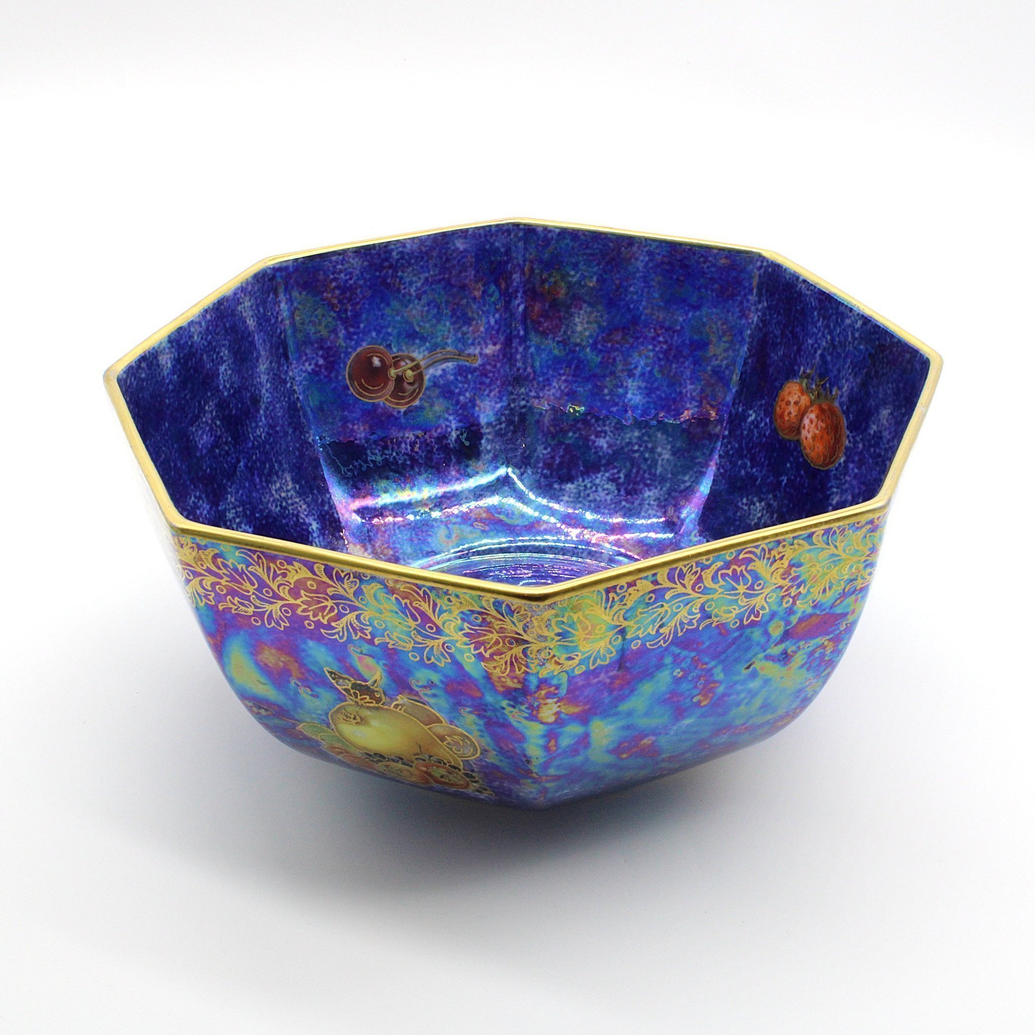 Vintage skål från Rosenthal i blå med guldfärgade detaljer, blom- och fruktmotiv