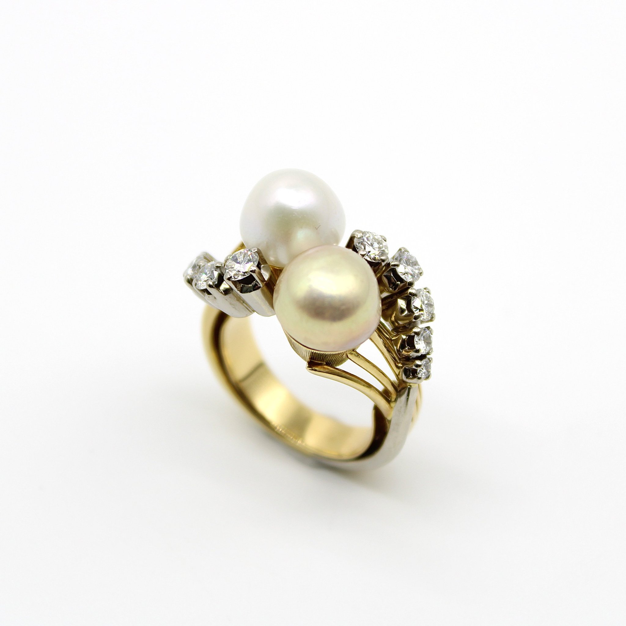 Statement ring i 18K guld med äkta diamanter och pärlor (0,6ctv, stl 16,75mm)