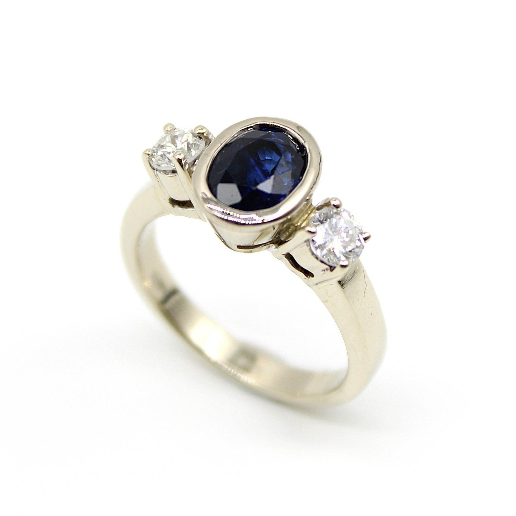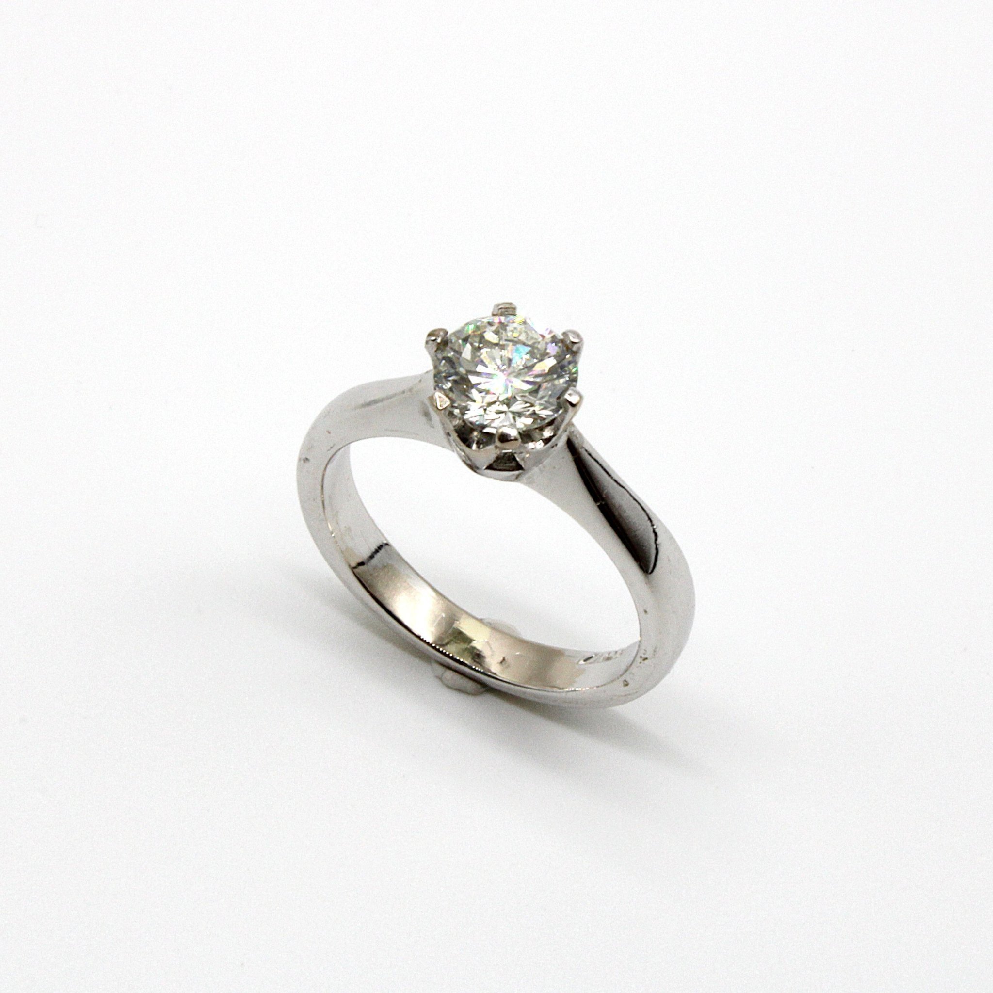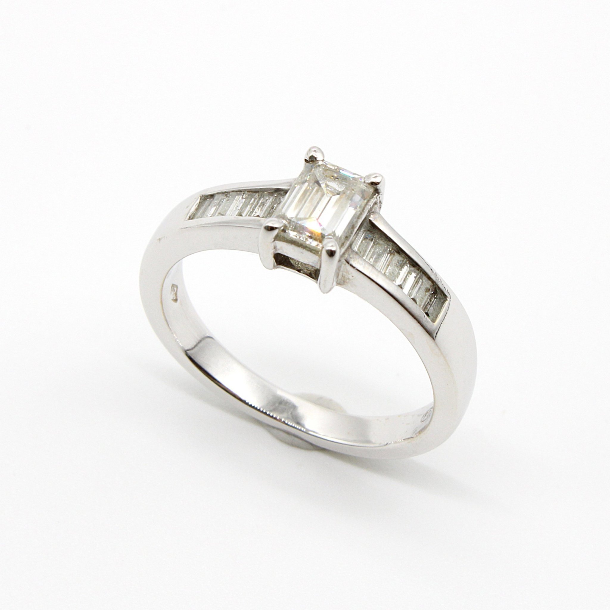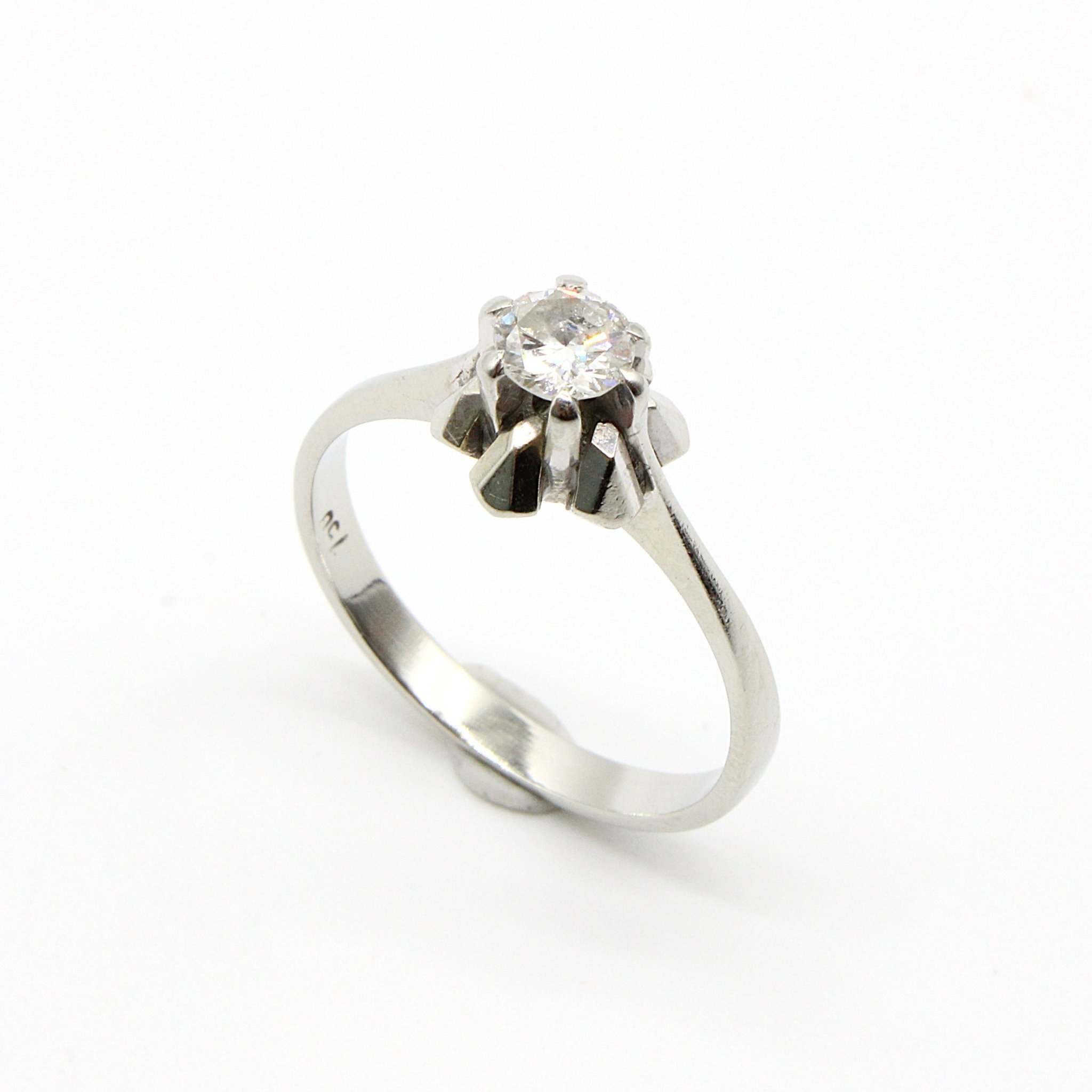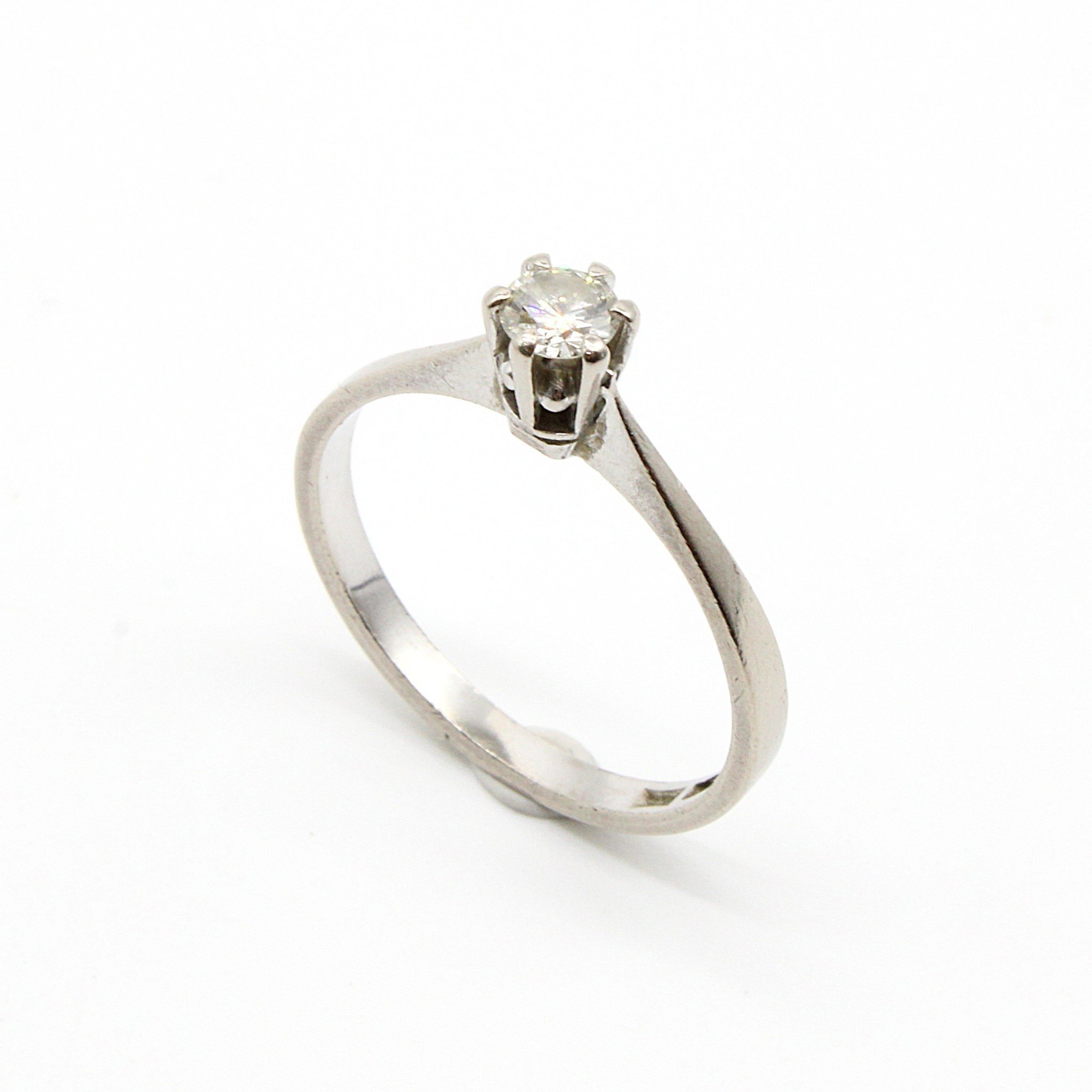 Vacker solitär-/sidostensring i 18K vitguld med diamanter (2,1ctv, stl 15,35mm)