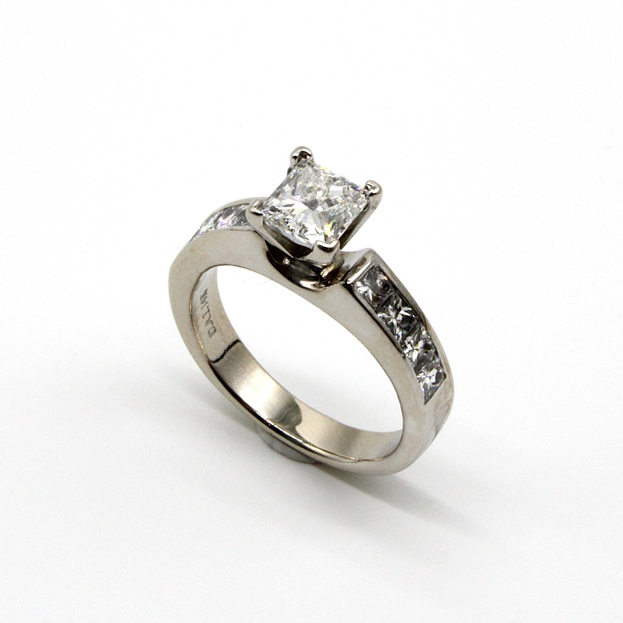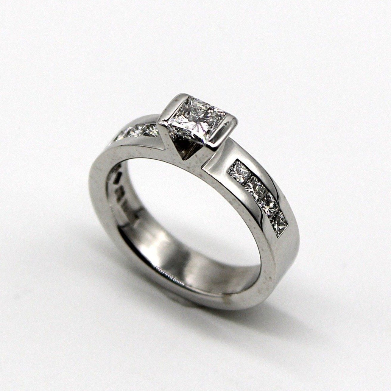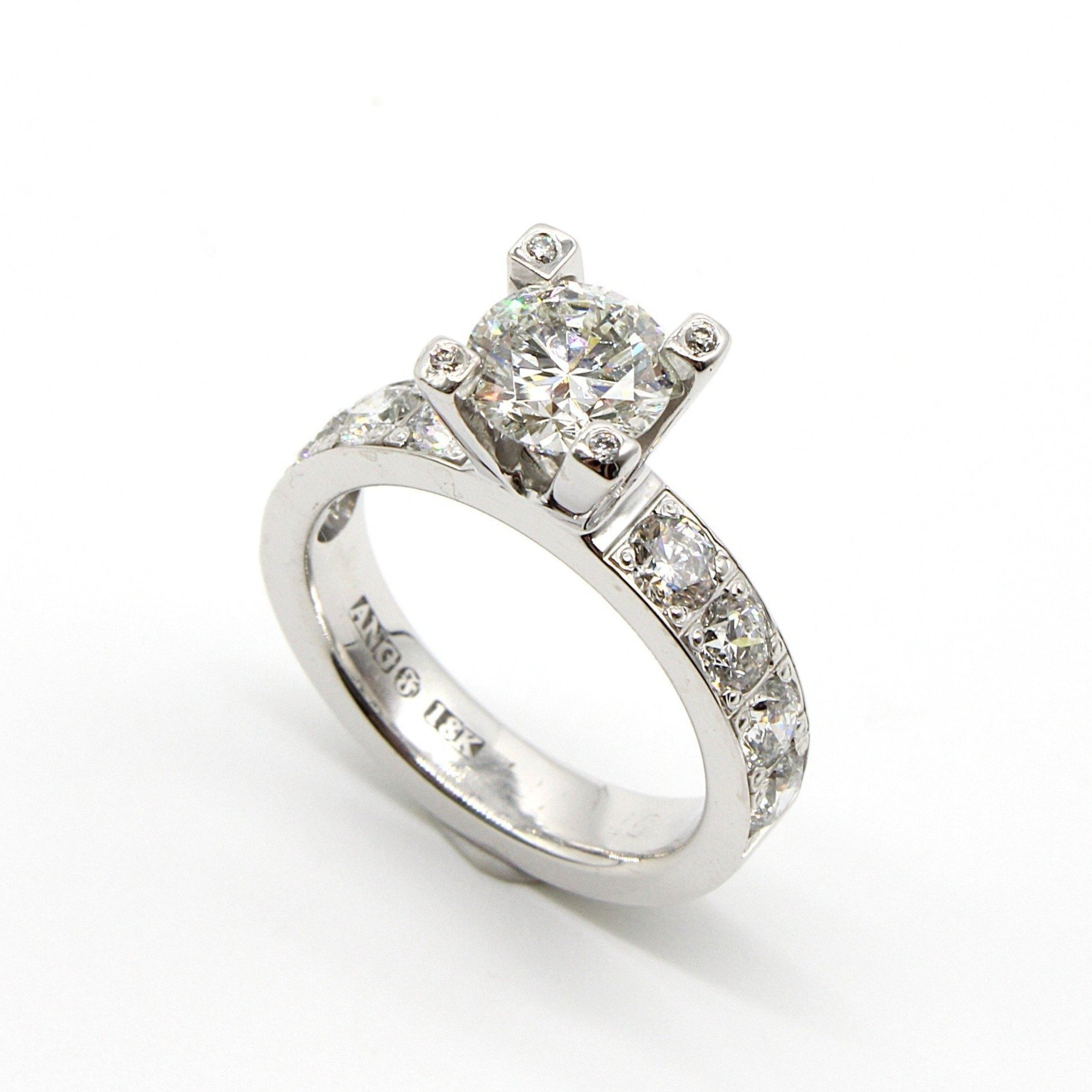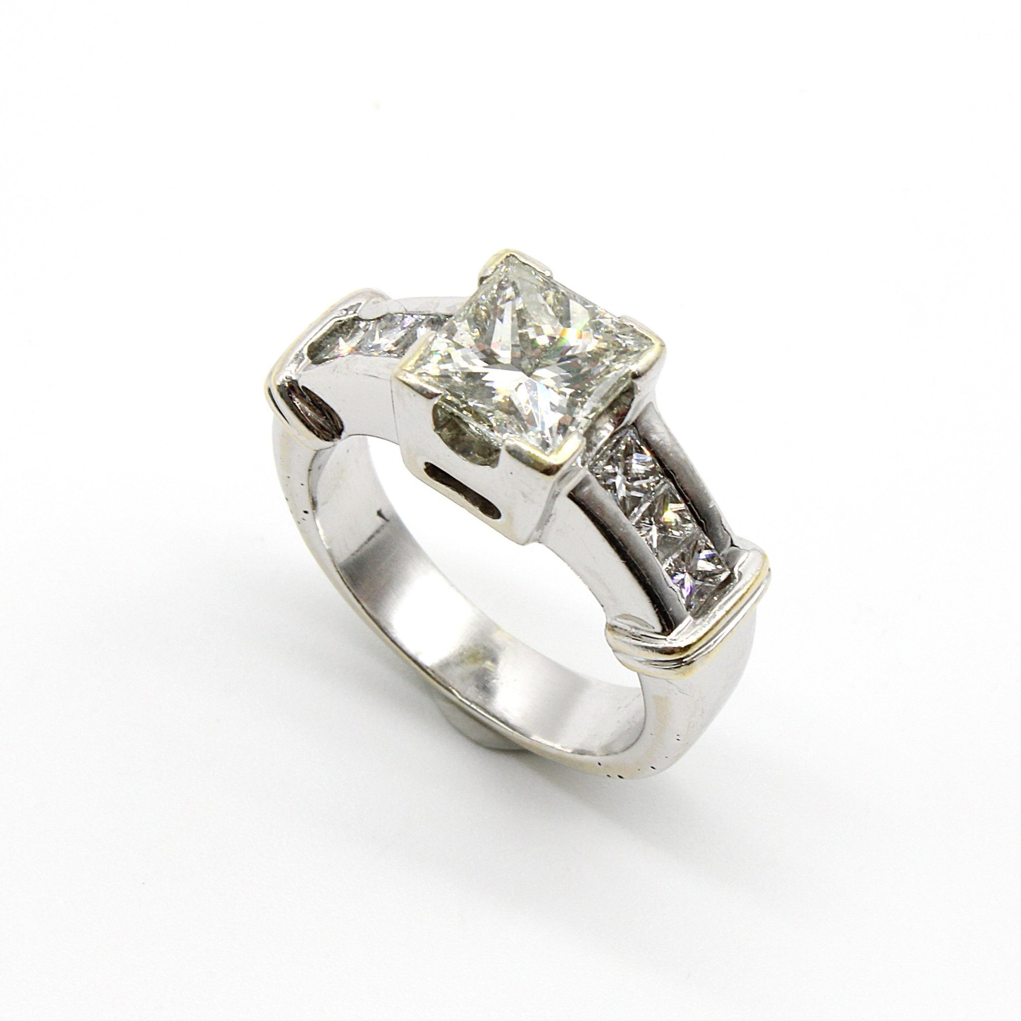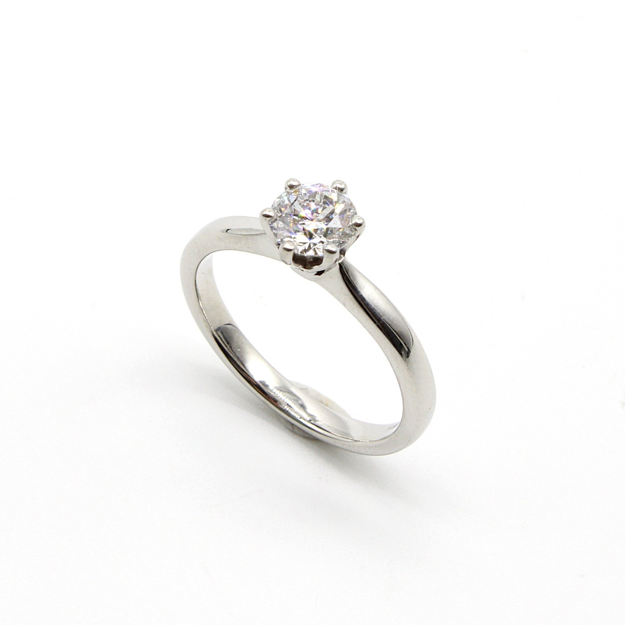 Vacker solitär-/sidostensring i 18K vitguld med diamanter (2,1ctv, stl 15,35mm)