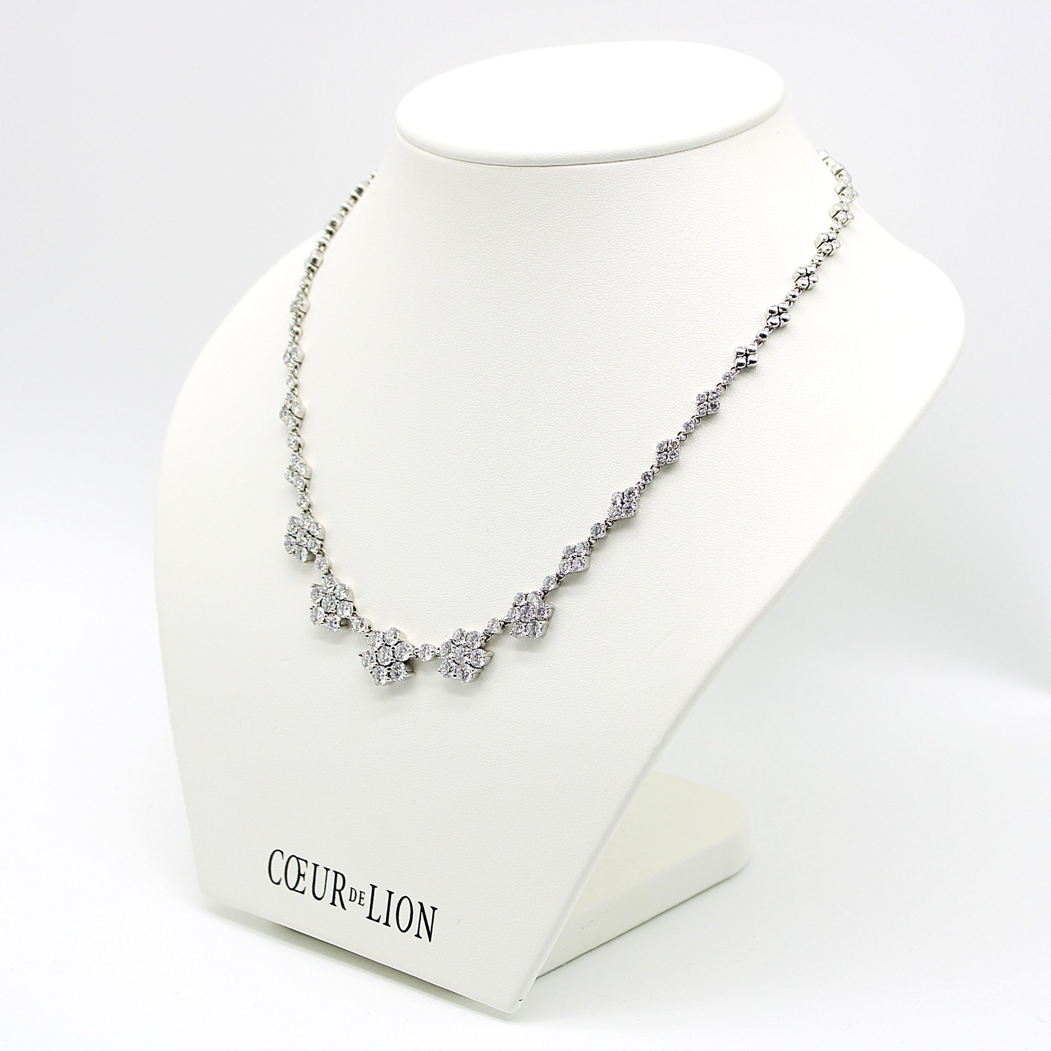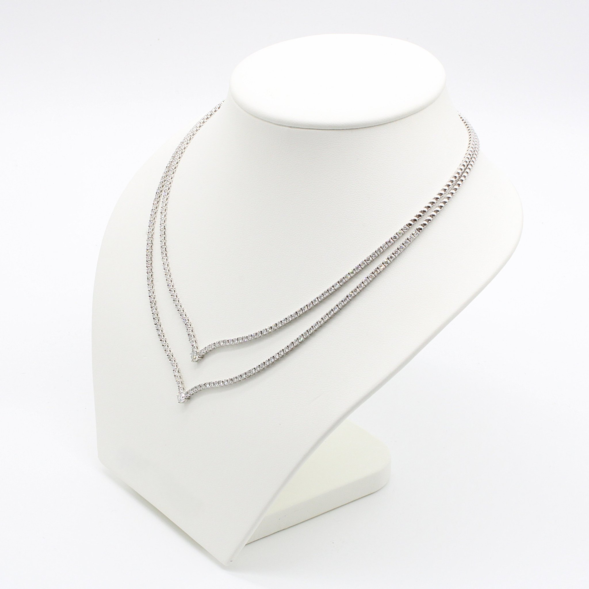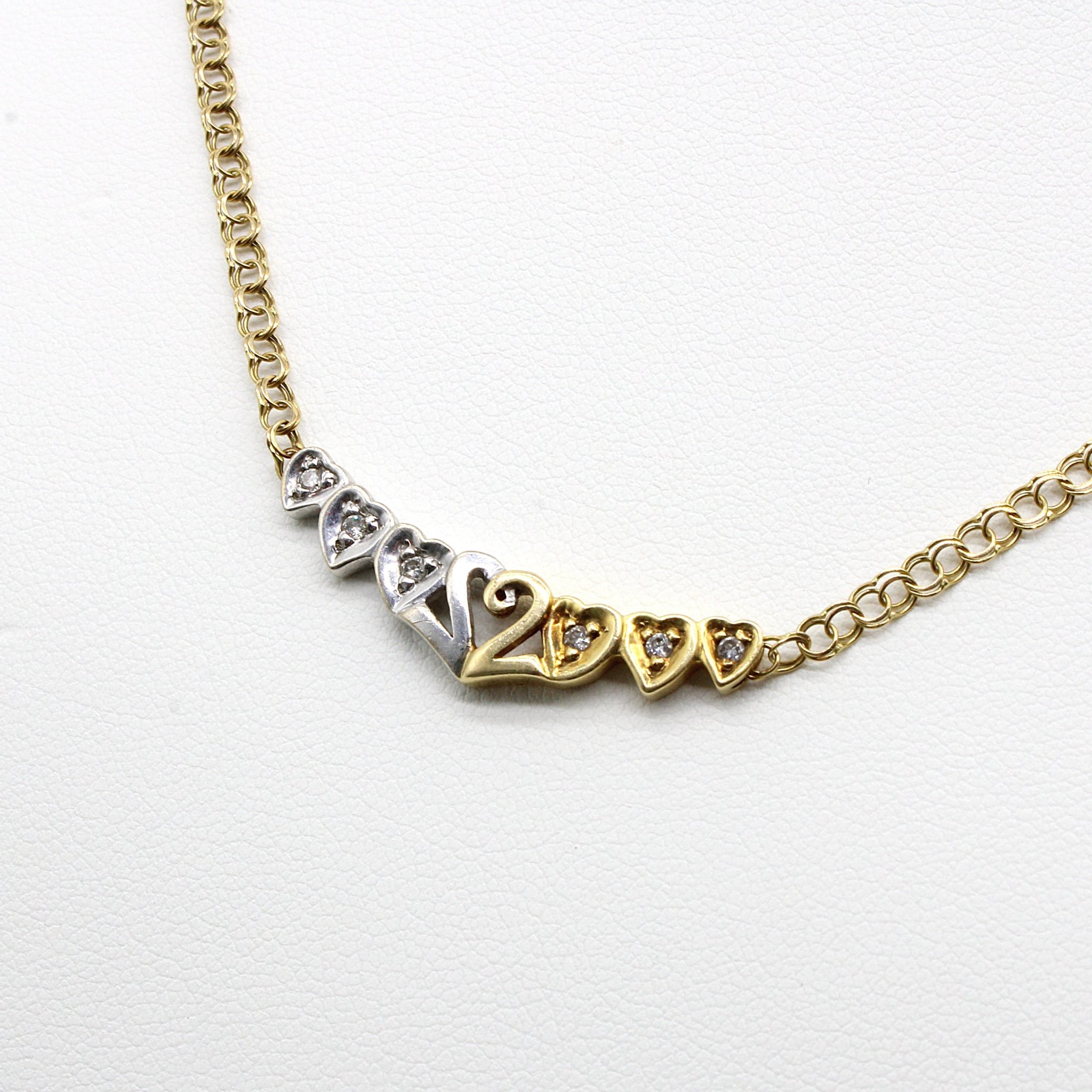 Halsband i 18K guld/vitguld med hjärtan och diamanter (0,09ctv, längd 42,5cm)