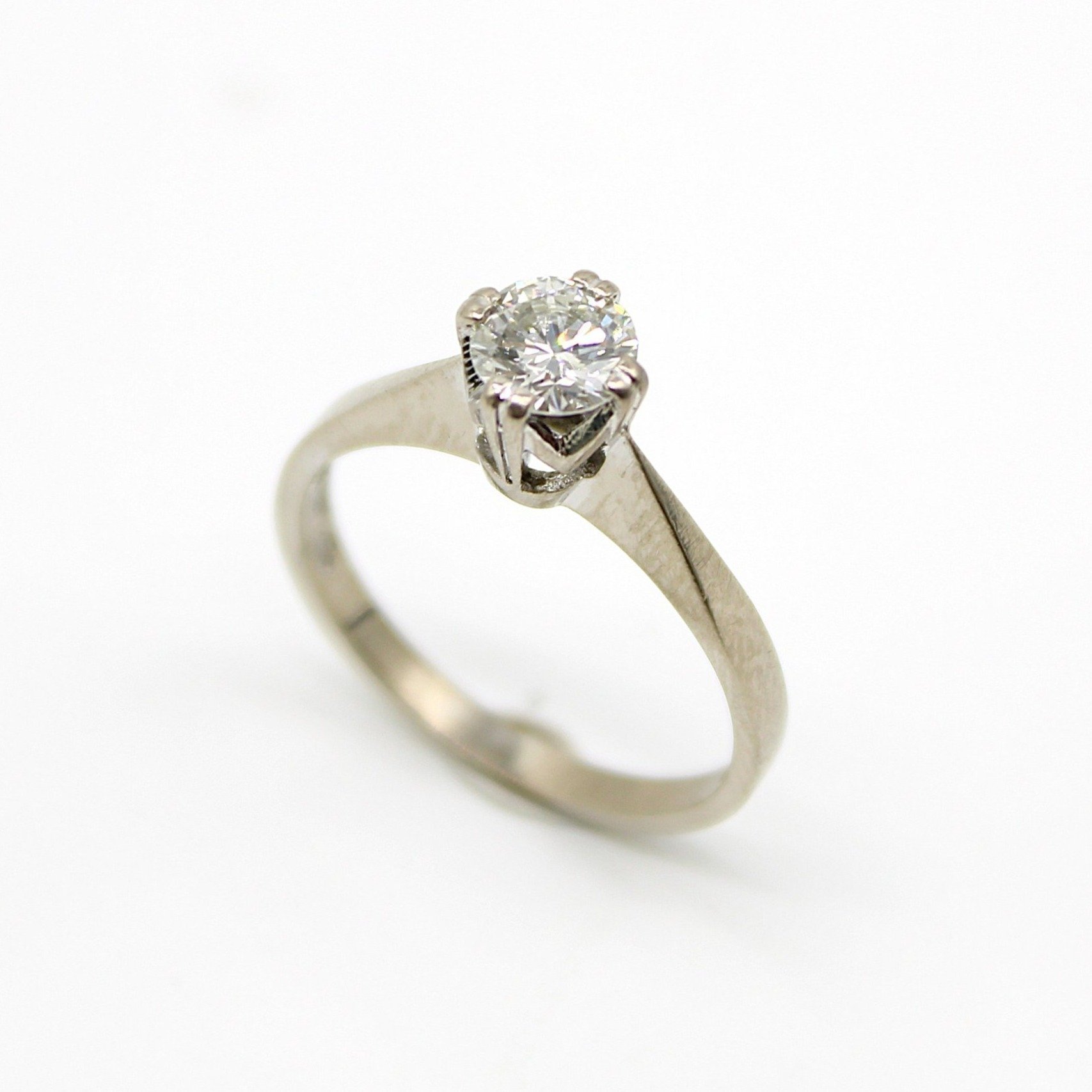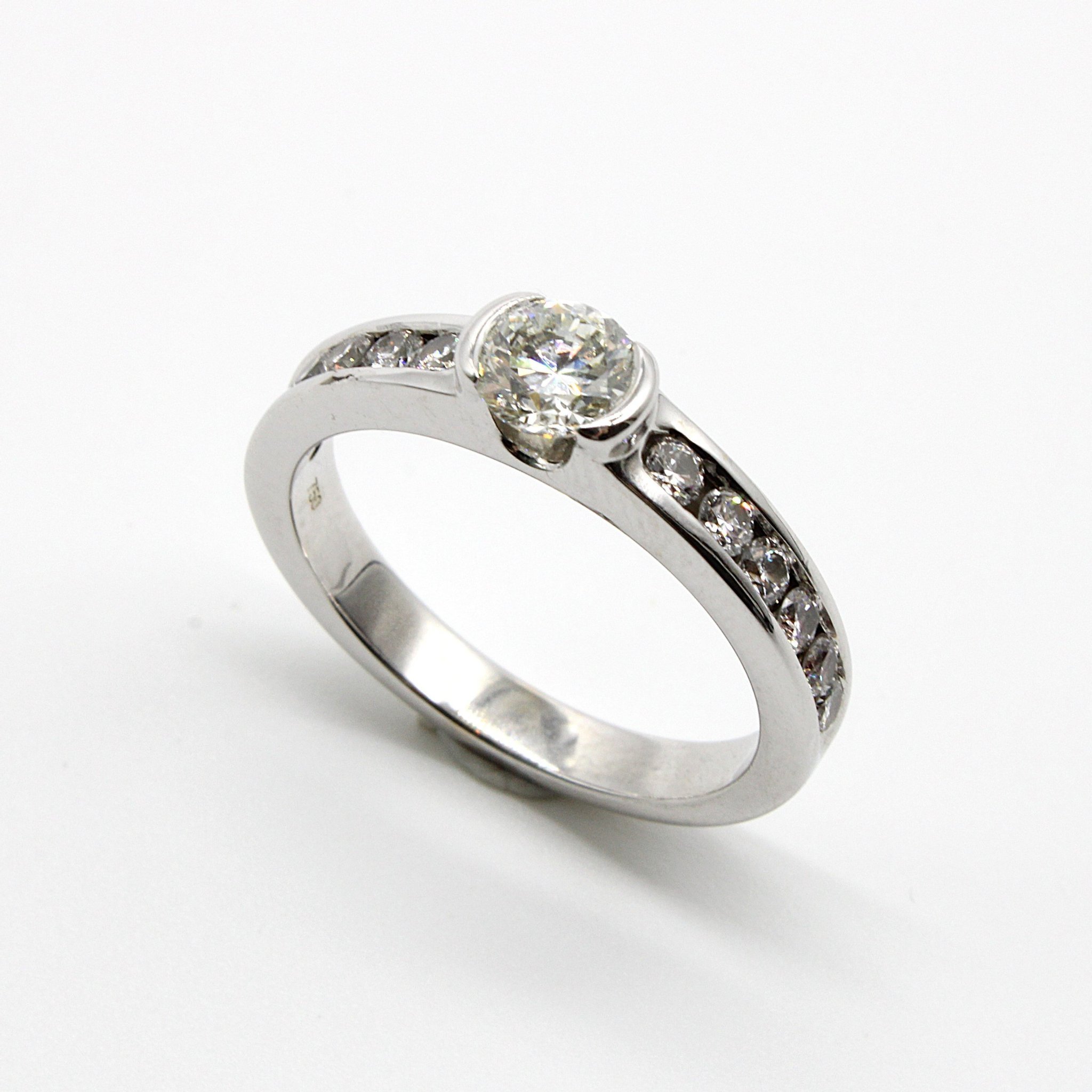 Solitär-/sidostensring i 18K vitguld med äkta diamanter (0,58ctv, stl 15,55mm)