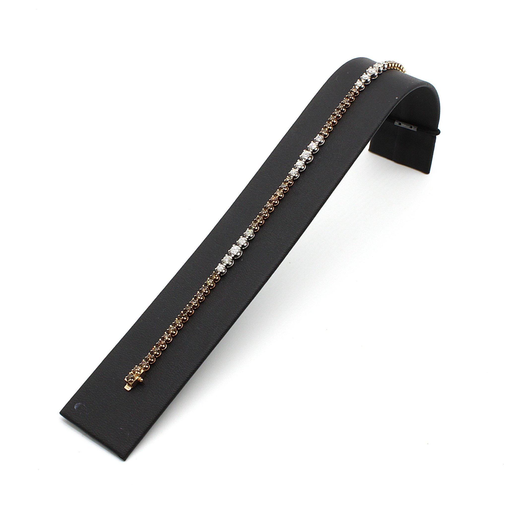 Fint tennisarmband i 18K guld med äkta vita och fancy-bruna diamanter (1,63ctv)