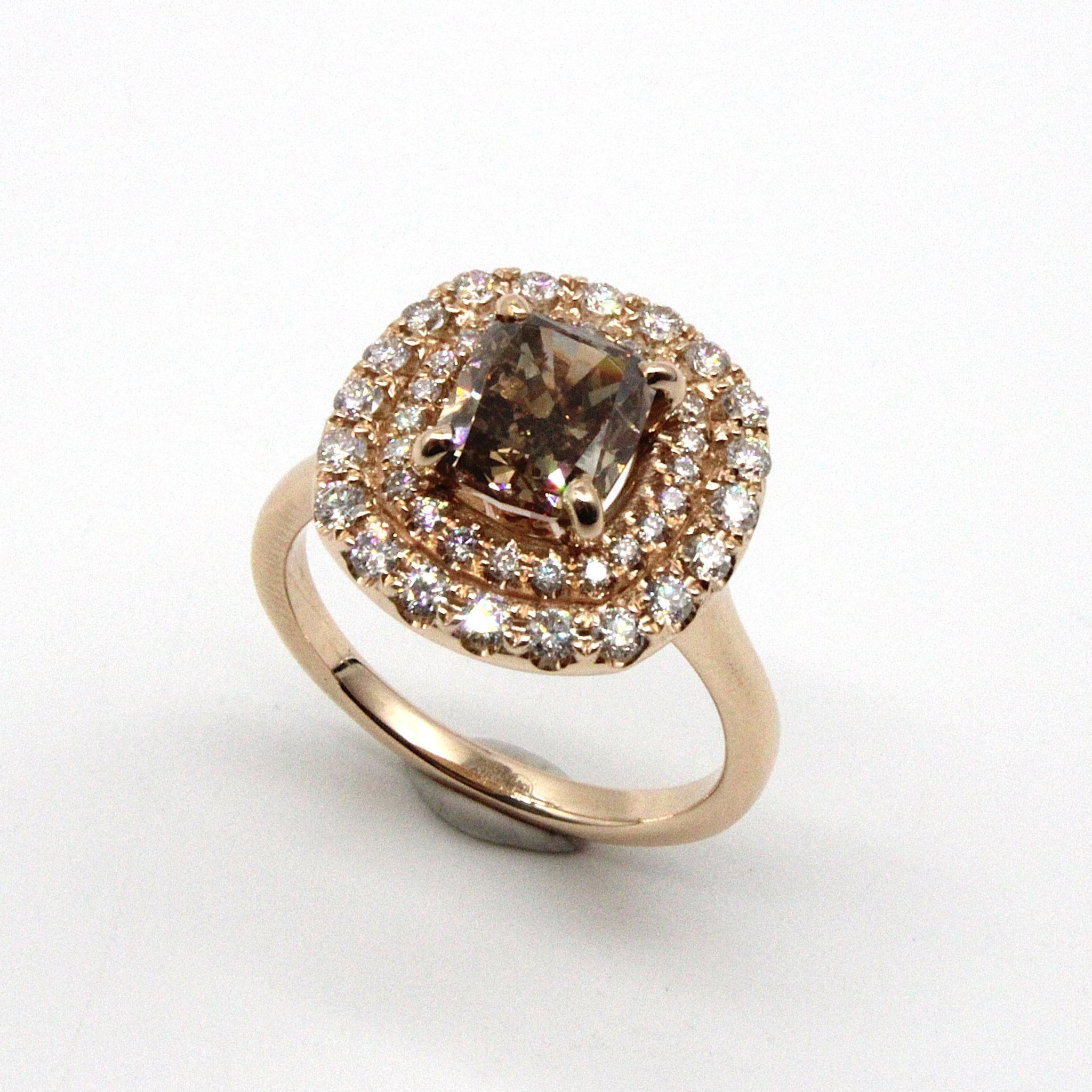 Carmoséring i 18K vitguld med vita diamanter och en fancy-brun diamant (1,02ctv)