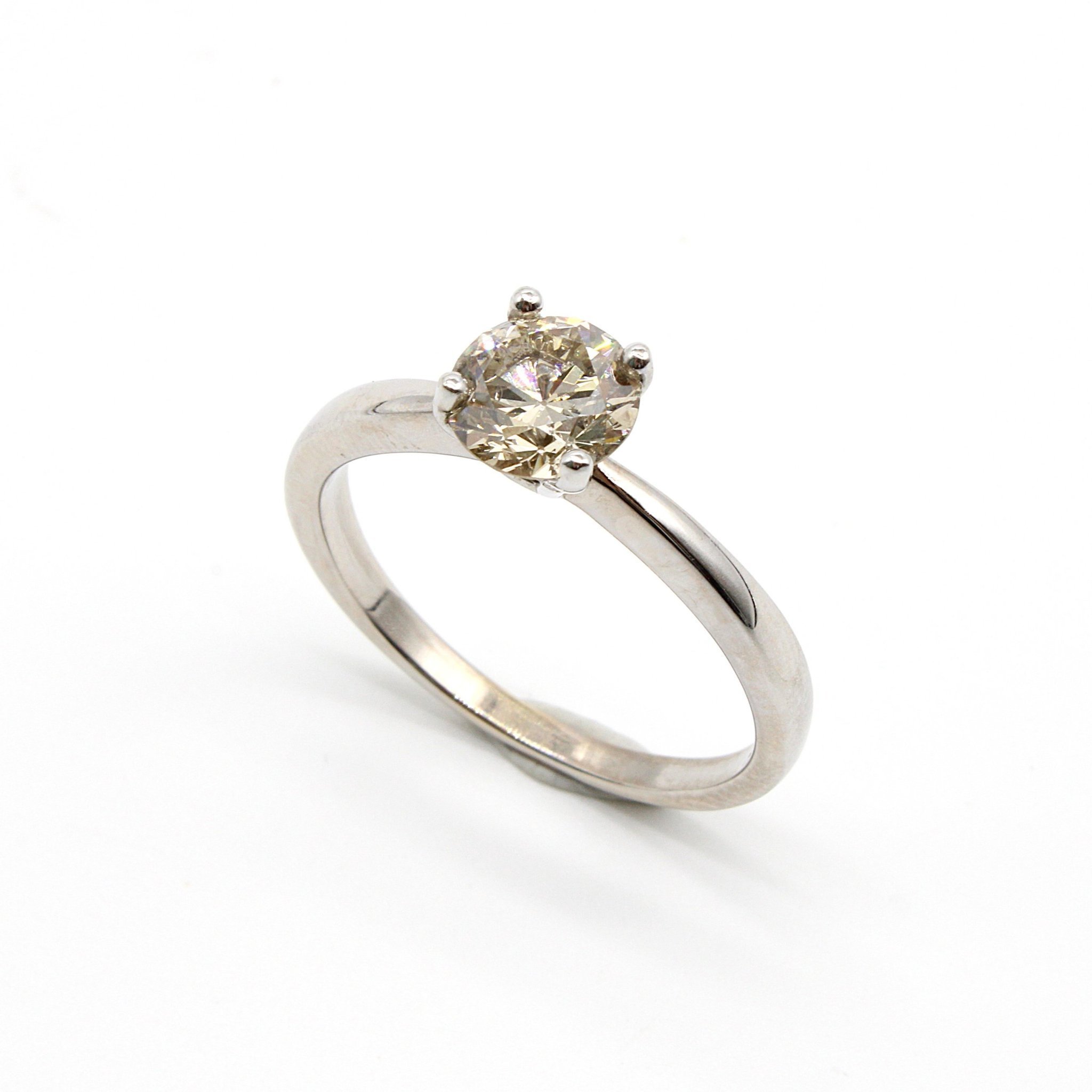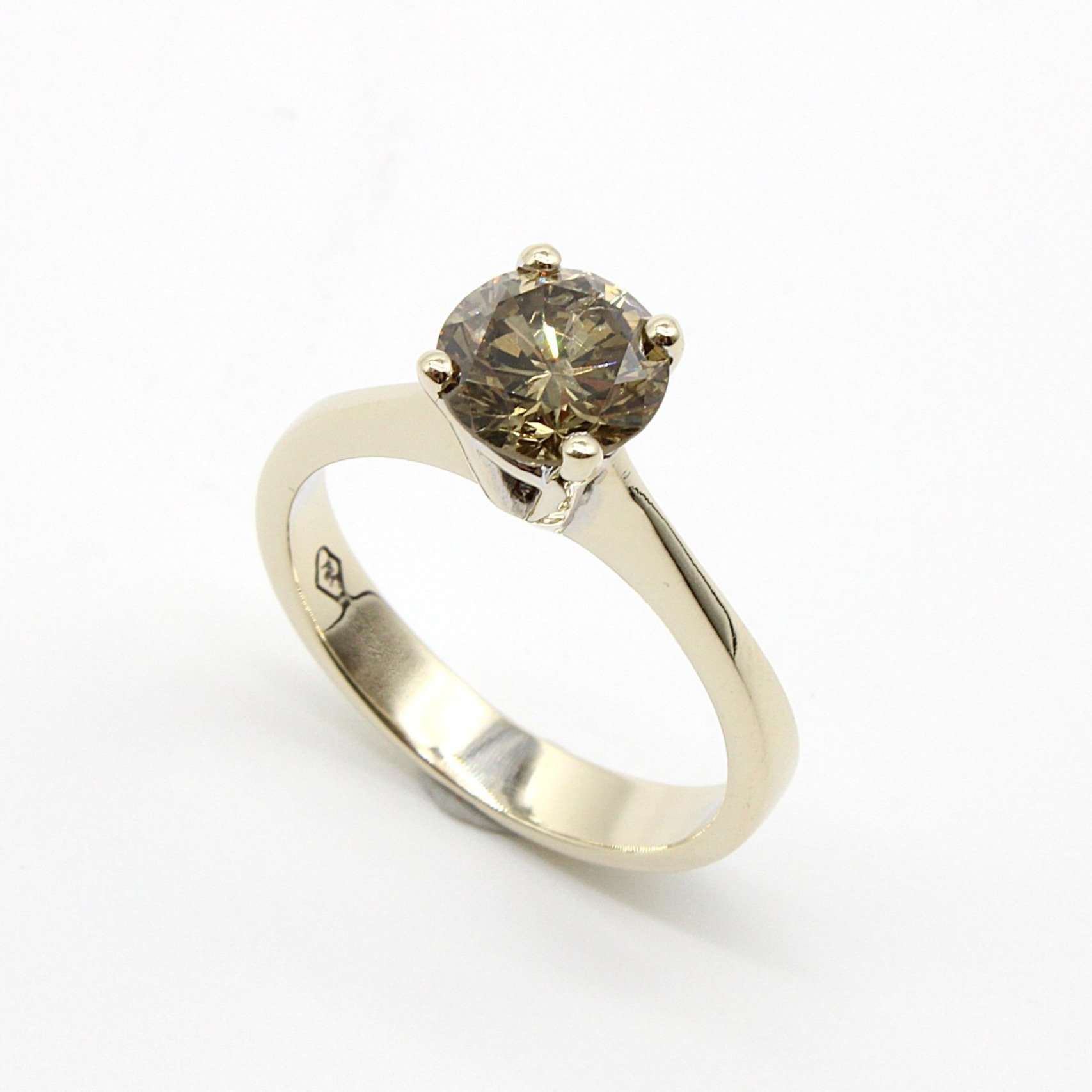 Elegant solitärring i 18K guld med fancy-brun diamant (1,25ctv, stl 16,55mm)