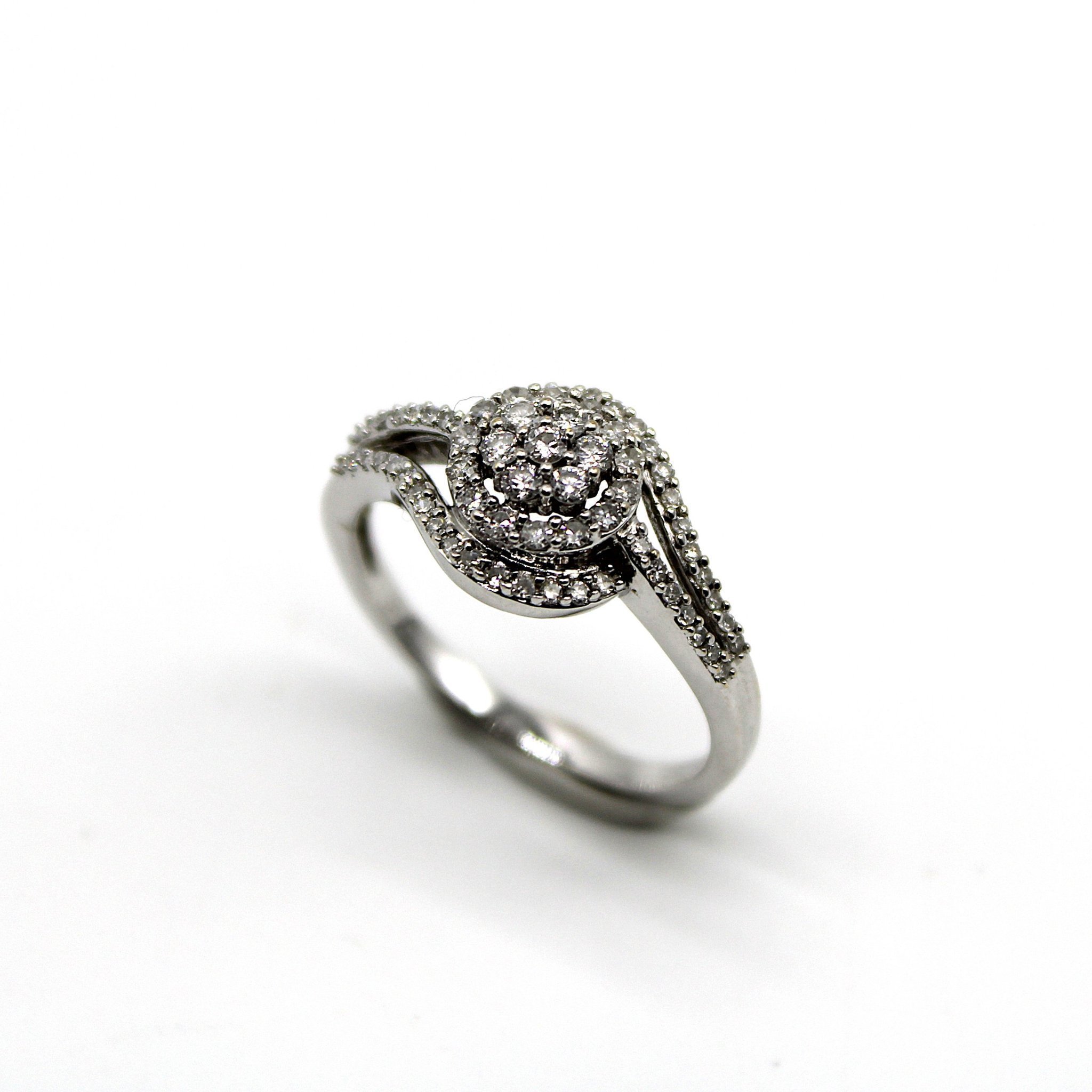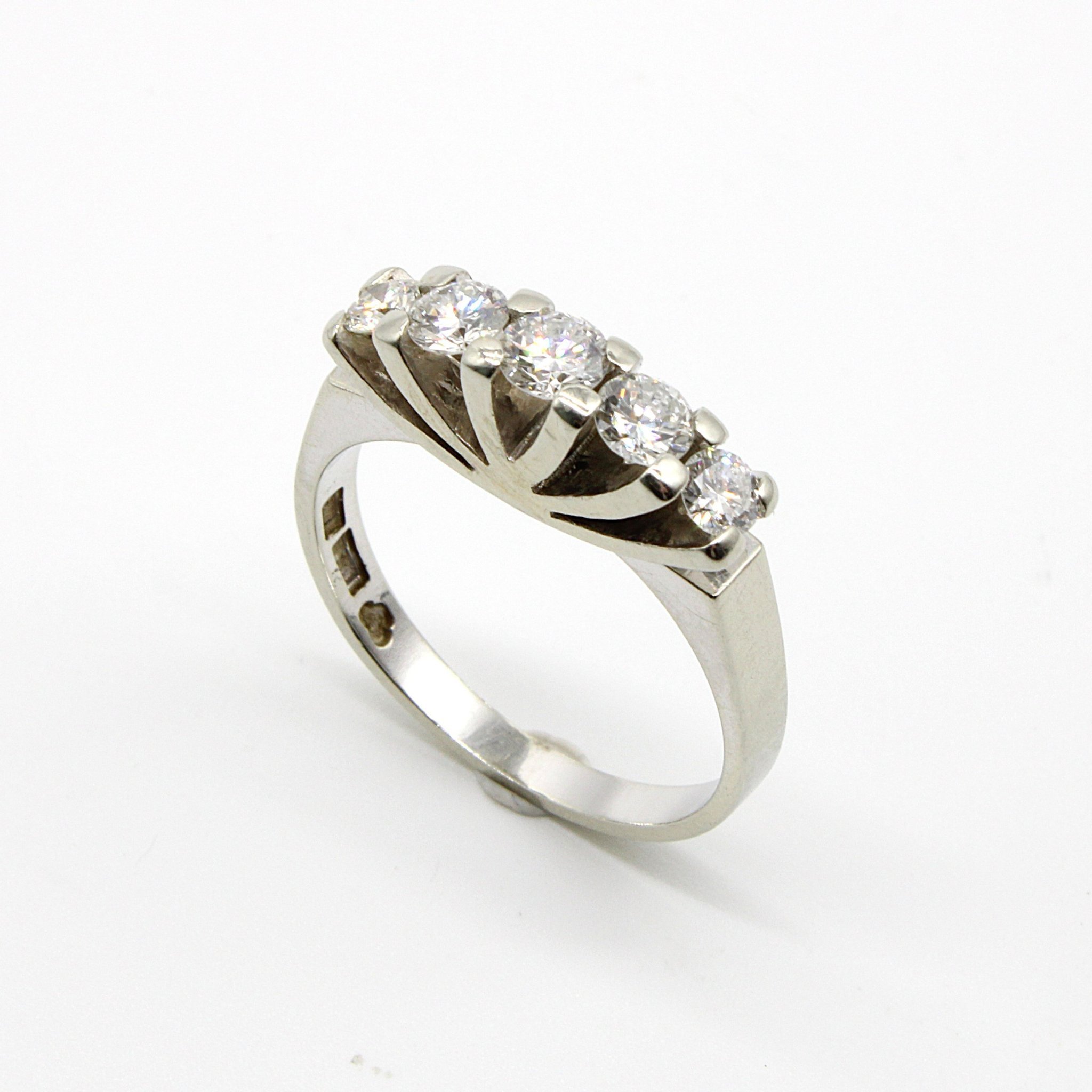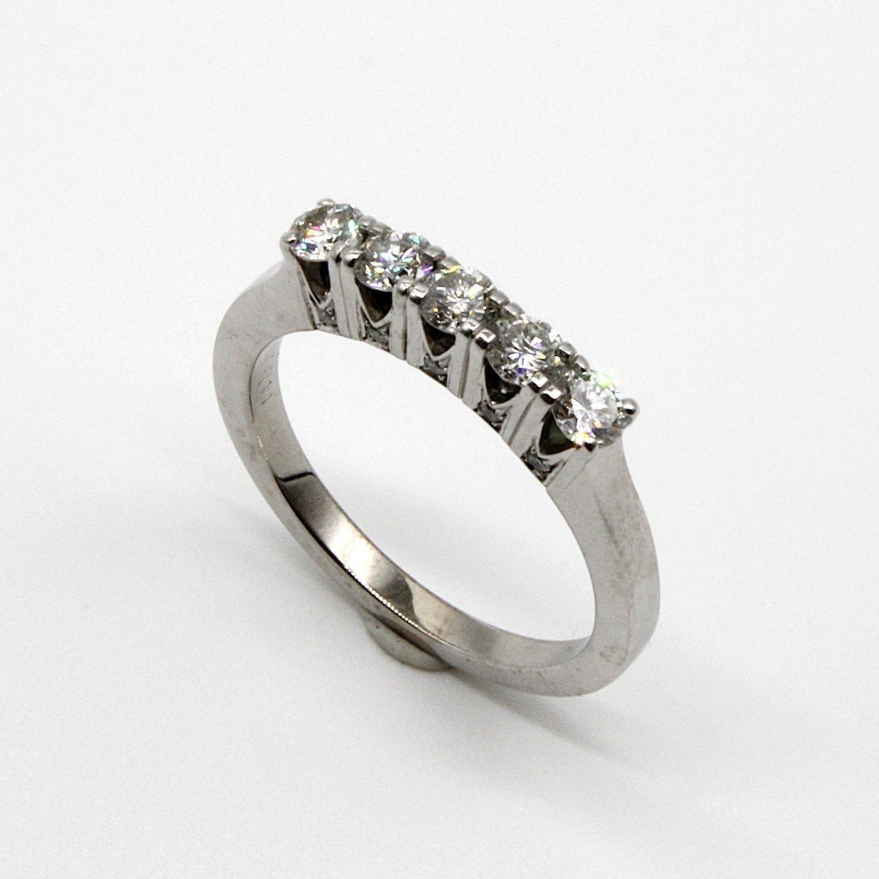 Fin 5-stens äkta diamantring i 18K vitguld med sidostenar (0,60ctv, stl 16,3mm)
