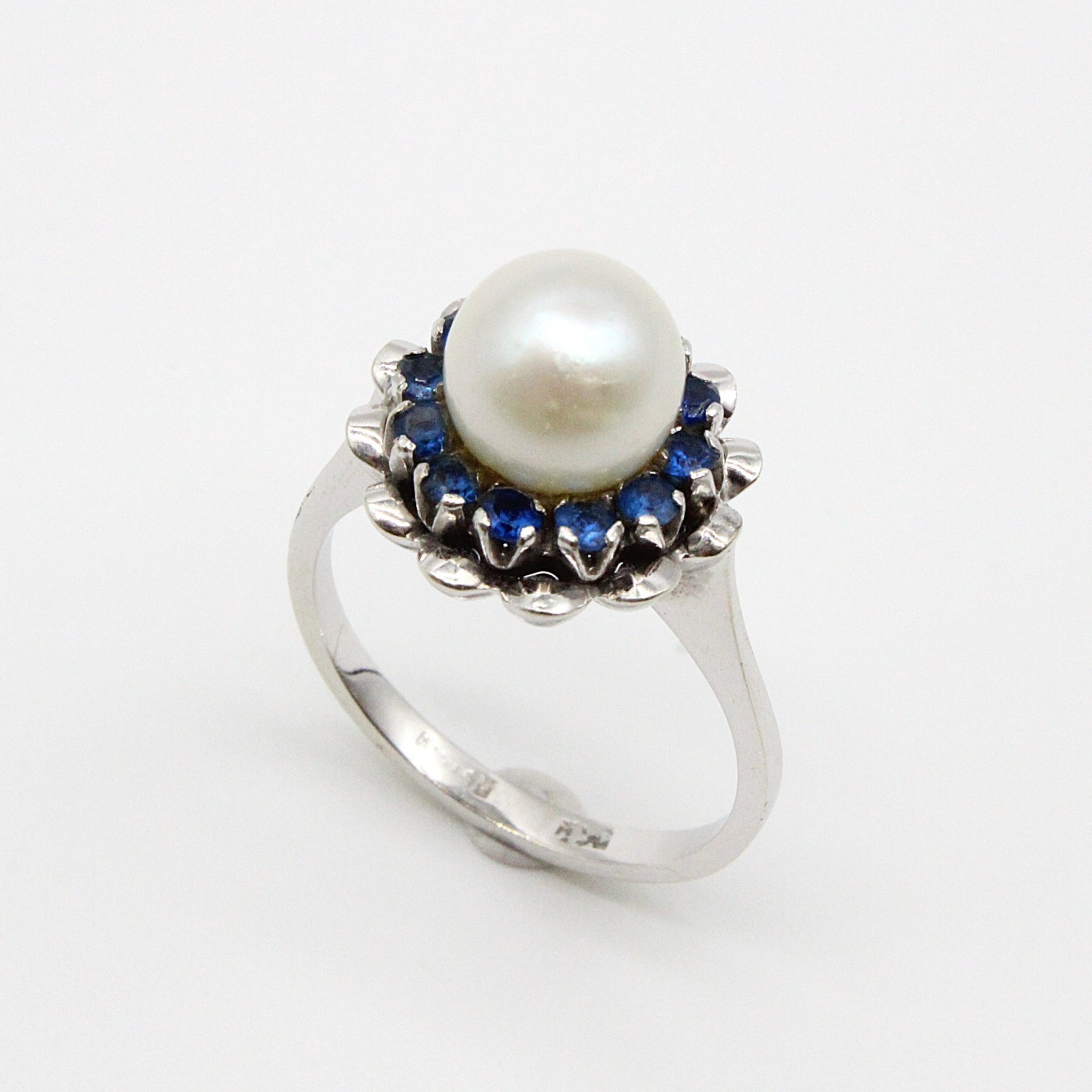 Vacker haloring i 18K vitguld med äkta safir och diamanter (0,9ctv, stl 16,65mm)