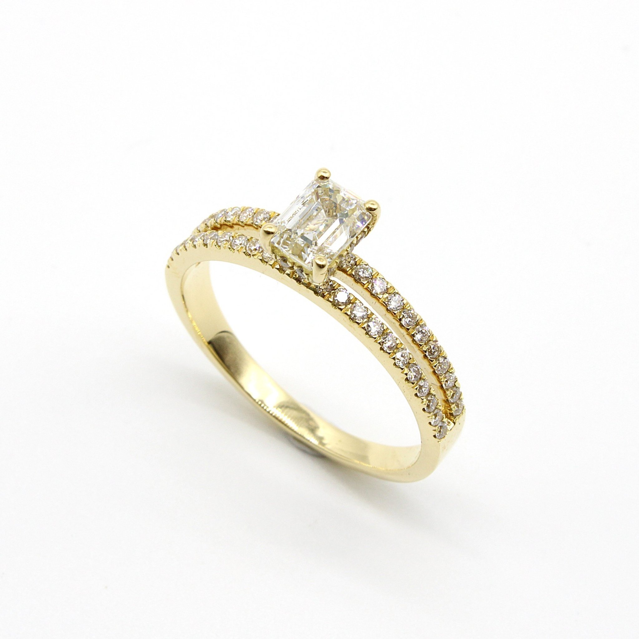 Solitär-/sidostensring i 18K guld med äkta diamanter (1,25ct) och GIA certifikat